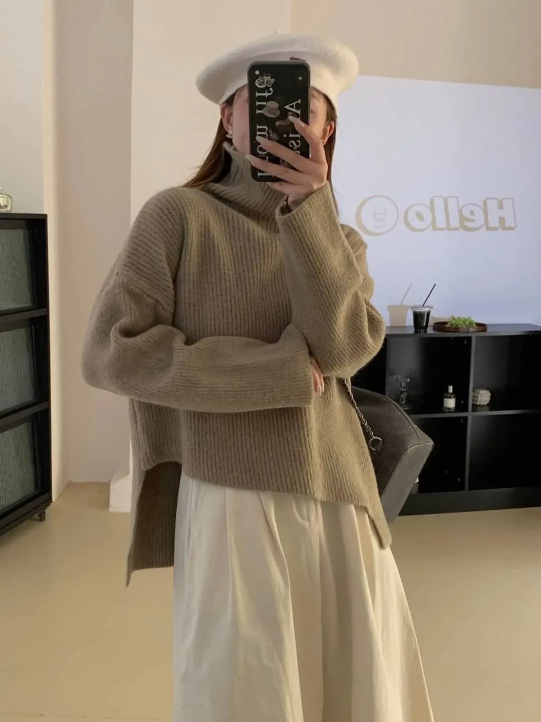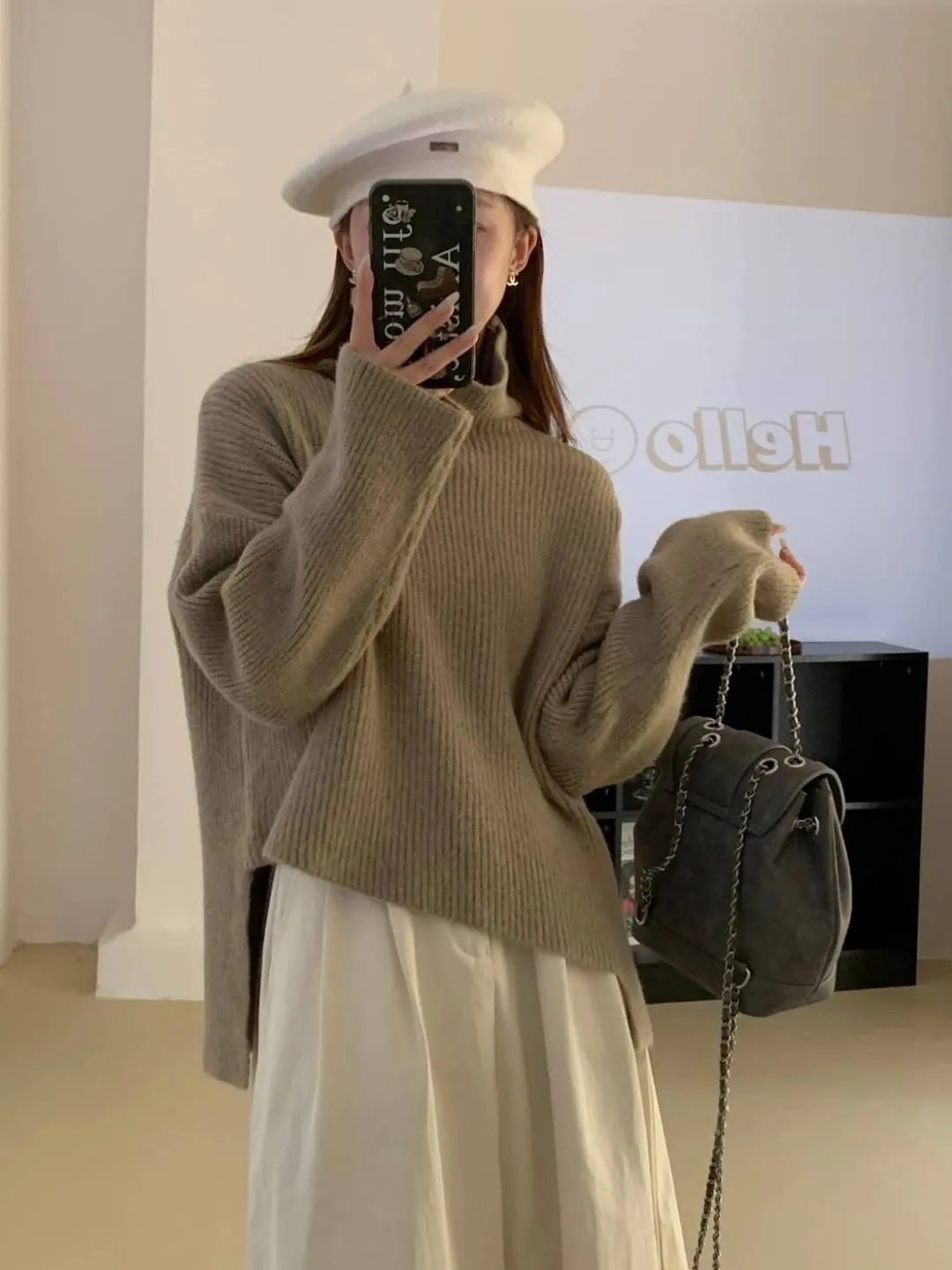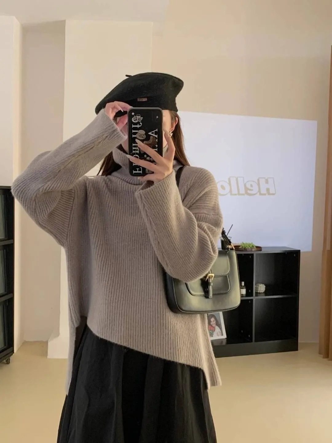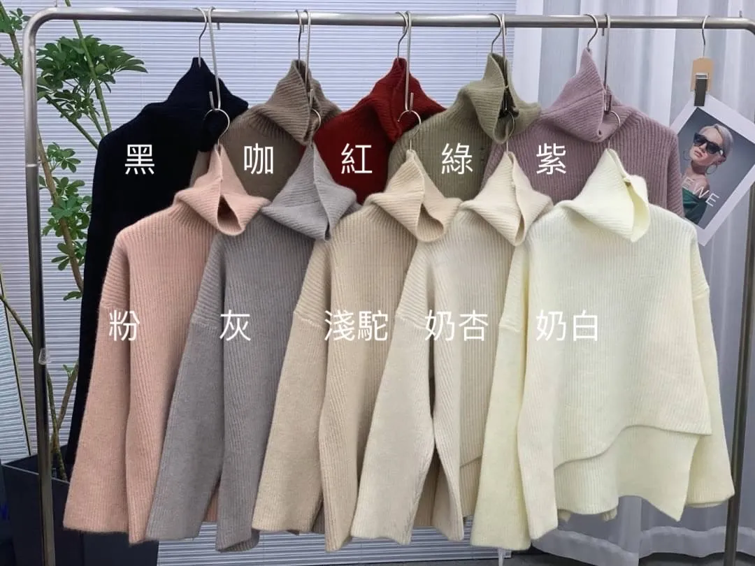 現貨 完美百搭!時髦前短後長版型!穿起來好好看 高領針織上衣