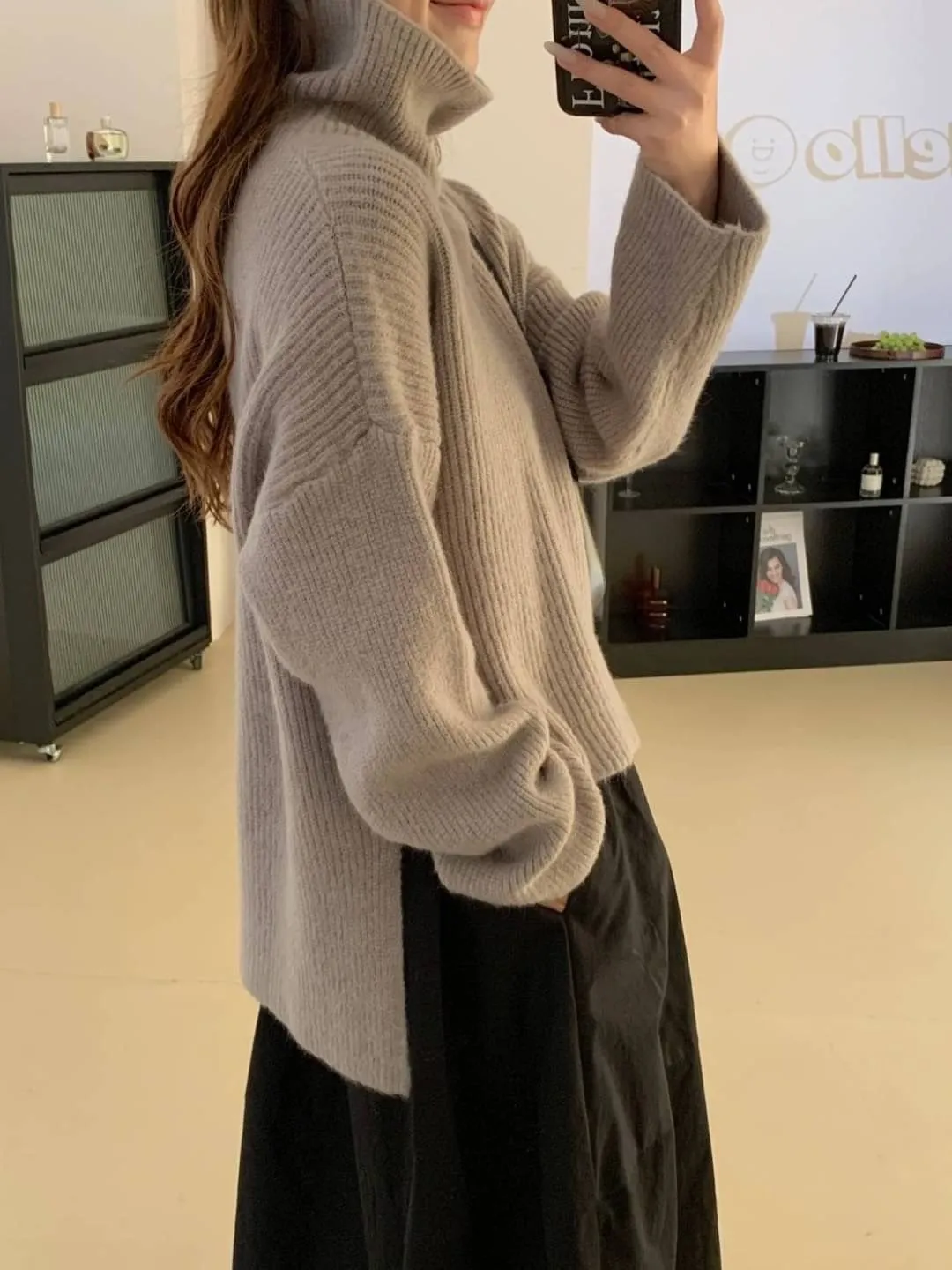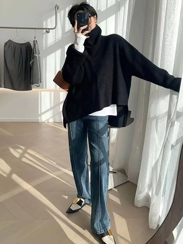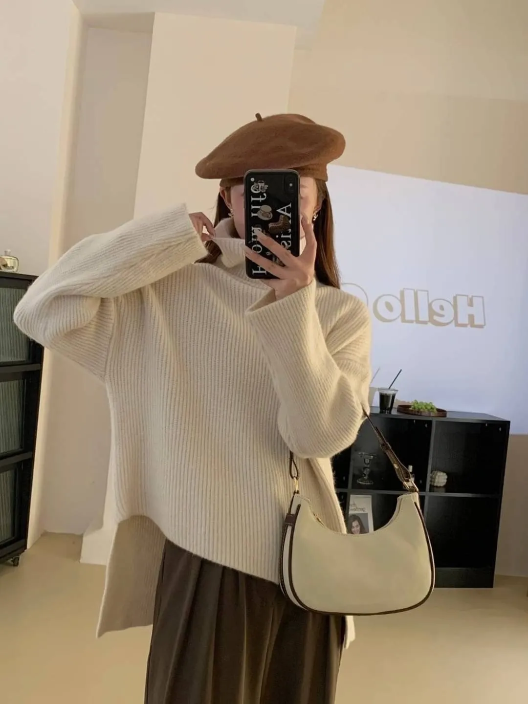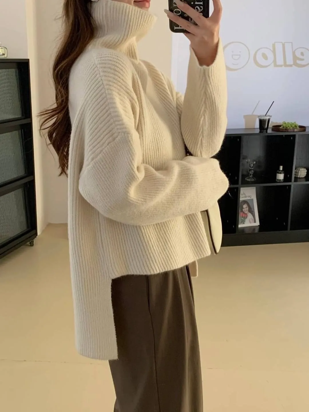 現貨 完美百搭!時髦前短後長版型!穿起來好好看 高領針織上衣
