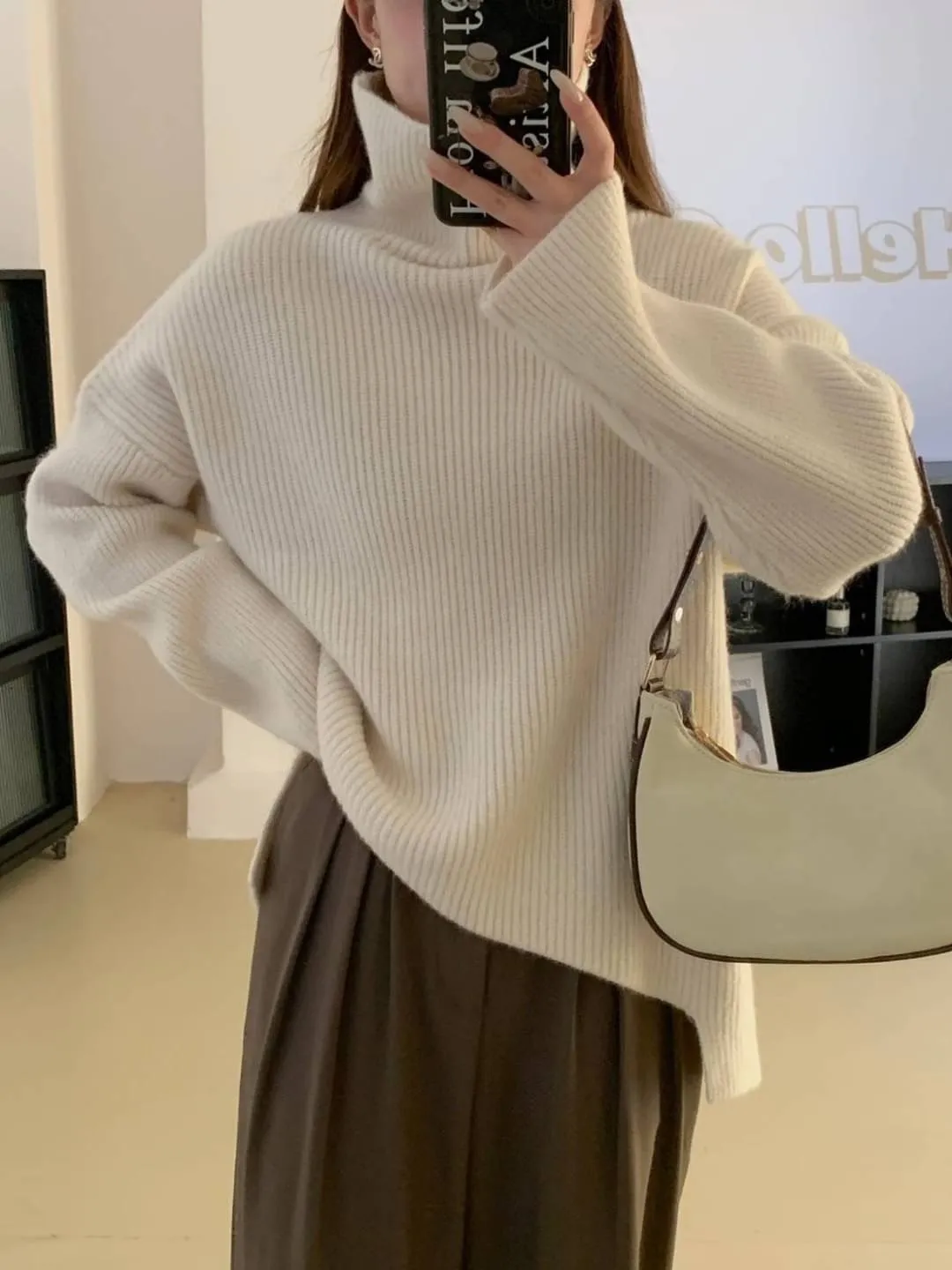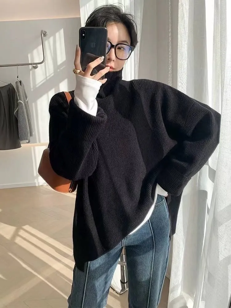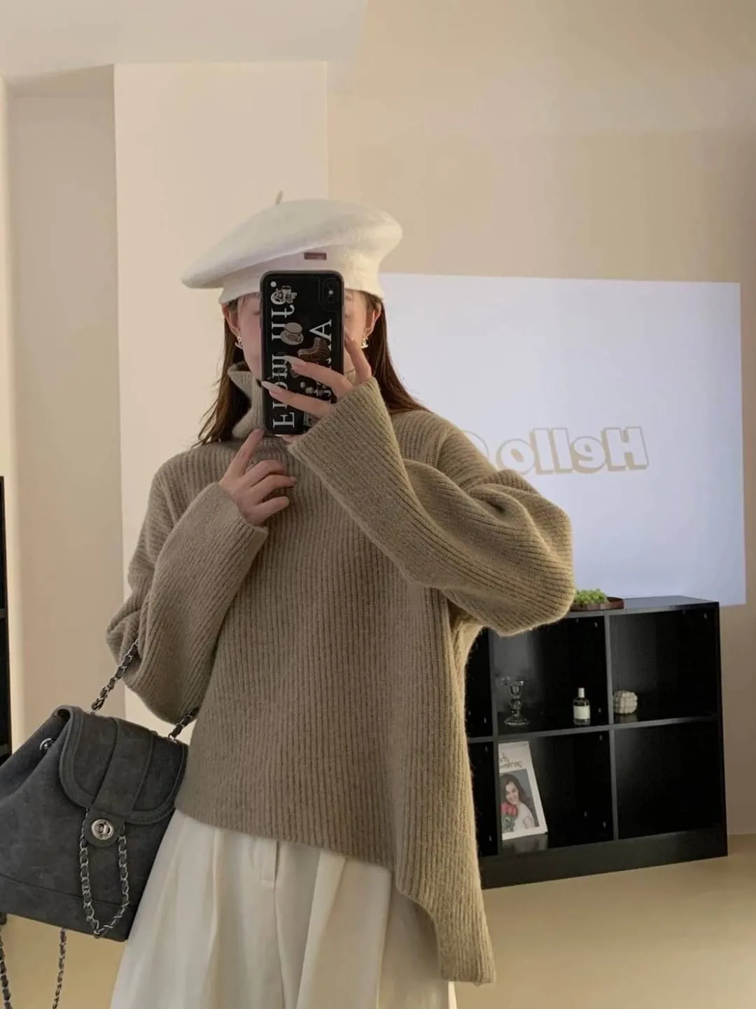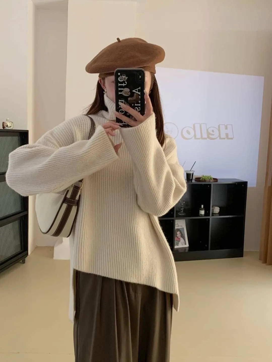 現貨 完美百搭!時髦前短後長版型!穿起來好好看 高領針織上衣