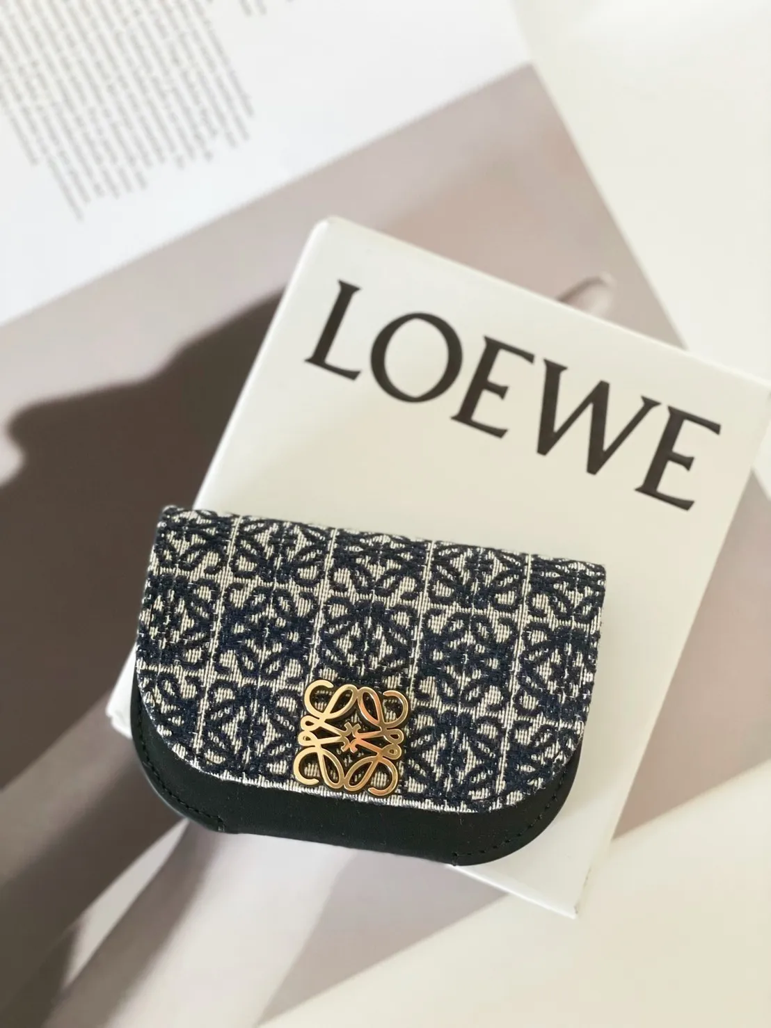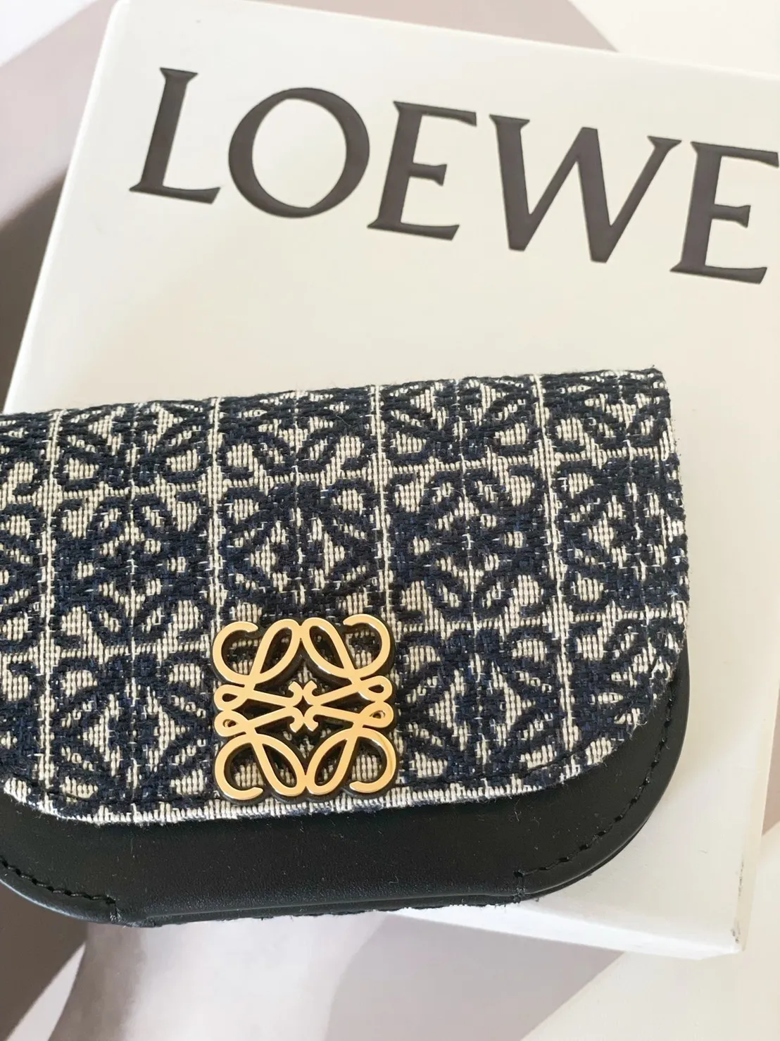(現貨1)LOEWE 新款老花圖騰皮革卡夾包-人氣深藍提花!