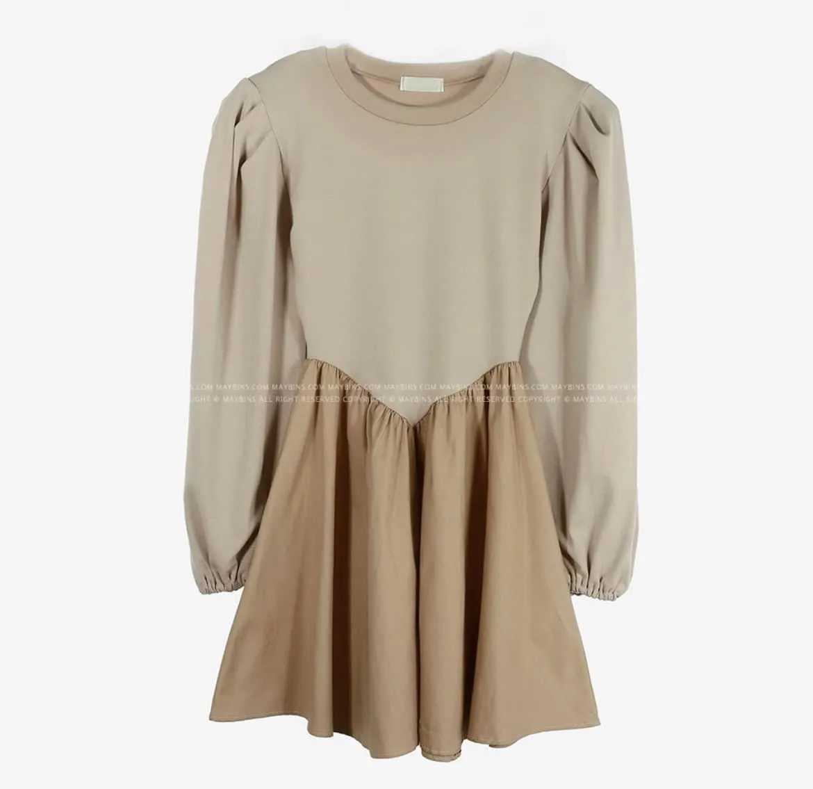 現貨最後一件售完不補★正韓 有夠美!復古異材質拼接洋裝