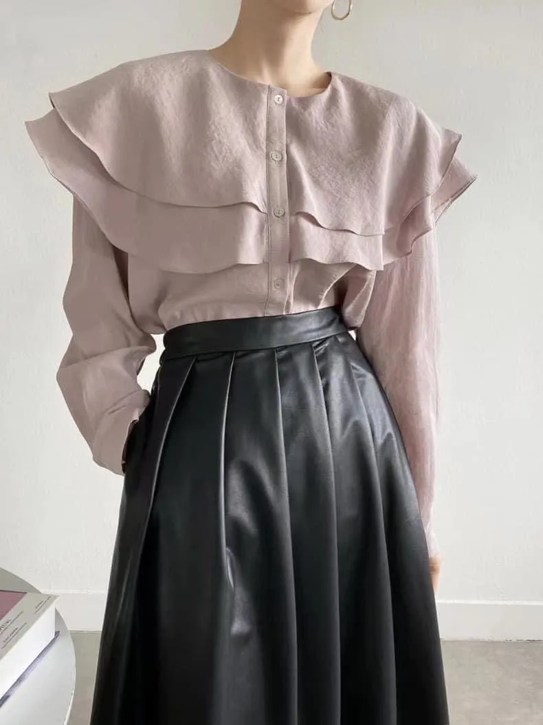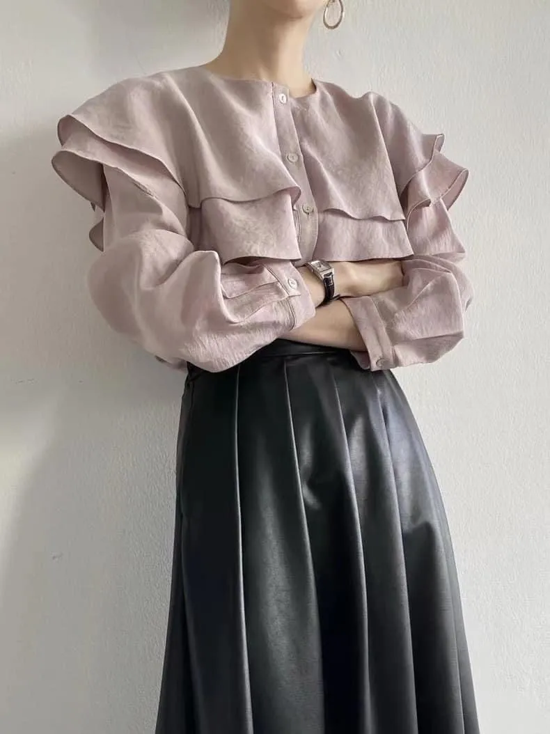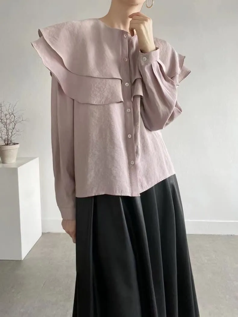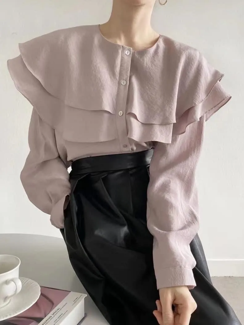 現貨最後一件售完不補★氣質甜美雙層荷葉領上衣
