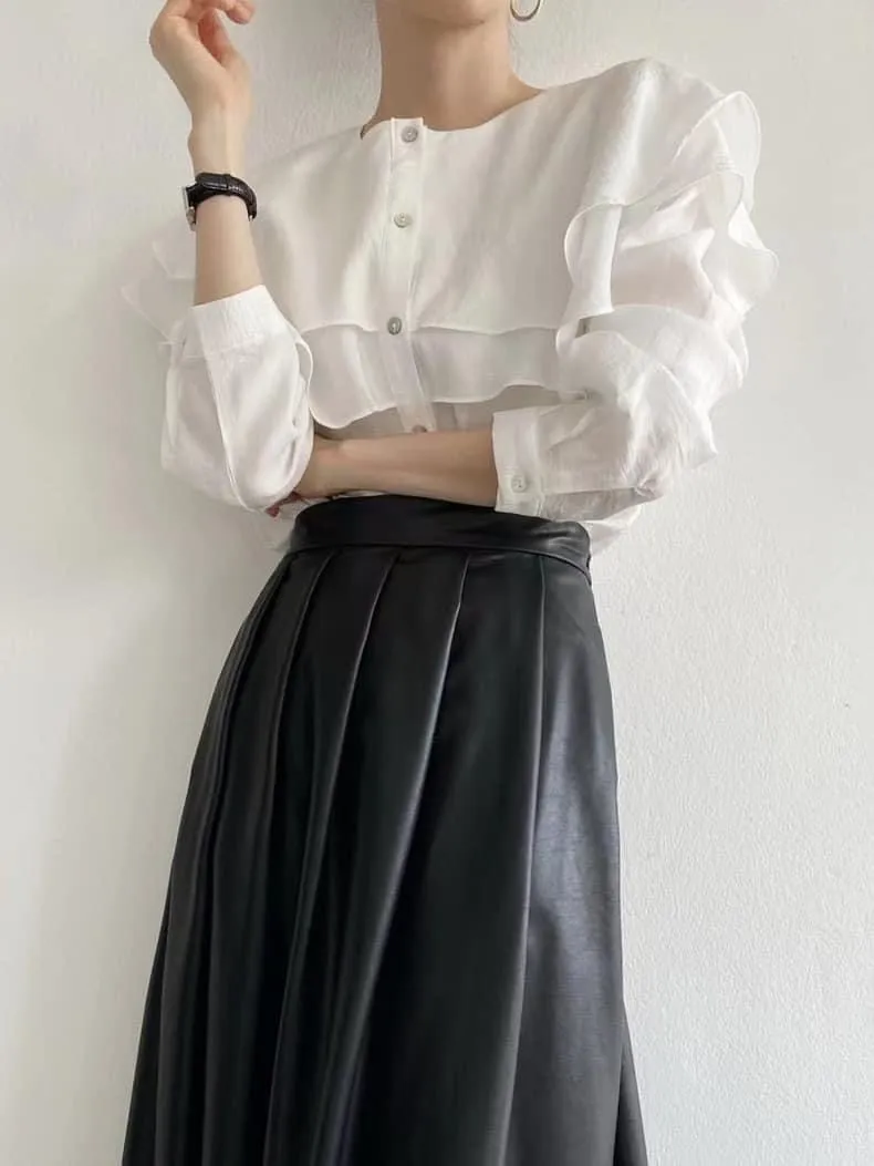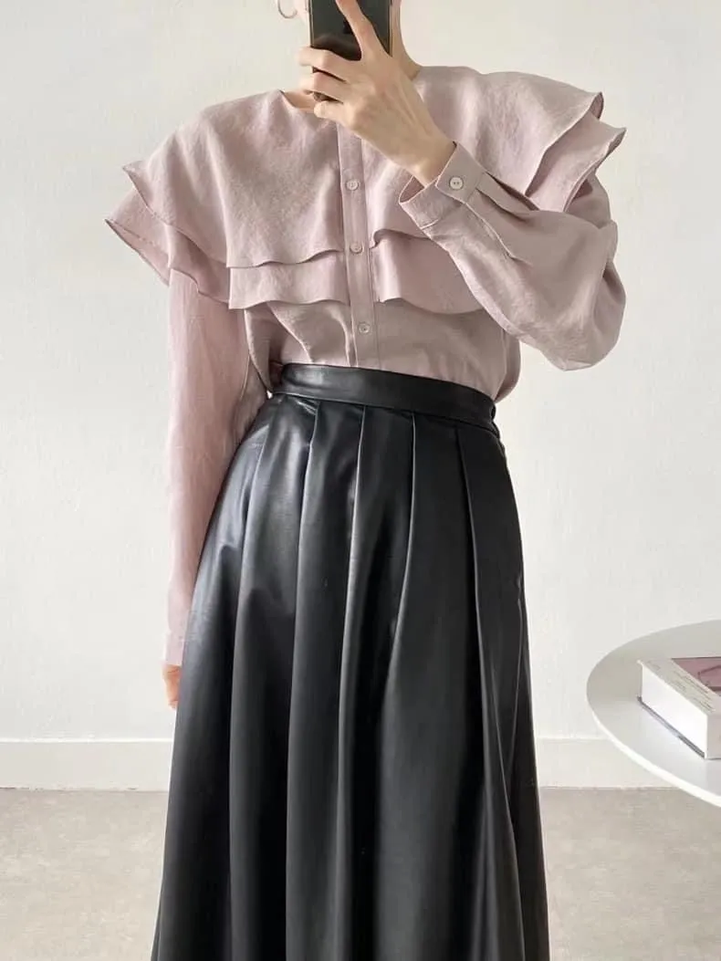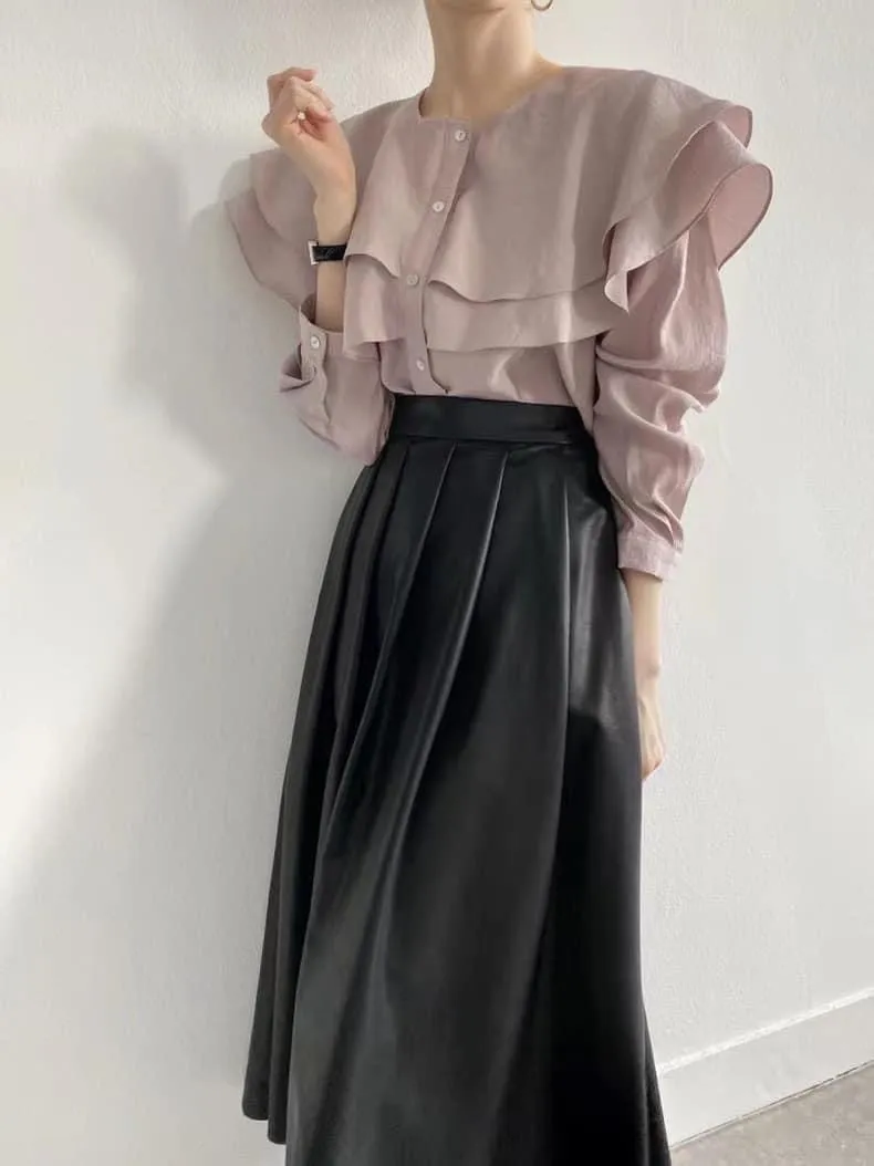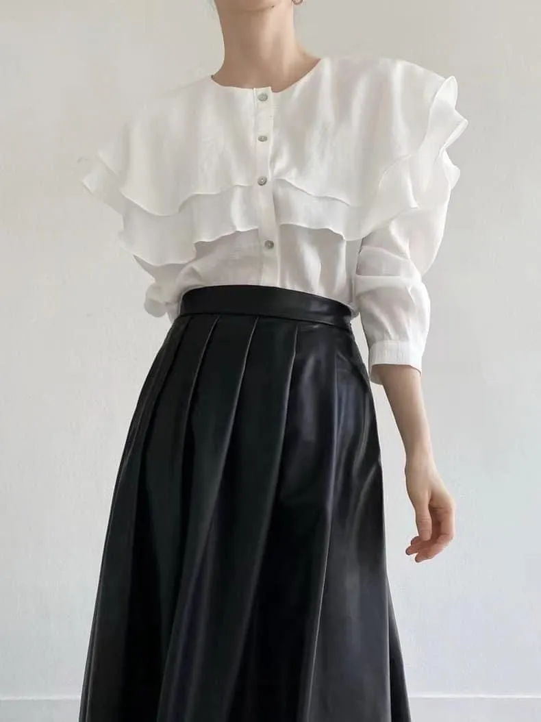 現貨最後一件售完不補★氣質甜美雙層荷葉領上衣