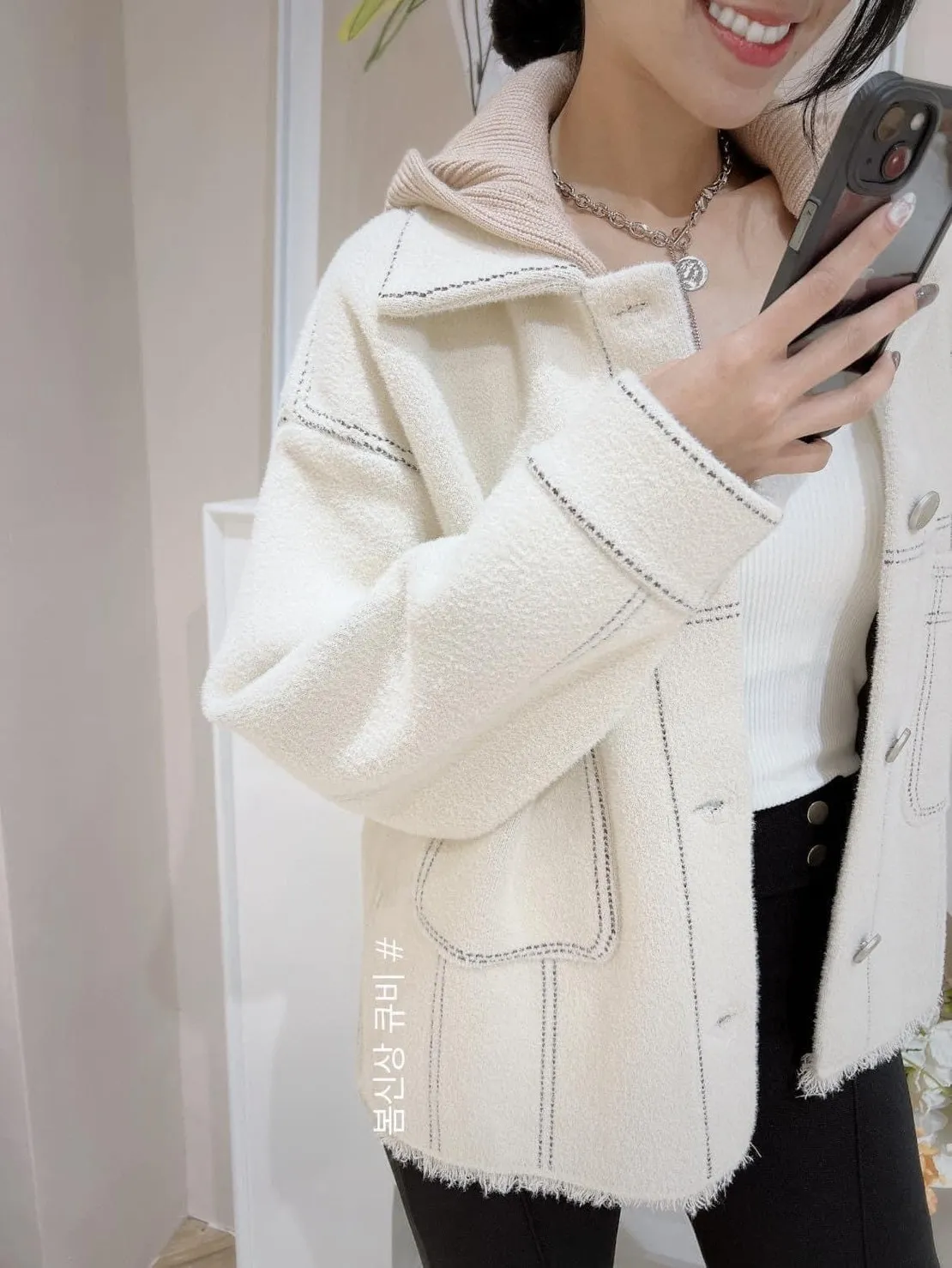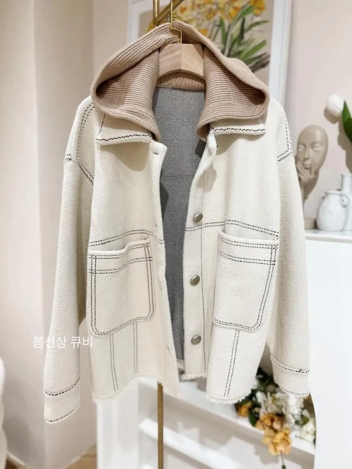 超美造型感X顯瘦版型 羊絨針織連帽外套(帽可拆)