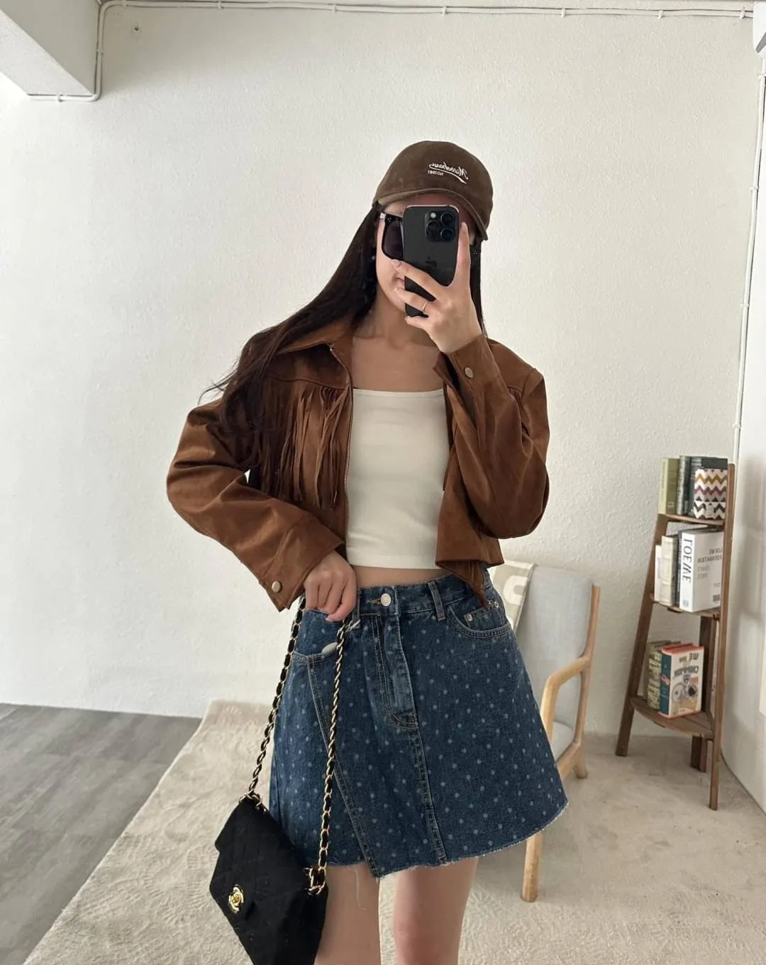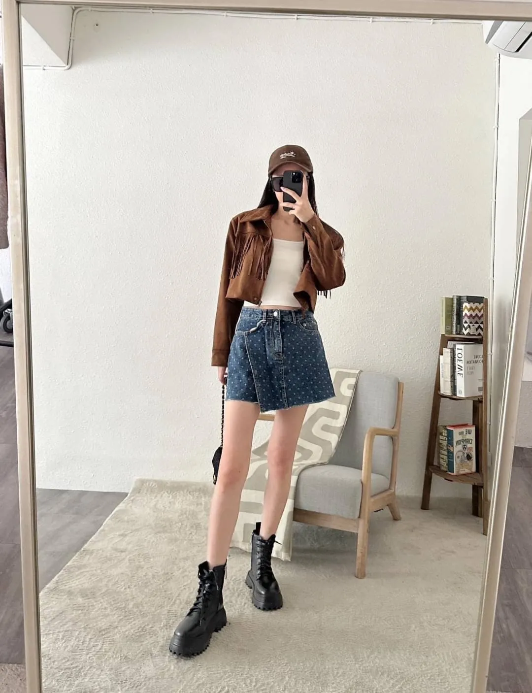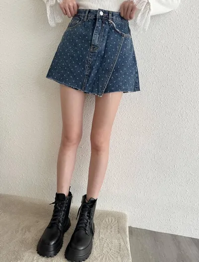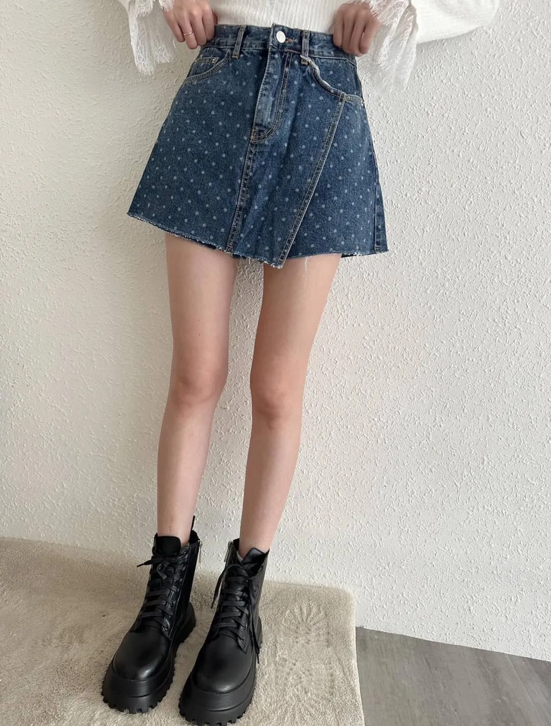 現貨最後一件售完不補❤一眼心動隨便搭都可愛的點點牛仔褲裙