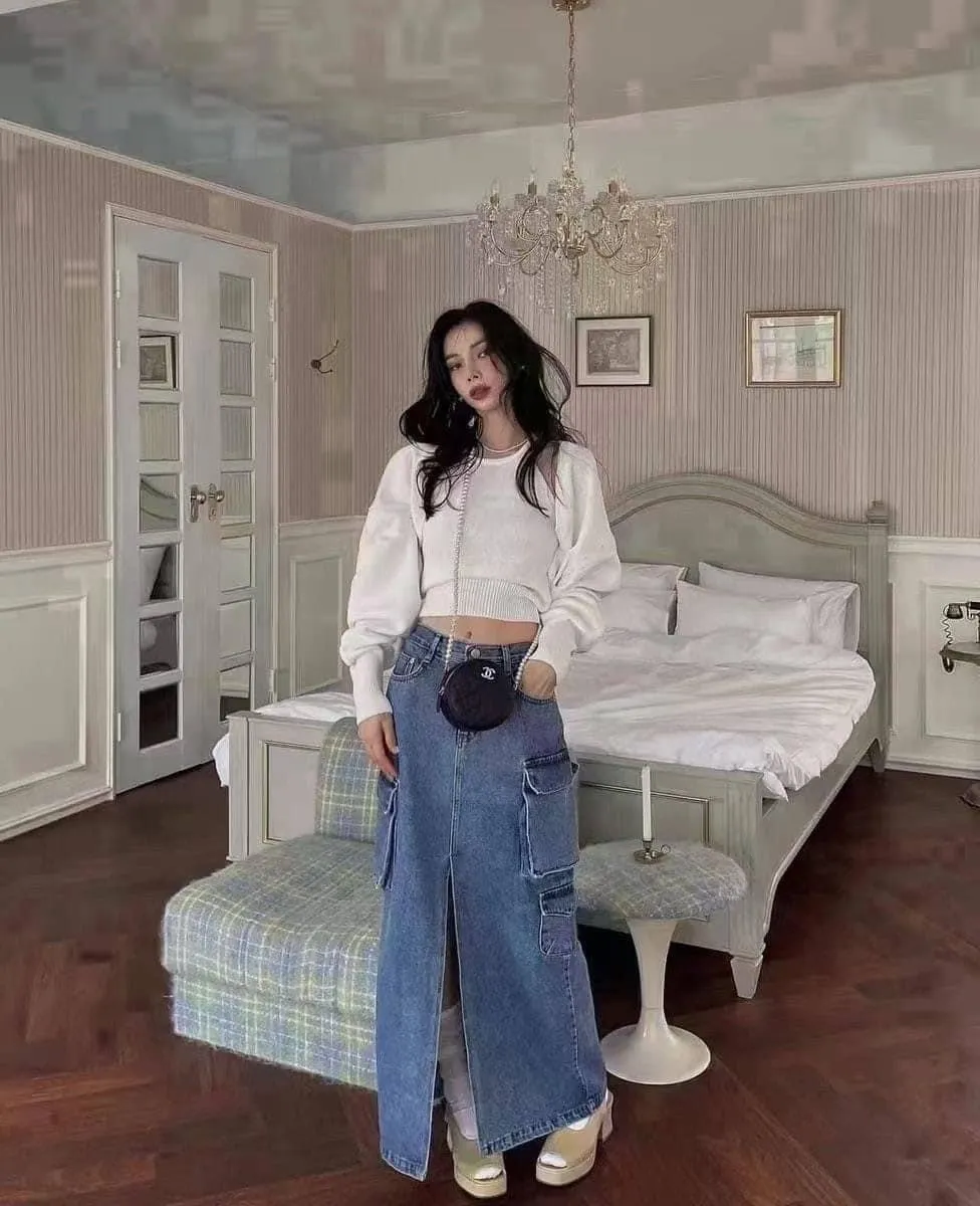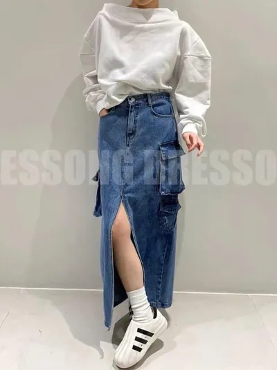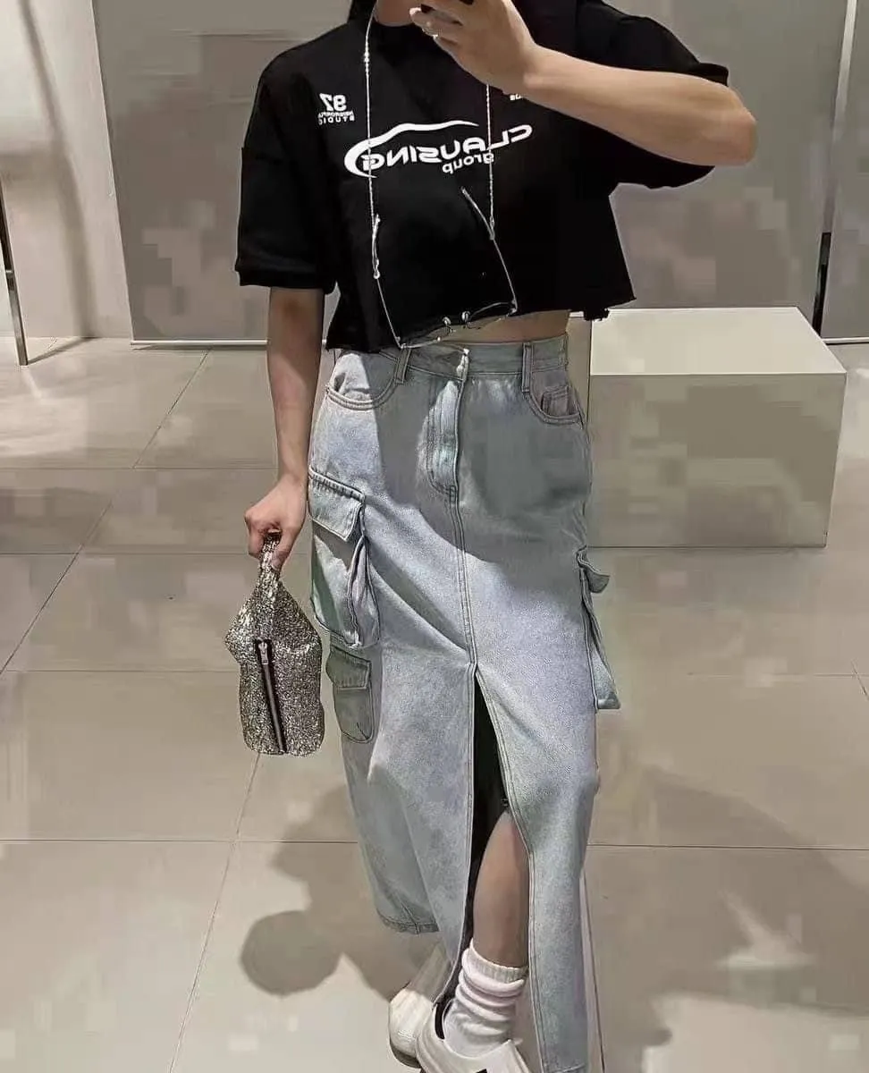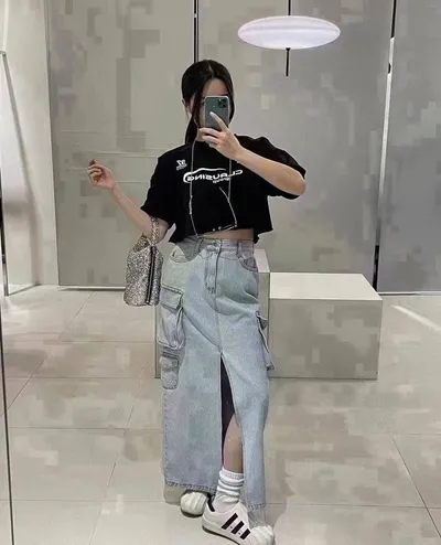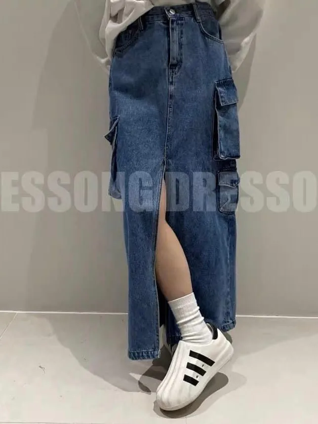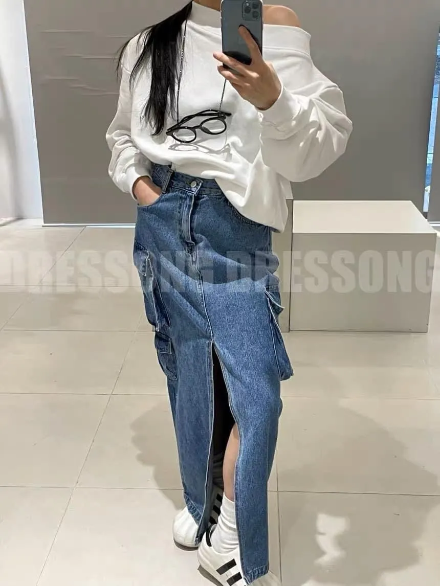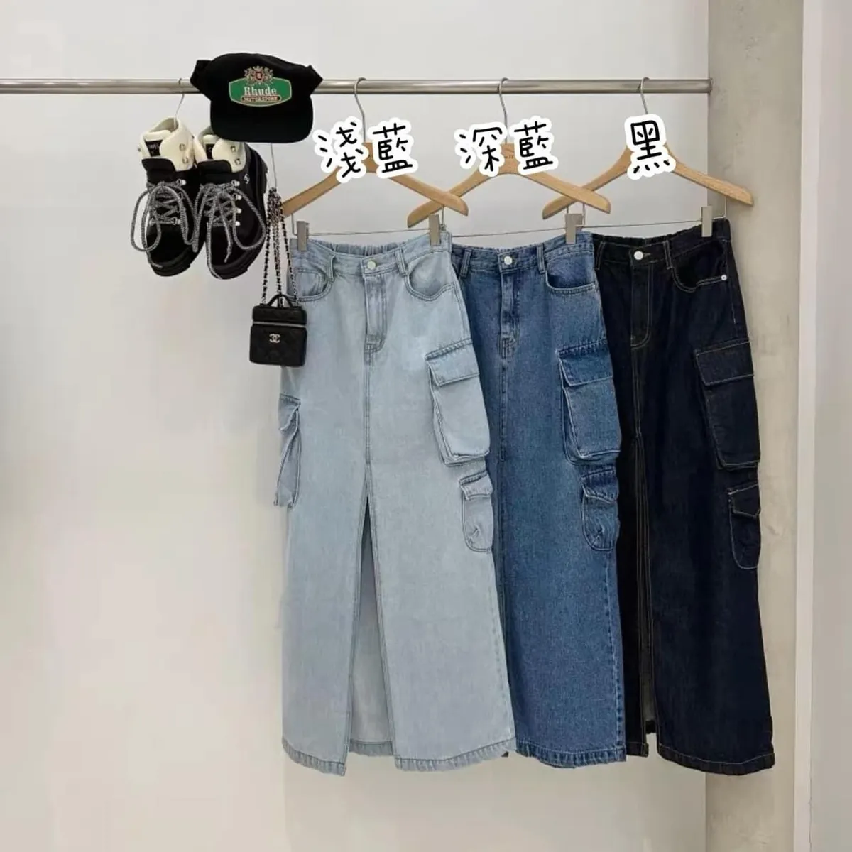 現貨最後一件售完不補★今年超紅的工裝感設計 顯瘦牛仔裙