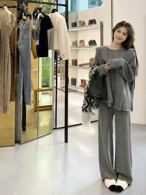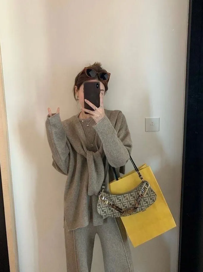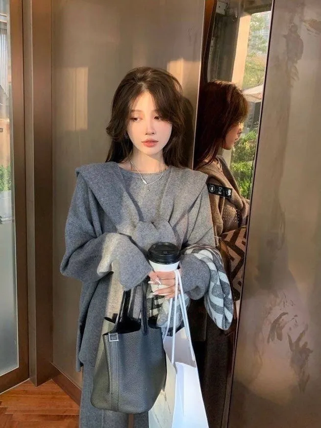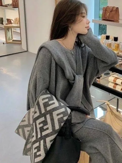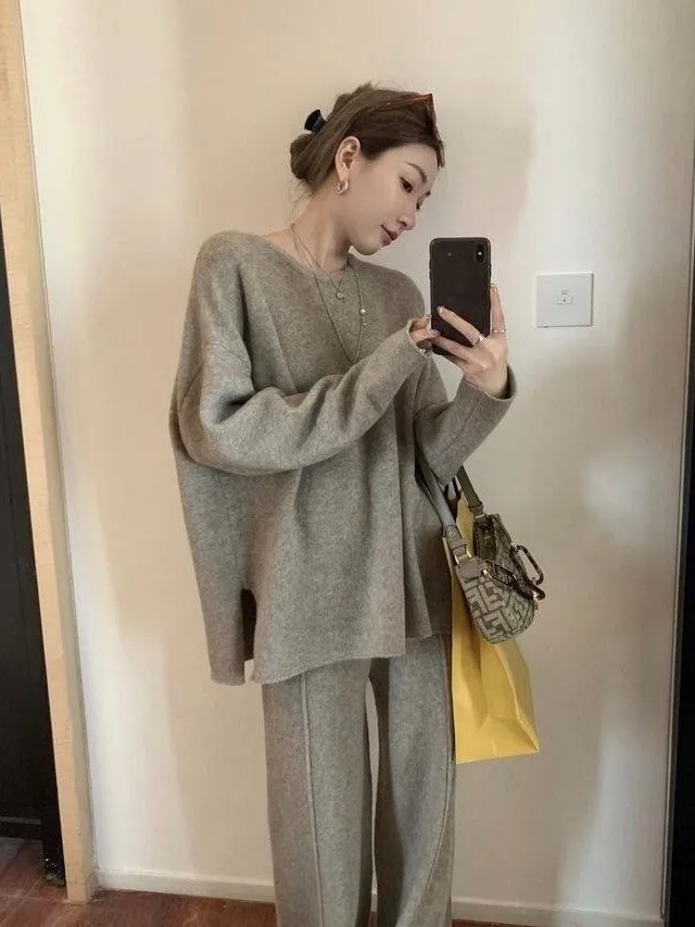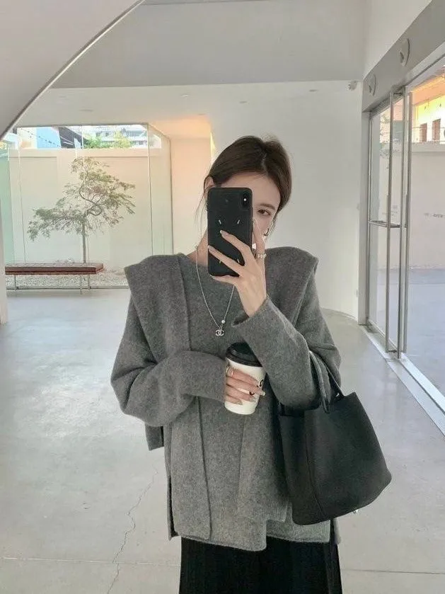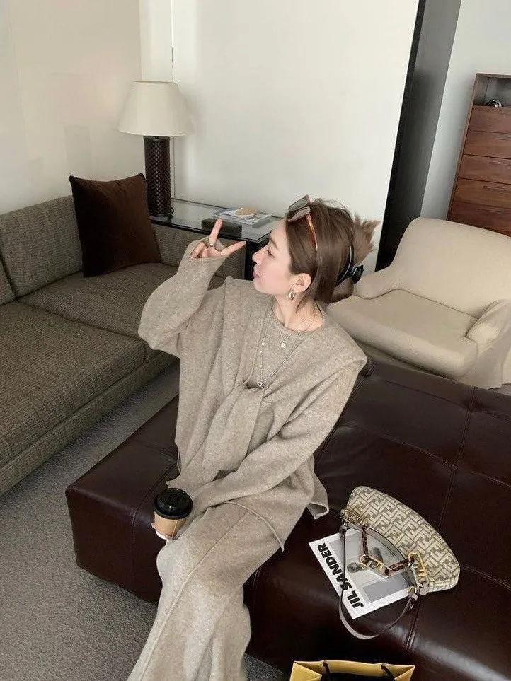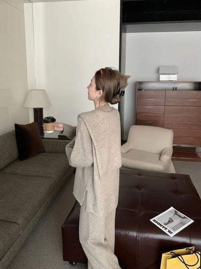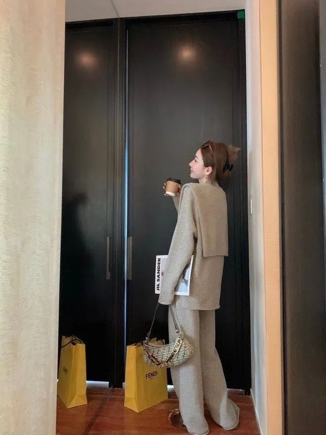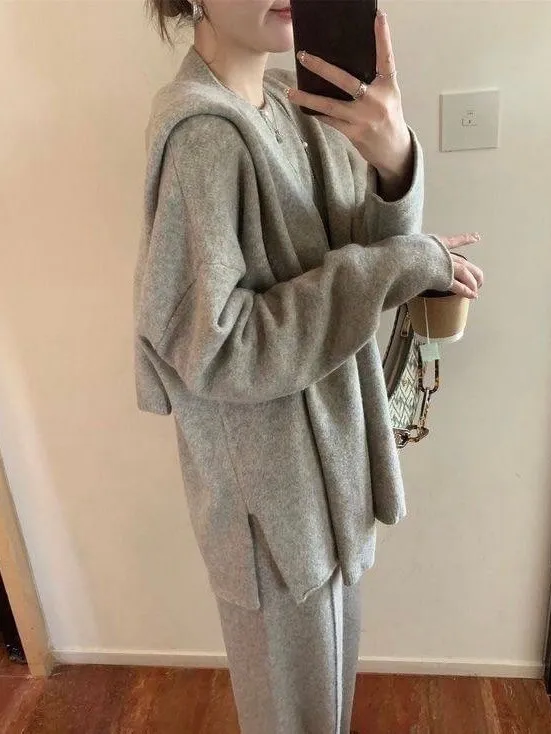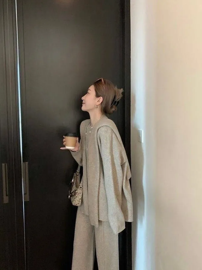 質感慵懶針織三件套韓國歐膩人手一件 免去穿搭的困擾百搭素雅針織衣+造型披肩+鬆緊寬褲直接搭配好是不是超方便!!質感是真的無敵好呀!!!!相信我買她妳不會後悔啦color 灰 燕麥 黑尺寸:胸:62cm-115cm前長:64cm後長:70cm腰:33cm-60cm臀:44cm-95cm長:101cm