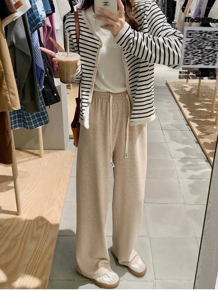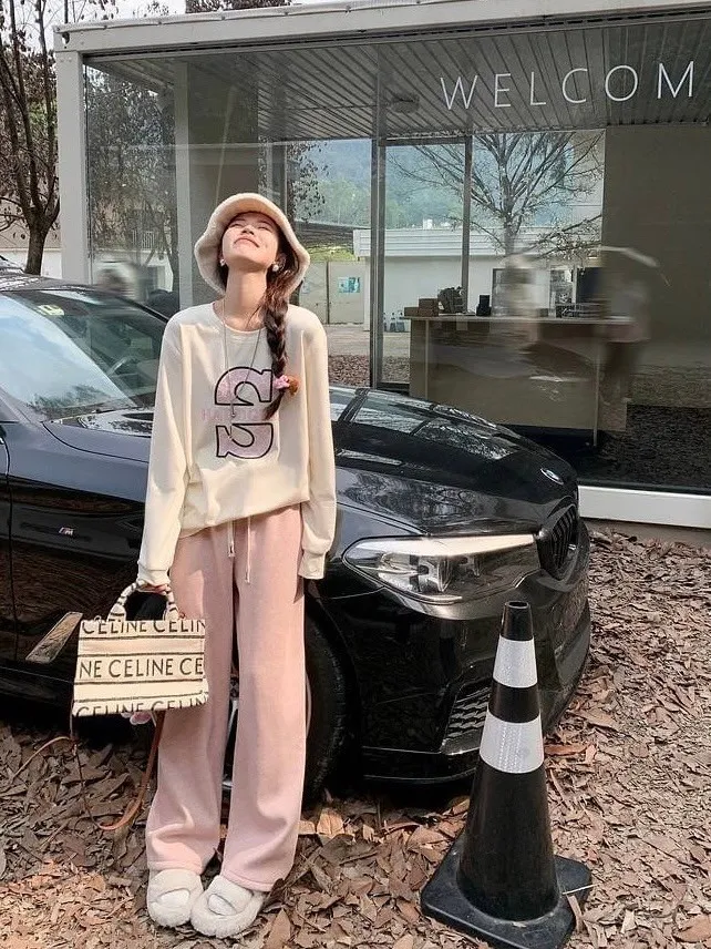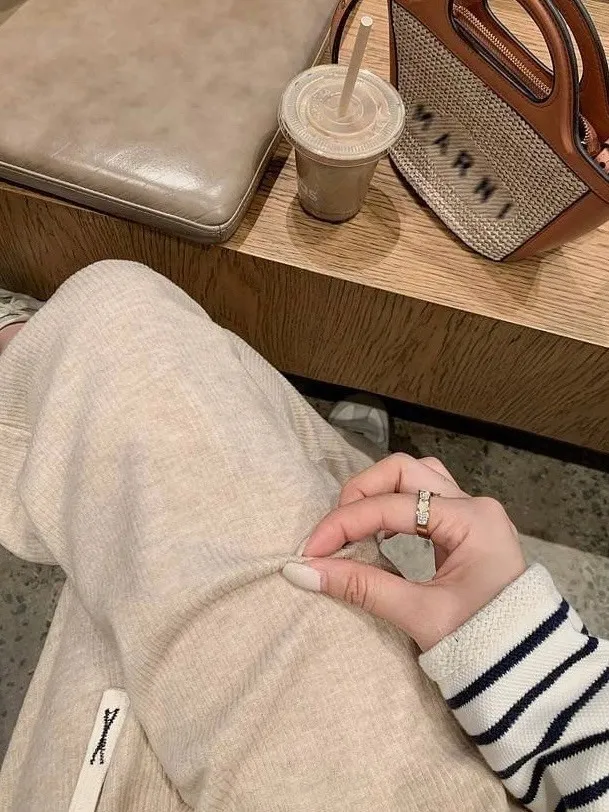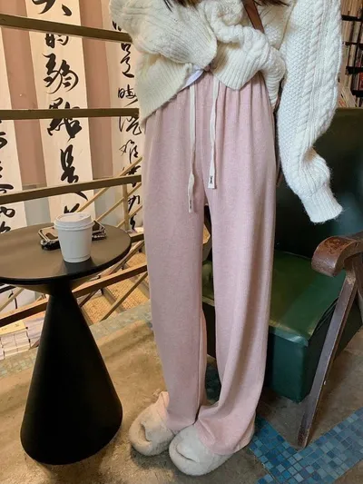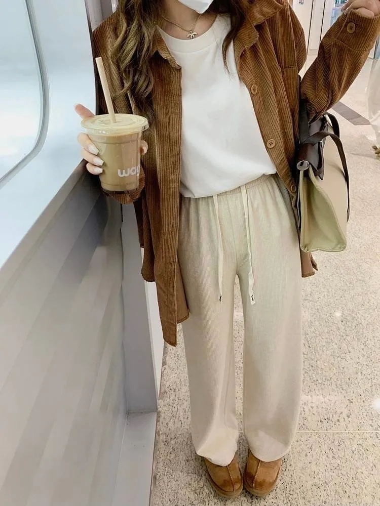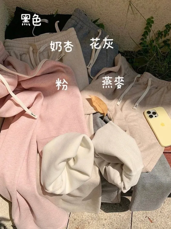 咩咩暖暖加絨褲有磅數的寬褲質感滿分!!抽繩做了交叉記號有設計感搭配坑條感紋路視覺修飾~~任何針織毛衣大學T都能搭完全可以包色買平量尺寸:腰31-62/臀54-84/長101cm顏色:黑/花灰/燕麥/奶杏/粉 這是燕麥色 ⬇️ ⬇️ ⬇️ 這是奶杏色 ⬇️ ⬇️ ⬇️