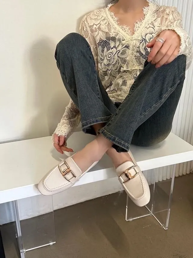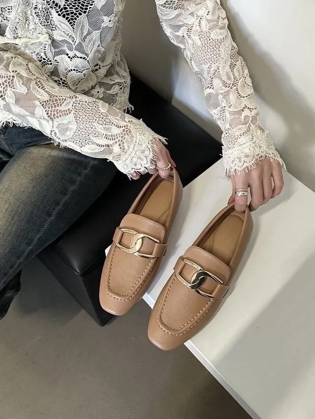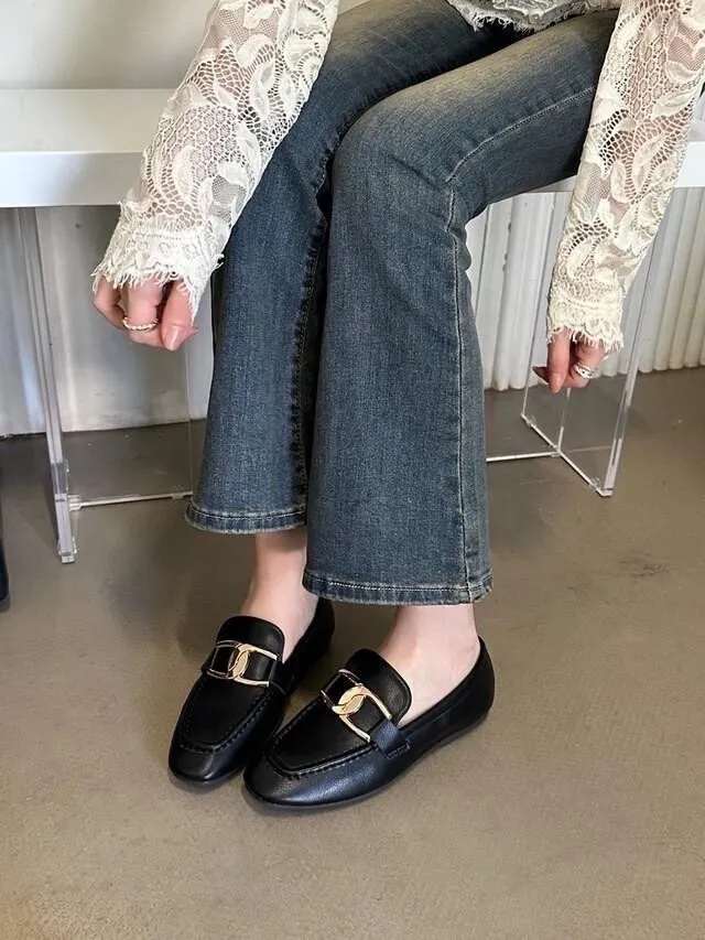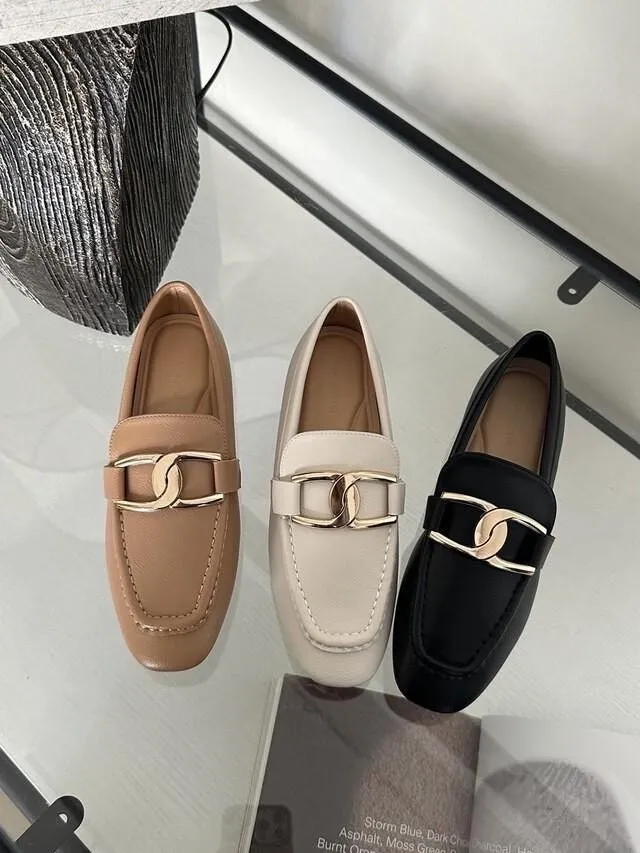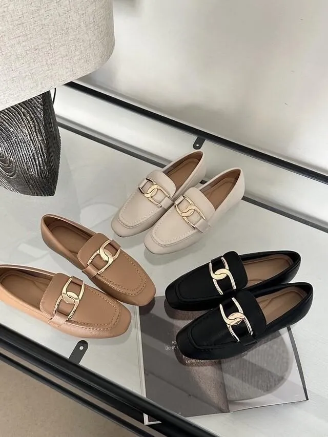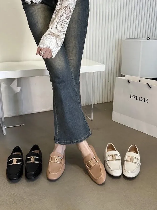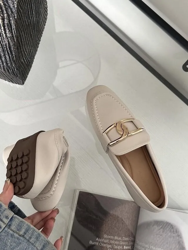 版型 ✔️偏小 建議選大半碼! 🔻顏色: ☑️黑 ☑️米白 ☑️咖 特別生產加大尺寸到26號大腳女孩也能輕鬆駕馭 鞋型質感細節都做得太好了 內裡超軟Q氣墊豬皮鞋墊 有質感的金屬釦凸顯鞋子的設計感 鞋跟高度1.5公分 超級好穿好好走 豆豆顆粒橡膠止滑鞋底