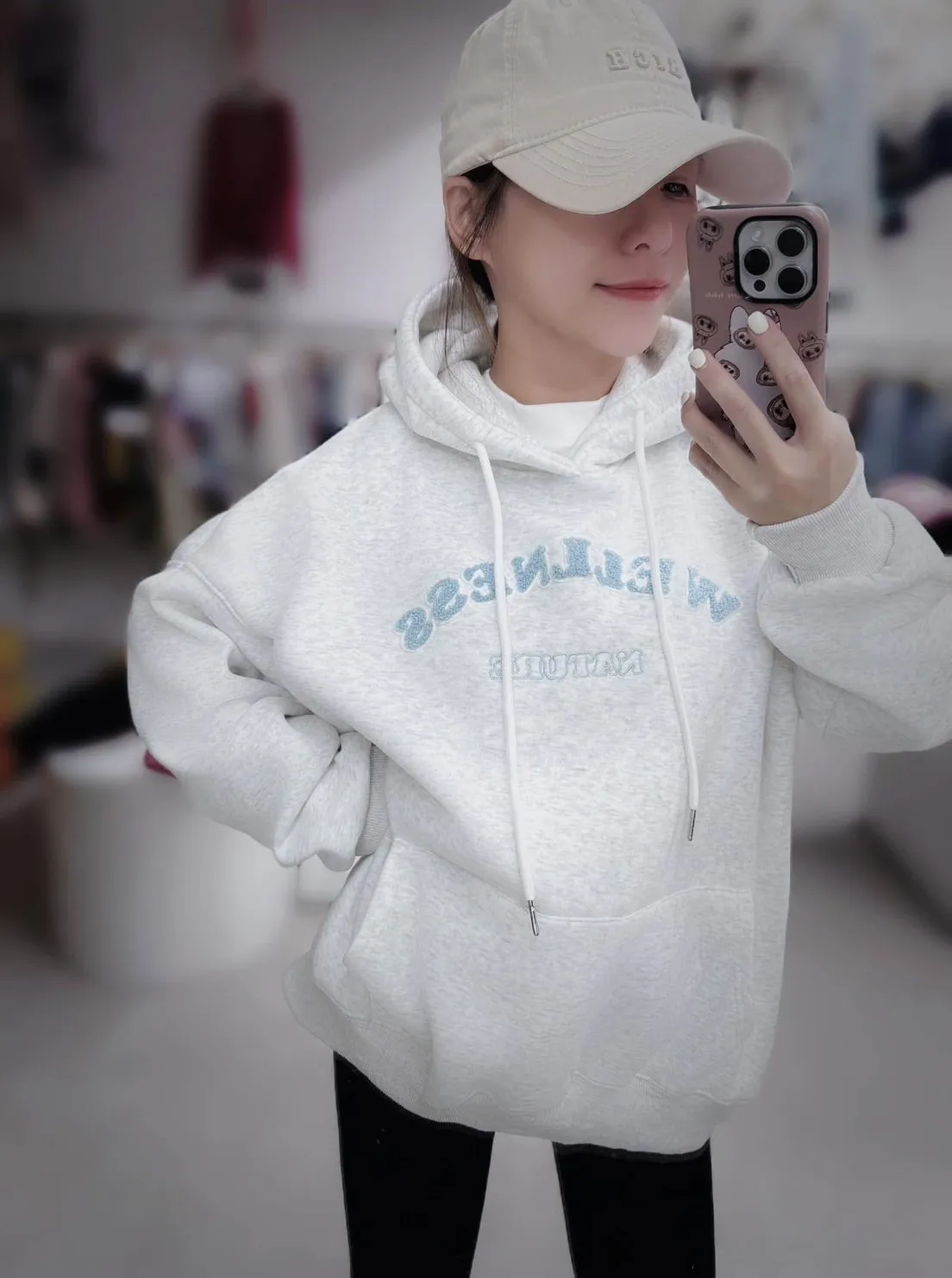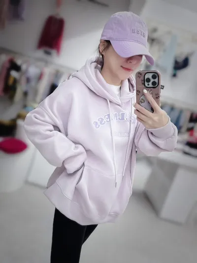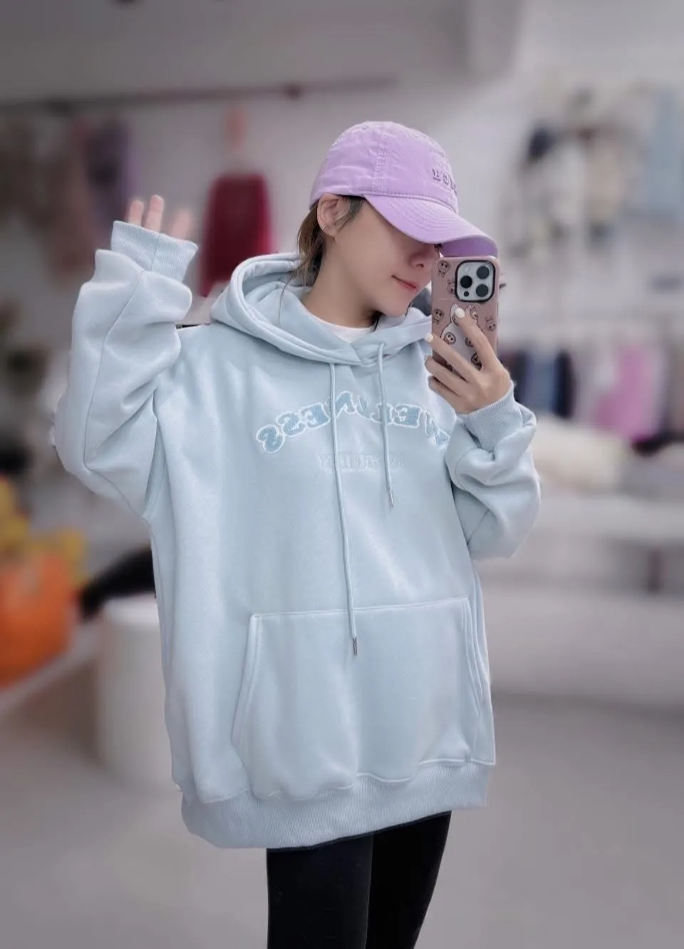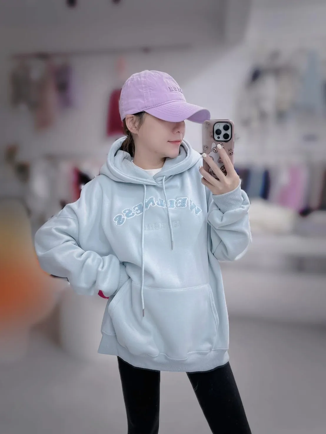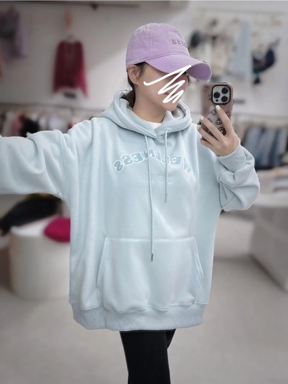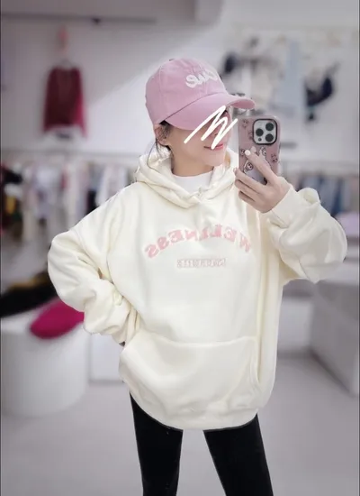 #先自己包色!這件質感超美 好甜! 立體Q毛英字母設計 #超級質感 刺繡框感英字母設計 #超加分 外層磨毛感的精緻質感超美的 還有 還有 ~ 親膚羊絨刷毛感 超讚 是一件 #高矮胖瘦 CP超高的帽Tee 落肩寬73 ‘ 胸圍72 ’ 全長67公分