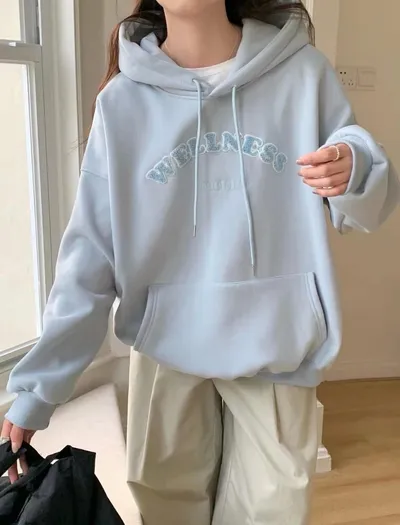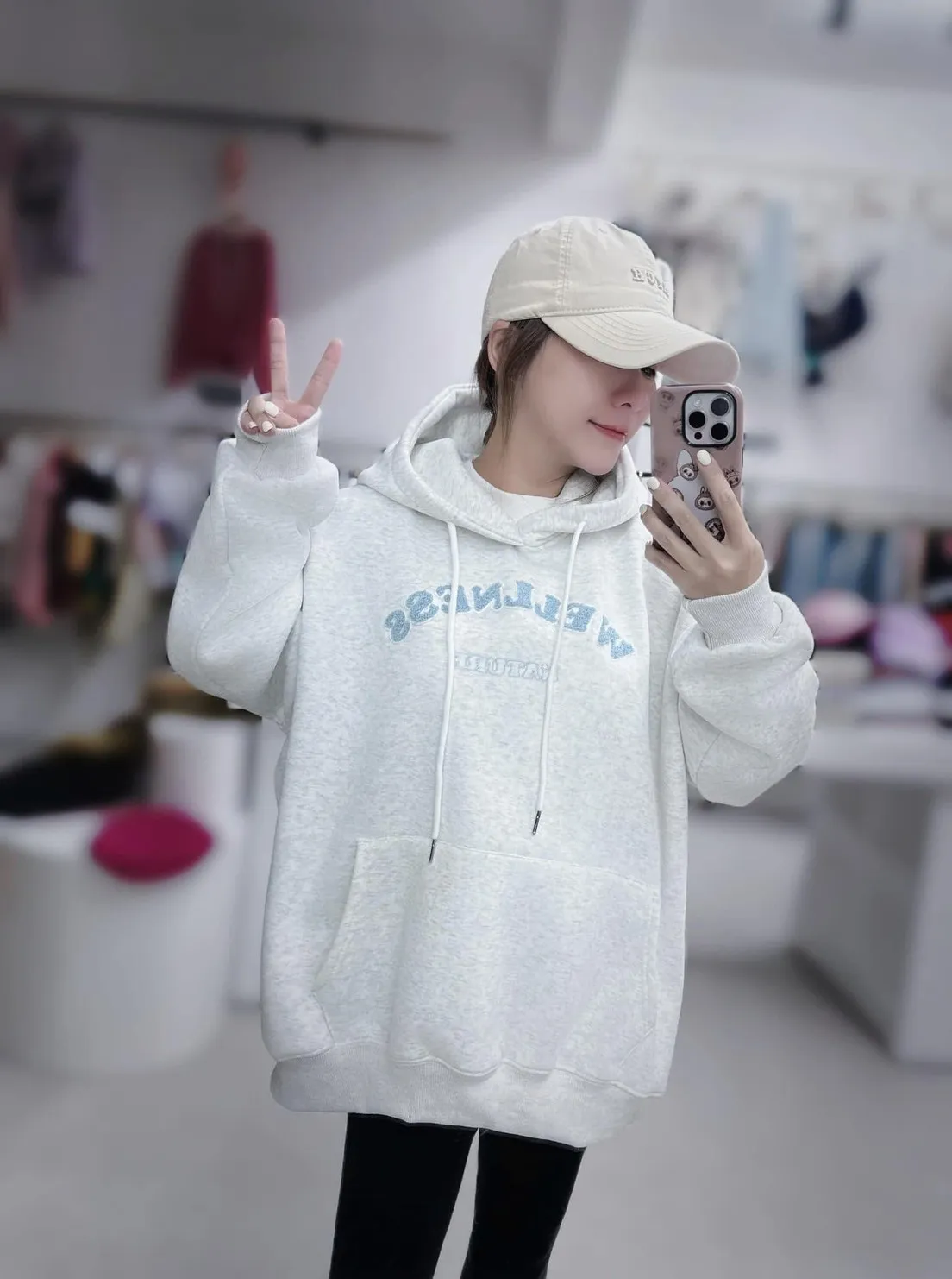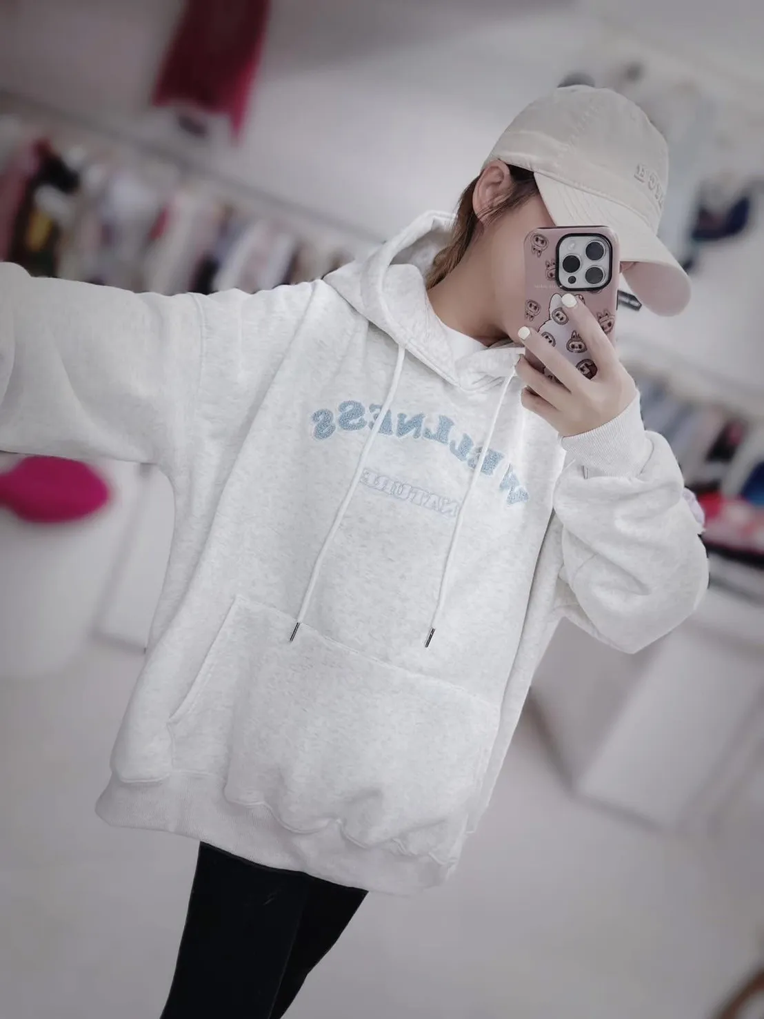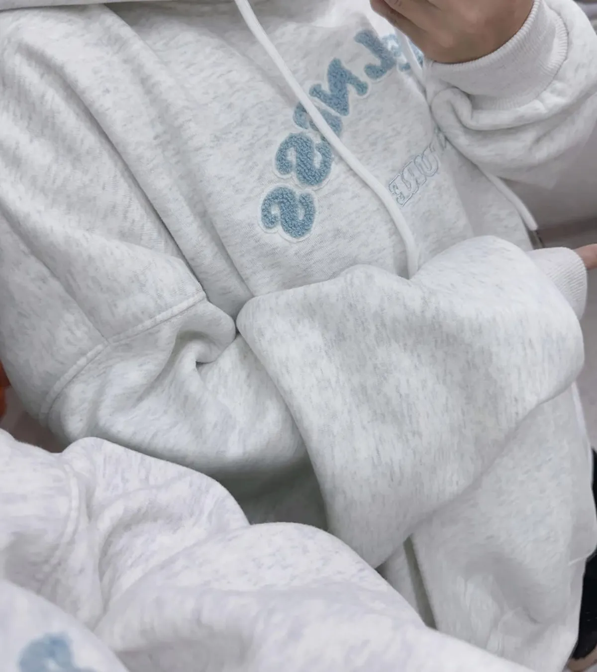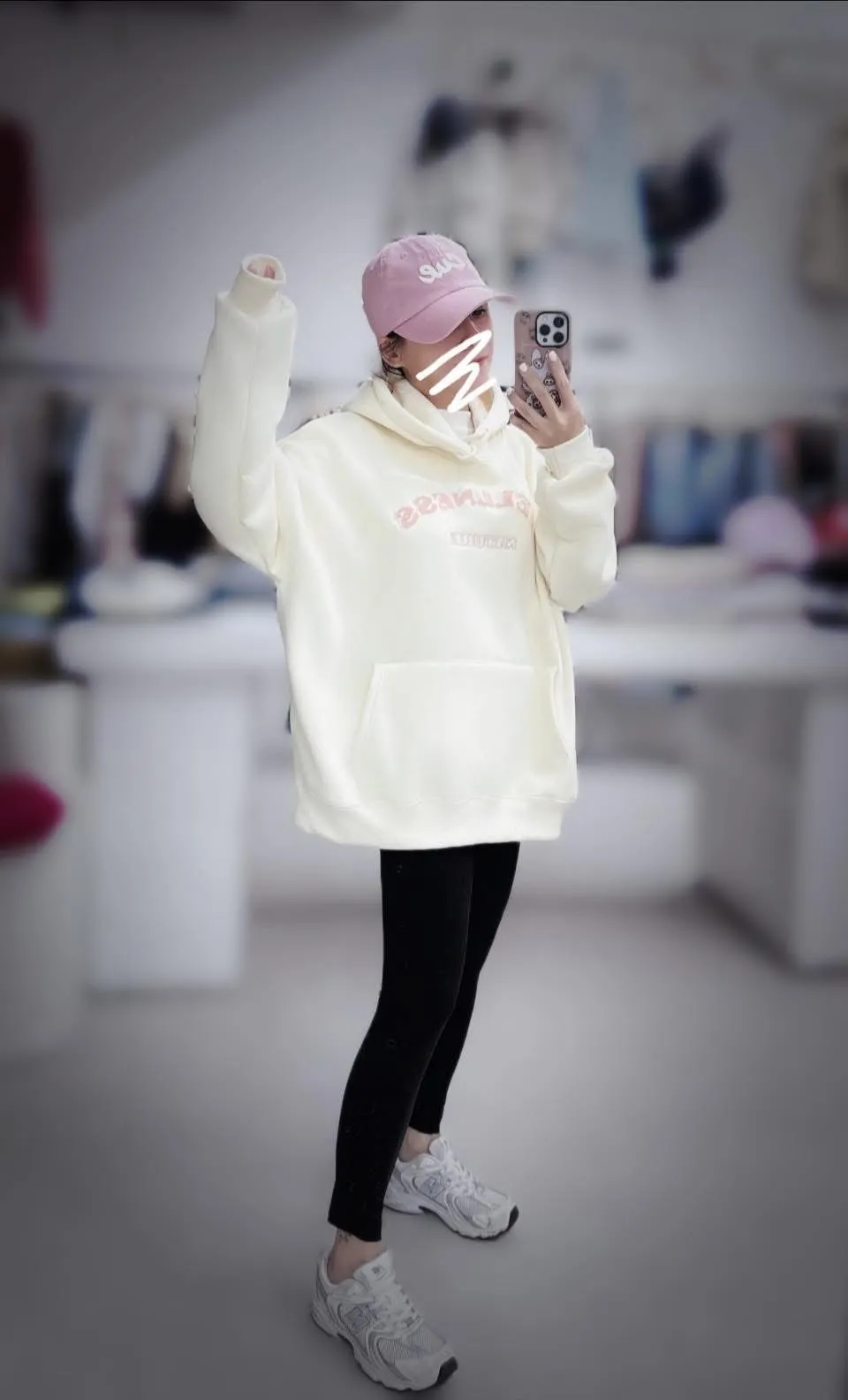 #先自己包色!這件質感超美 好甜! 立體Q毛英字母設計 #超級質感 刺繡框感英字母設計 #超加分 外層磨毛感的精緻質感超美的 還有 還有 ~ 親膚羊絨刷毛感 超讚 是一件 #高矮胖瘦 CP超高的帽Tee 落肩寬73 ‘ 胸圍72 ’ 全長67公分