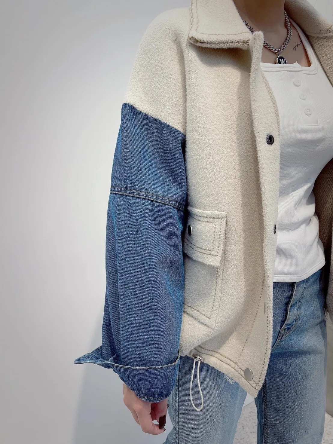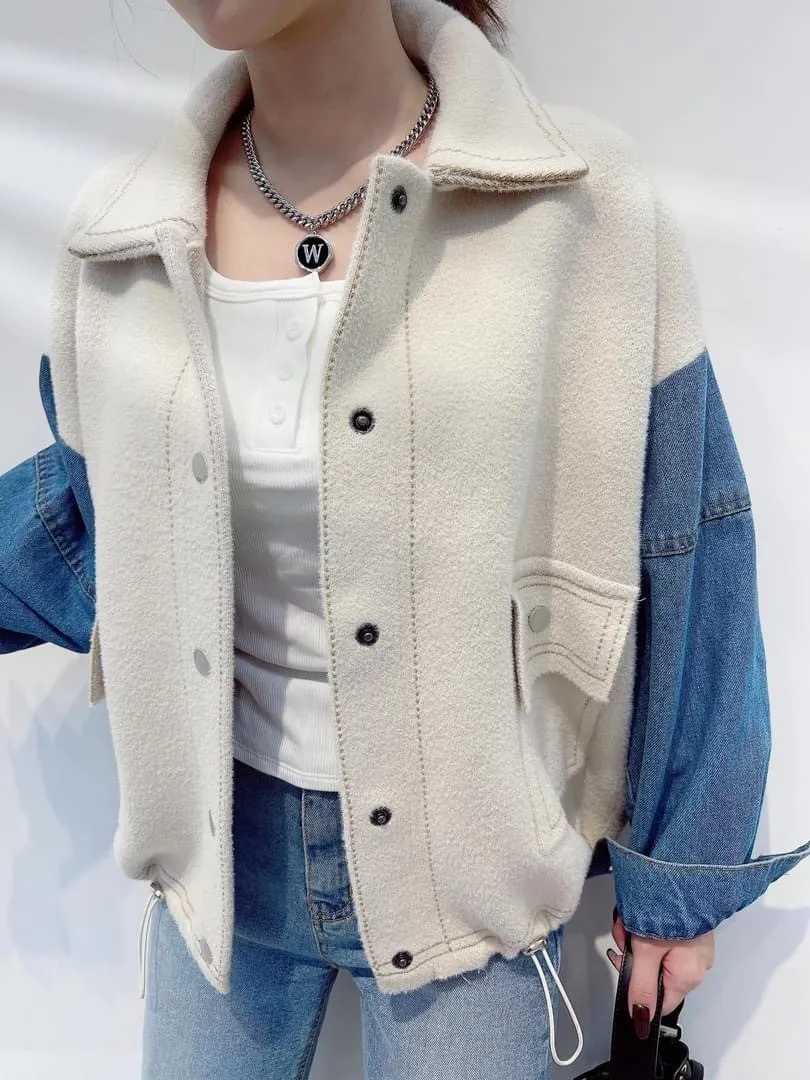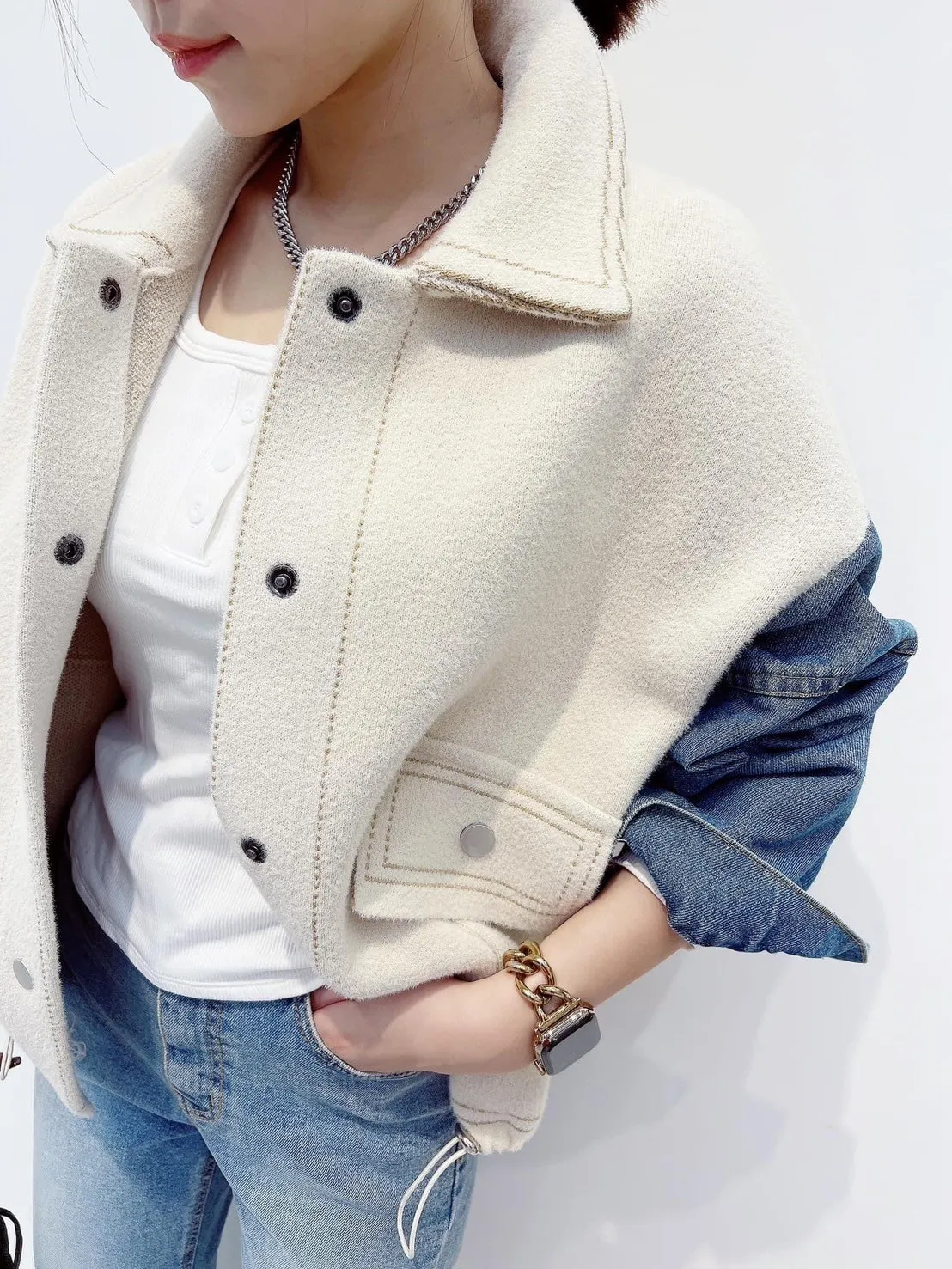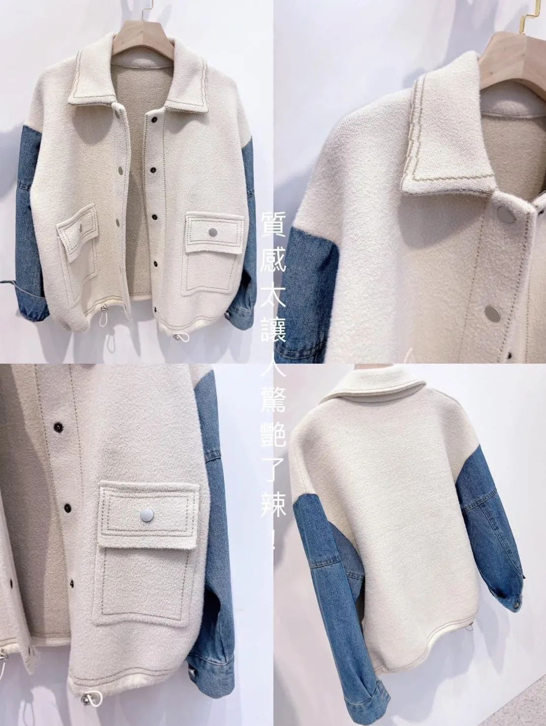 質感太驚艷了!高厚磅數羊絨針織拼接牛仔袖外套