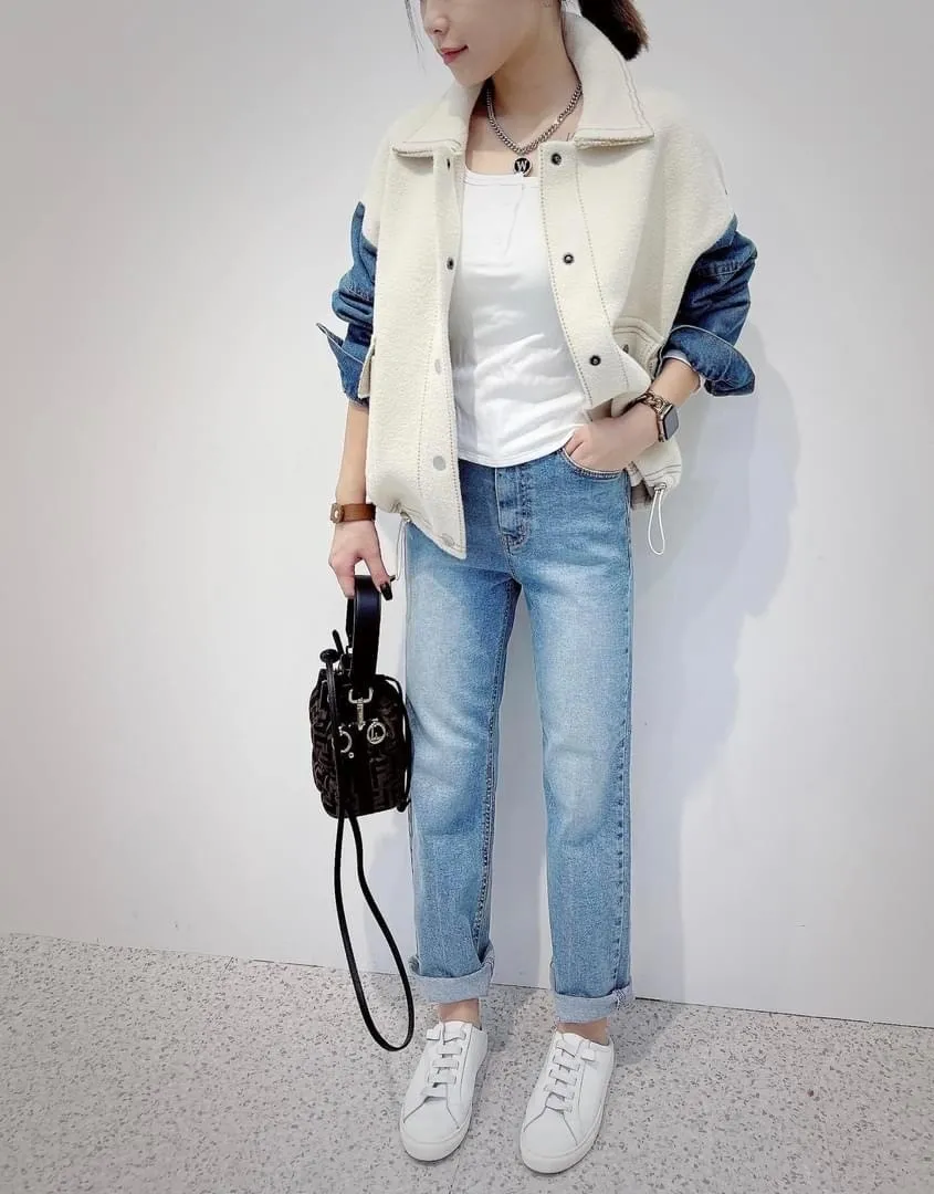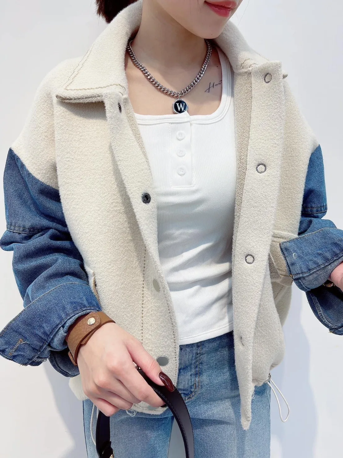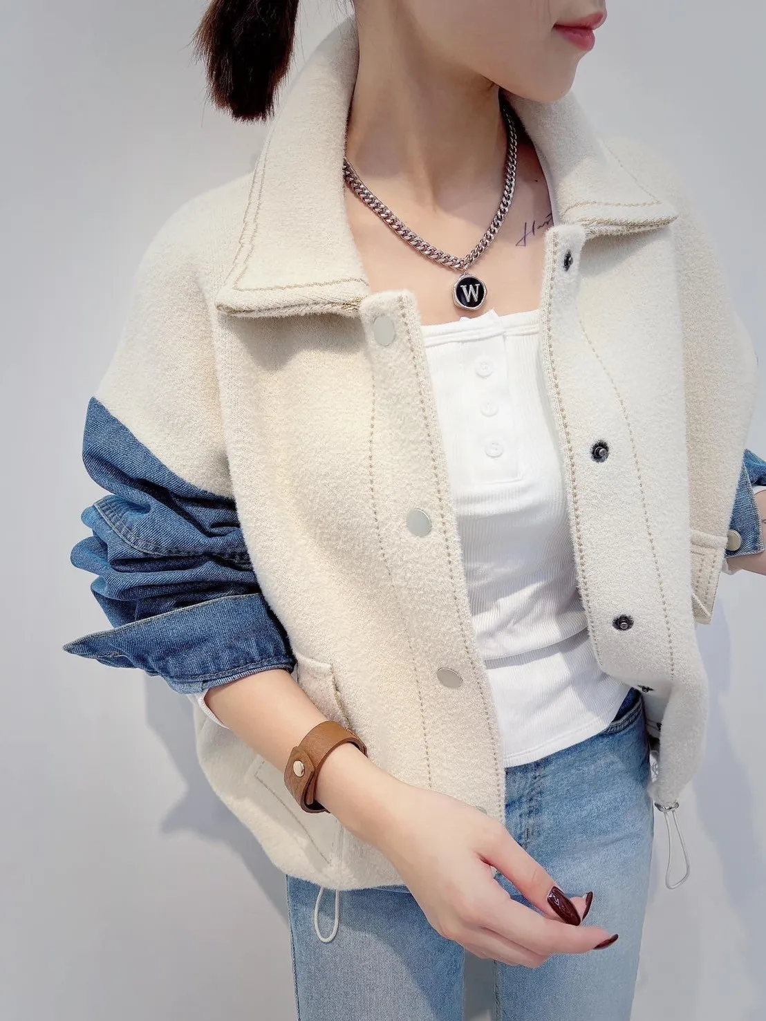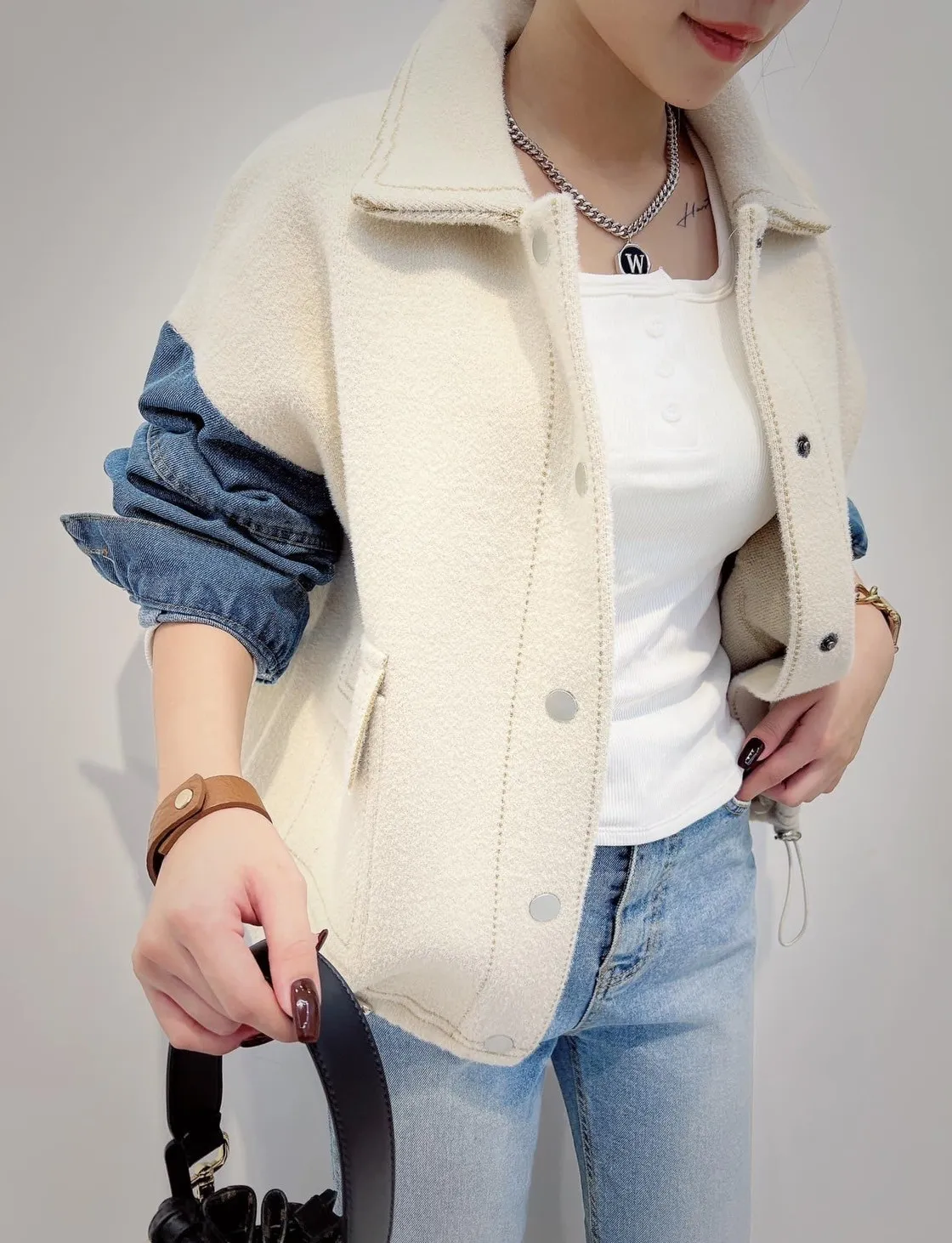 質感太驚艷了!高厚磅數羊絨針織拼接牛仔袖外套