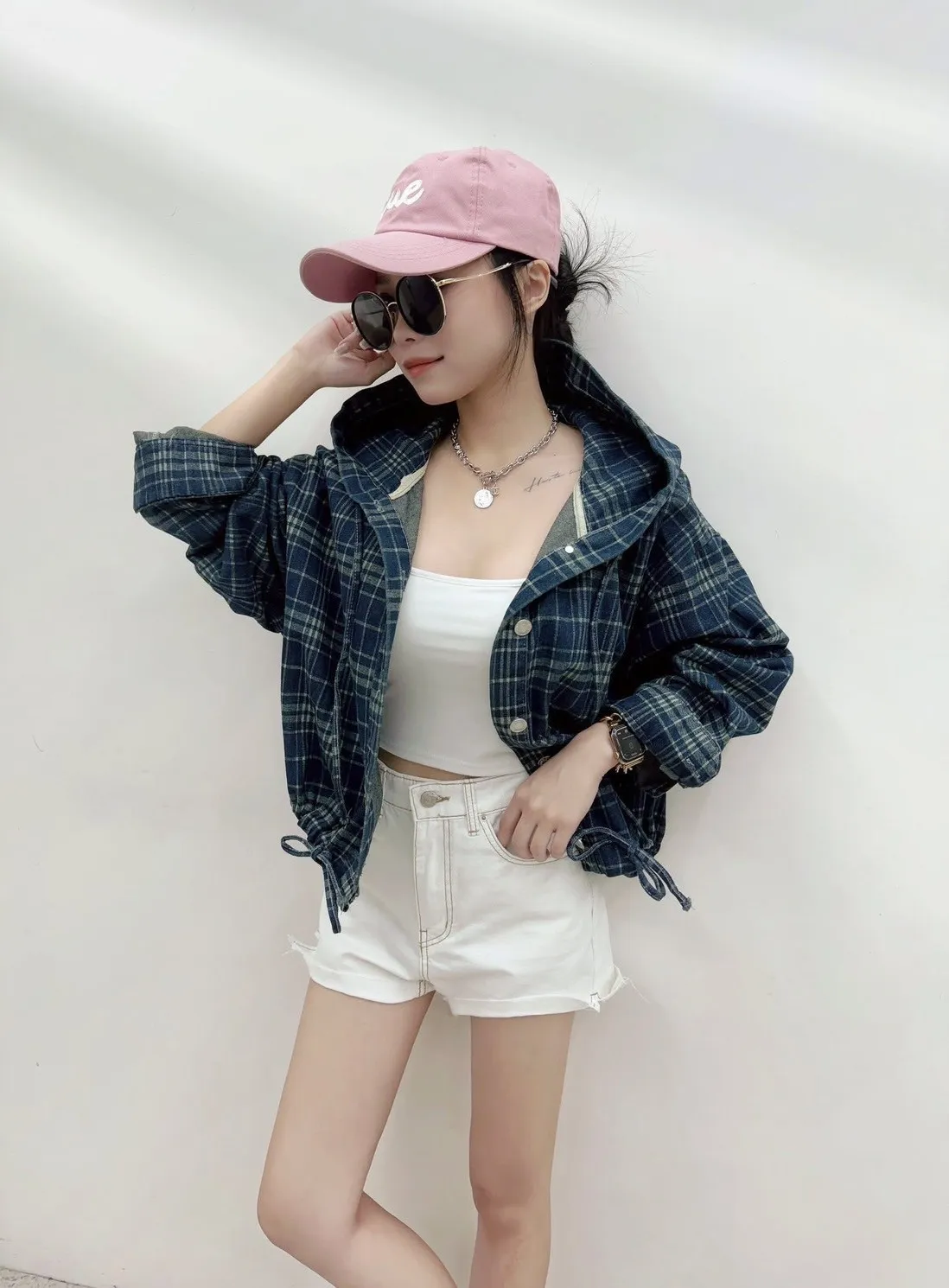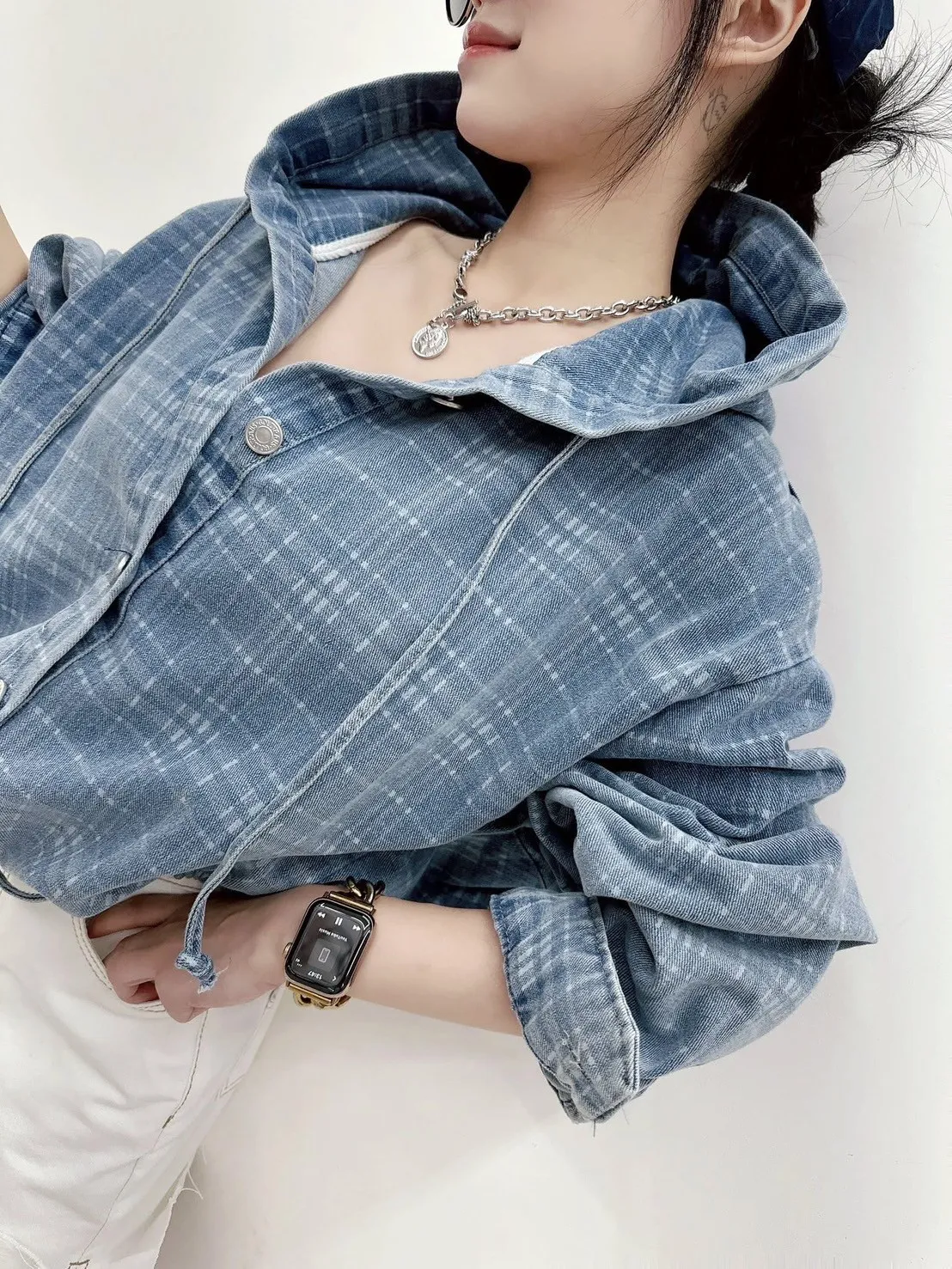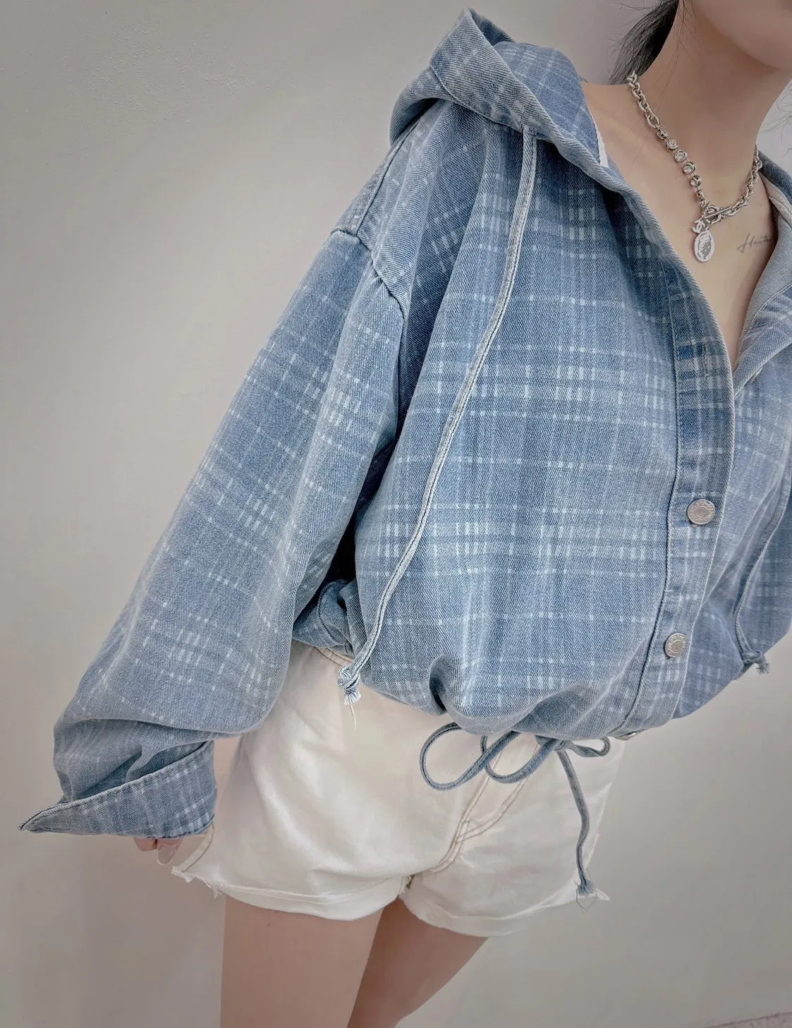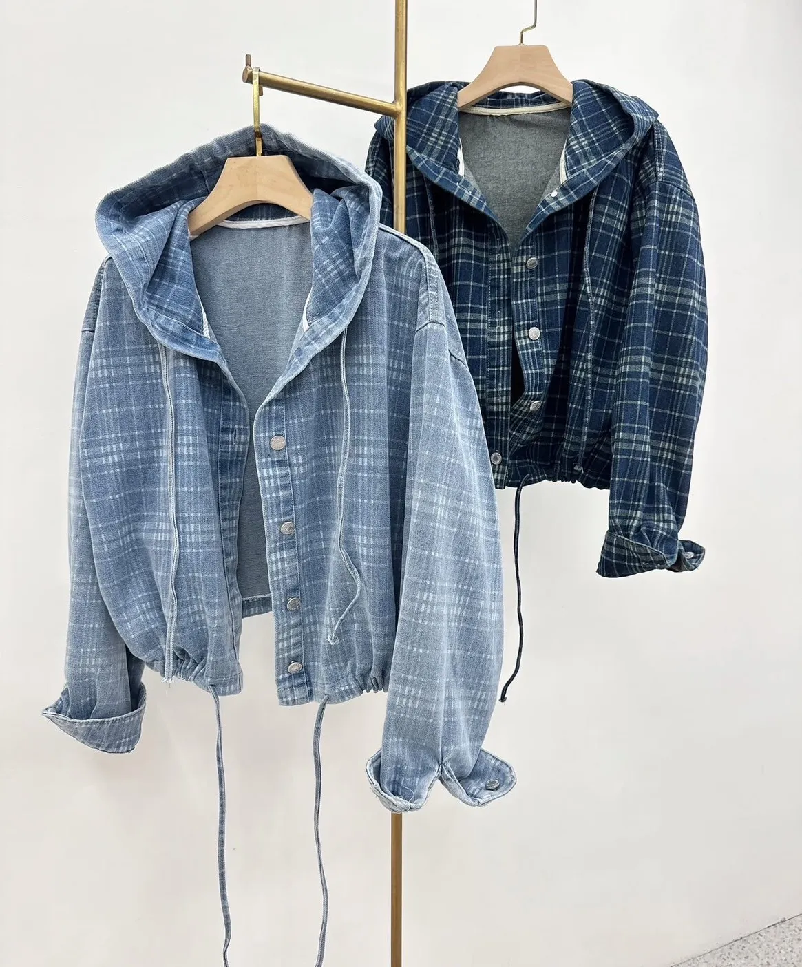 早秋新款 秋天終究會來 早買晚買都要買現在下單最划算收到後立即就可以穿上!😍 率性與休閒完美融合的牛仔格紋連帽外套 #呈現出復古又隨性的色澤 #輕盈棉質混紡面料 #柔軟丹寧挺度的剛剛好 連帽設計結合排扣與抽繩下襬微收修飾比例 #也是最代表長腿必收單品 鬆弛落肩版型修飾身形 #展現慵懶率性風 落肩寬 54 ‘ 胸圍67 ’ 全長52公分