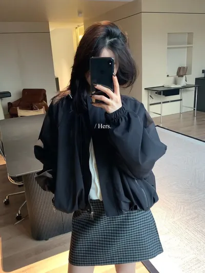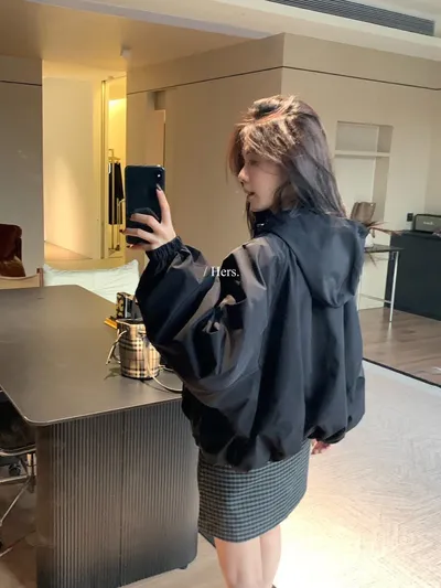 正式管道代理正版商品 不是坊間拿圖用仿款外面很多盜版質感/版型天差地遠!請認明親民價 高品質正版商品 極簡氣場感短夾克 寬鬆落肩+短版剪裁,穿起來立刻顯比例~ 抽繩設計能自由調整鬆緊,搭裙裝、牛仔或運動褲都很match布料挺度剛好,不軟塌、不厚重,秋天單穿、冬天當外層都很實穿 立體連帽+抽繩設計,造型感滿分 挺料質感不易皺,穿起來俐落不邋遢 寬鬆剪裁遮手臂、修飾身形,誰穿都好看 (( 模特164cm/46kg 示範穿著 )) 平量:衣長53/胸圍73公分