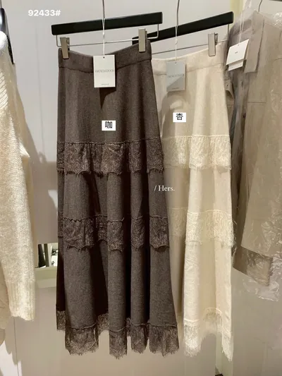 正式管道代理正版商品 不是坊間拿圖用仿款外面很多盜版質感/版型天差地遠!請認明親民價 高品質正版商品 真的是秋冬溫柔穿搭代表! 針織拼接蕾絲的層層設計,行走間飄逸優雅視覺拉長比例,顯瘦又顯高~ 針織面料柔軟有彈性,舒適不貼身,搭配針織外套或襯衫都超級好看 米色氣質、咖色溫柔知性,每一色都讓人想包! 拼接蕾絲設計,細節滿分 高腰版型,修飾比例 針織布料柔軟親膚,穿著舒適 米/咖兩色選擇,氣質百搭 平量尺寸(cm) 裙長93|腰圍33|臀圍52
