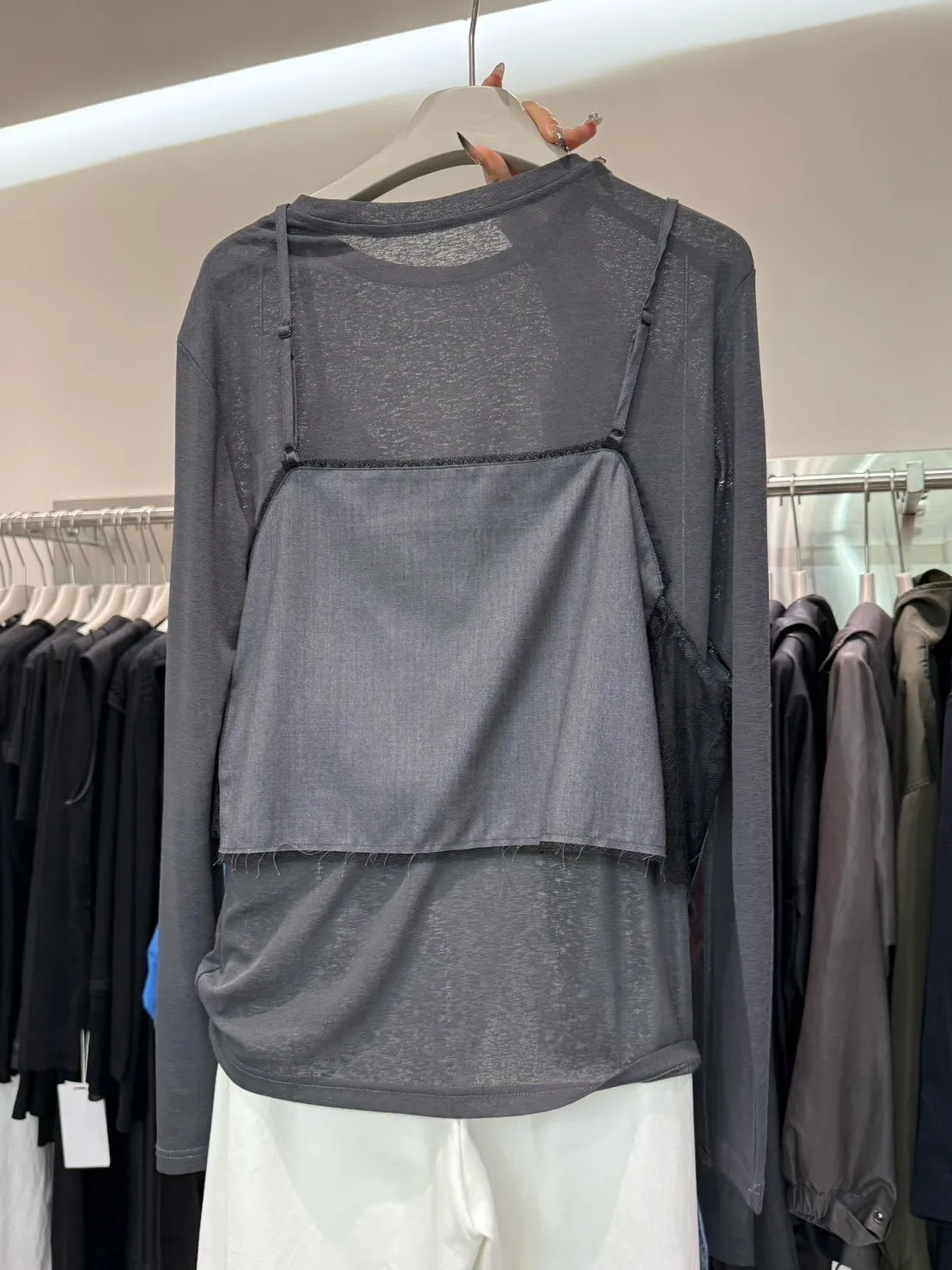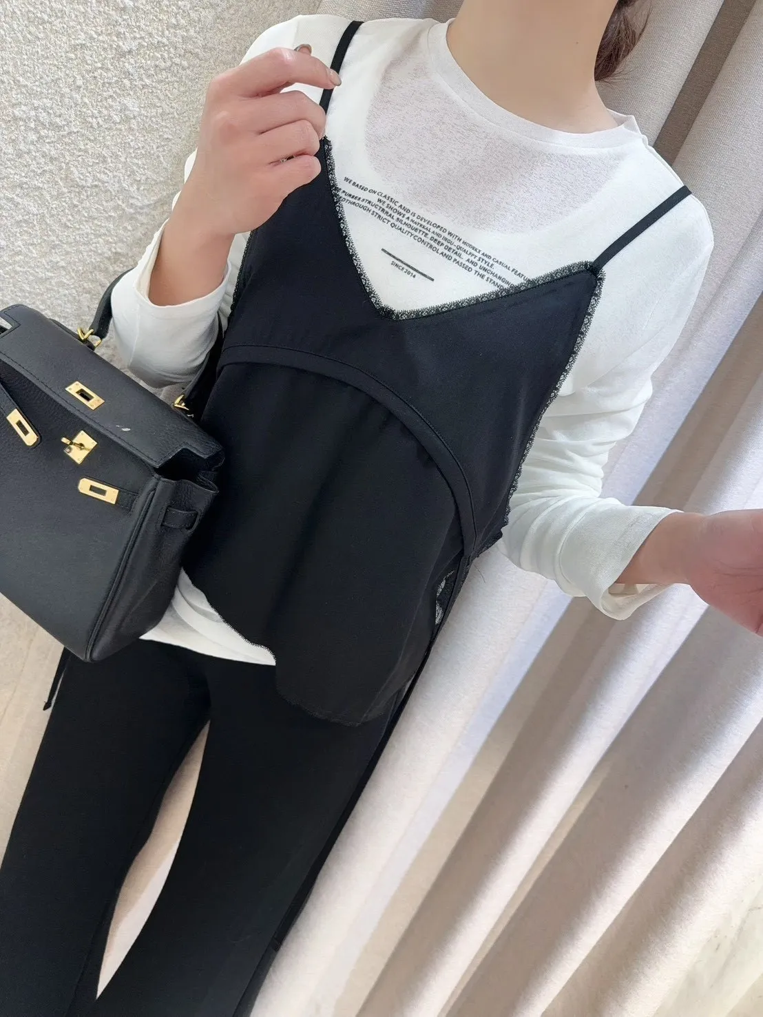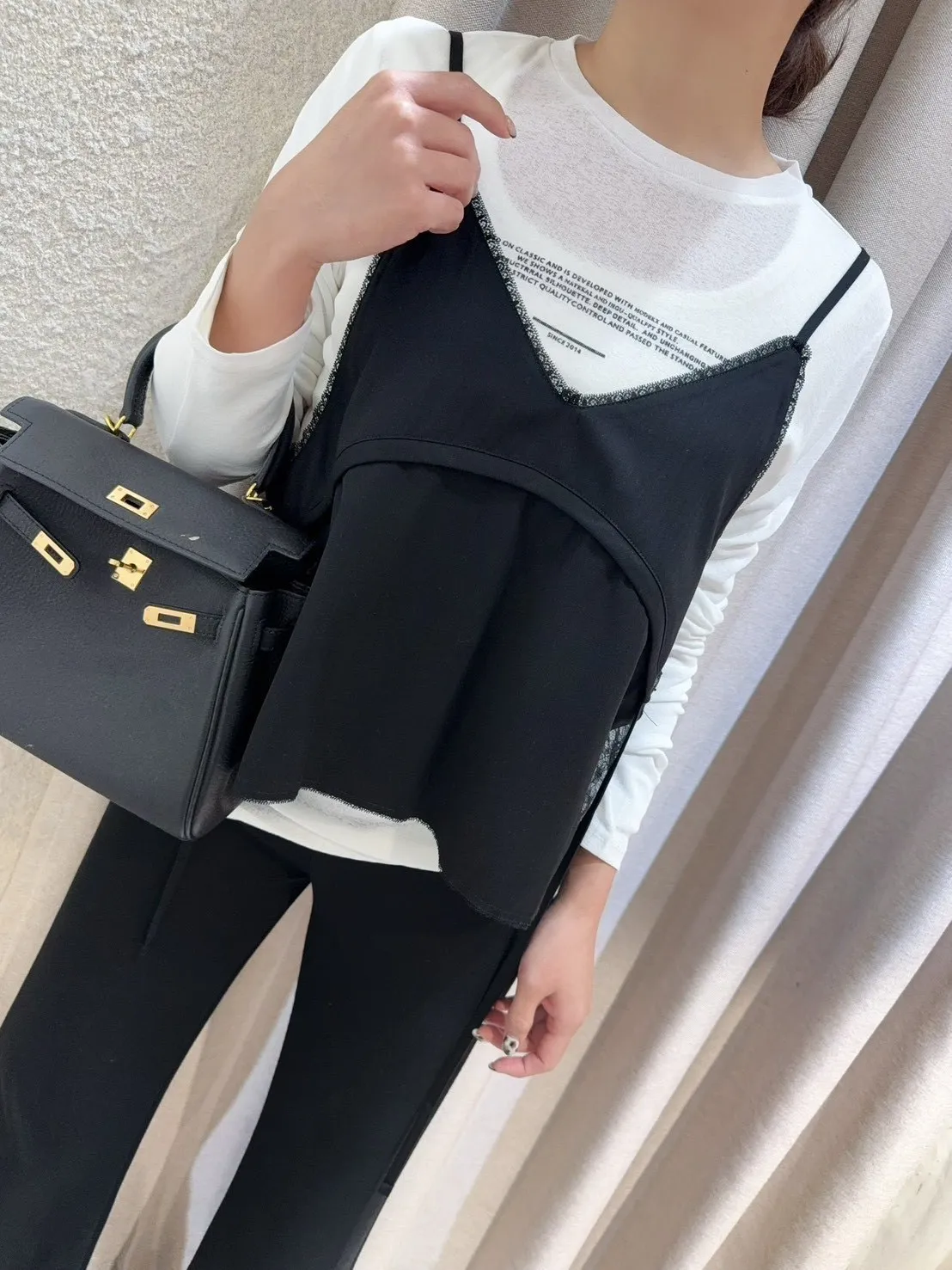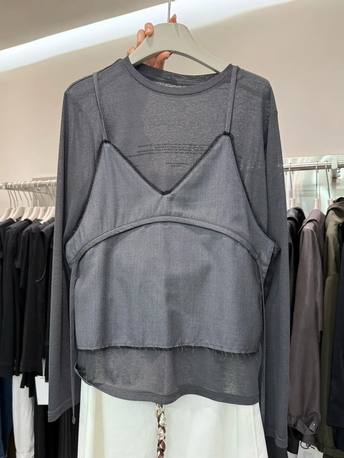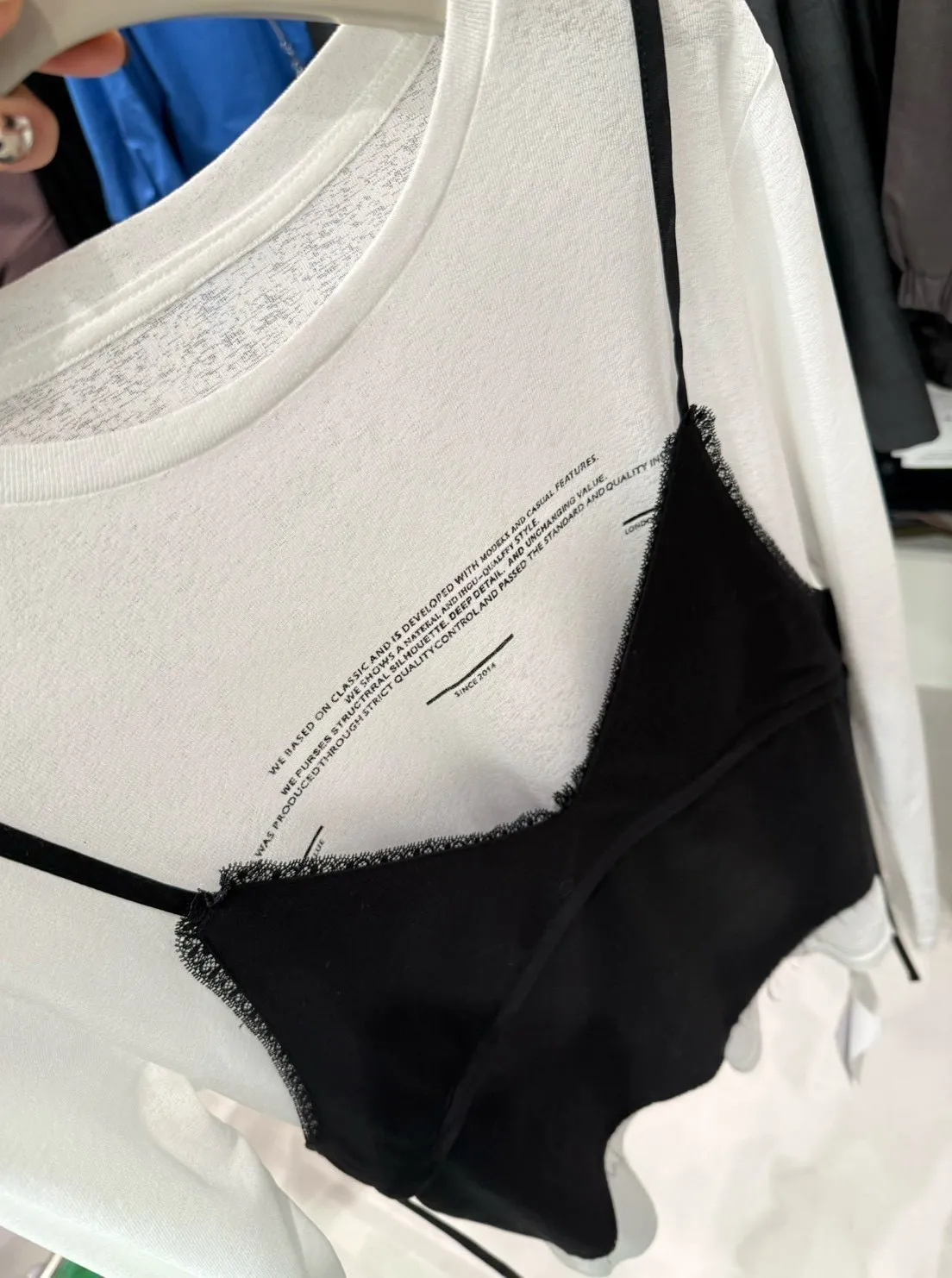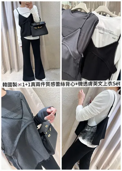 穿法很簡單!但是看起來超有打扮 而且真兩件 拆開搭配完全沒問題 外層薄西裝面料質感超讚👍🏻 側邊蕾絲+線條垂墜,自然法式率性感 內層踢恤微透膚 日常搭配小可愛也很性感 不論搭牛仔或西裝褲都能撐起俐落氛圍 顏色:白色、灰色 尺寸:胸52、長約50cm(肩帶可調) 肩40、胸45-50、長65cm