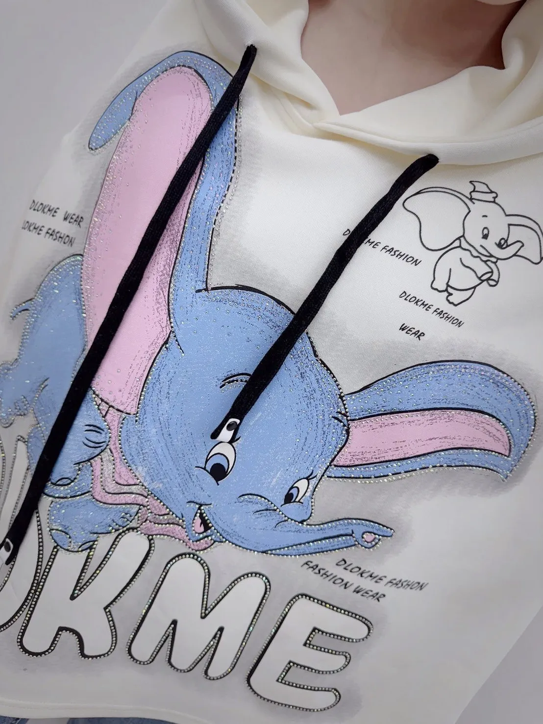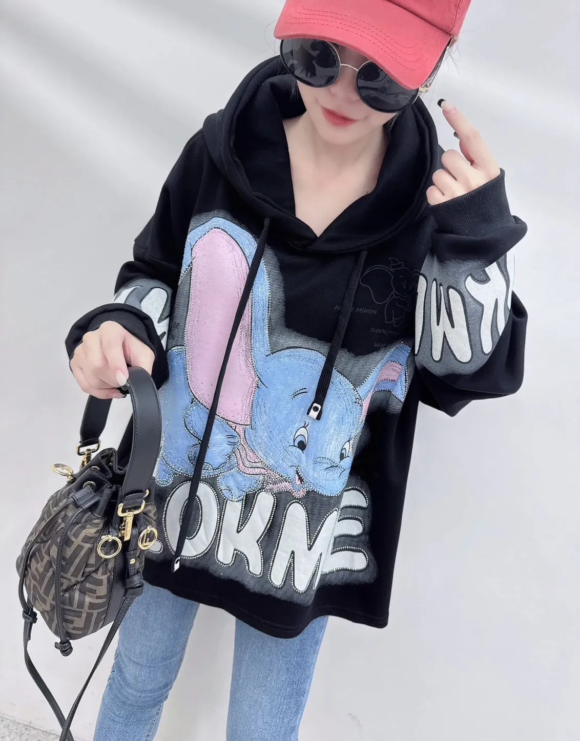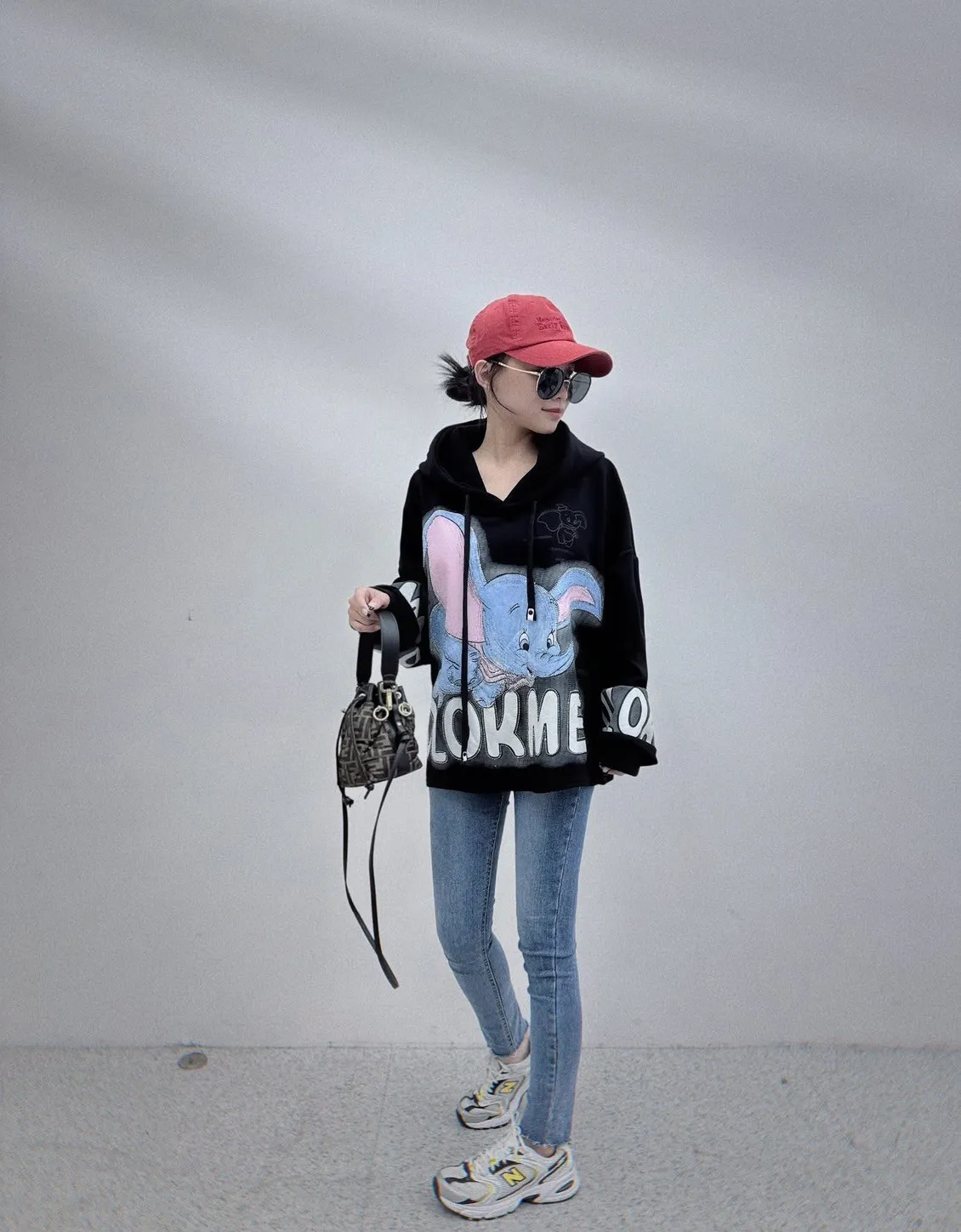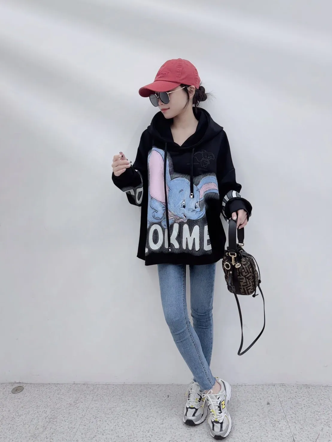#可愛與時髦的完美融合 立體亮晶設計+柔軟厚棉布料 #穿起來超有存在感 Oversize版型顯瘦又遮肉 #隨性一套就有造型感 小飛象立體亮面印花 閃爍晶粉感線條 厚磅微太空復合柔軟棉質 肩寬68 ‘ 胸圍68 ’ 全長63公分