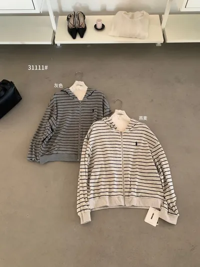 幫大家找到韓國指定代工的外銷質感店家小資族也有更棒的選擇用甜甜價買到媲美韓貨的質感及流行款式❤️ 氣質休閒風條紋連帽衛衣 布料柔軟親膚、厚薄適中,連帽與拉鍊設計增添層次感,小刺繡LOGO低調精緻,整體版型慵懶有型,隨性穿就能展現韓式俐落感 平量/肩64 胸61 長60 公分