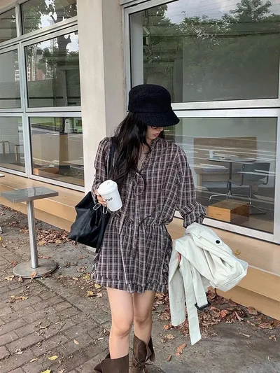 幫大家找到韓國指定代工的外銷質感店家小資族也有更棒的選擇用甜甜價買到媲美韓貨的質感及流行款式❤️ #氣質女孩秋日穿搭首選 這款「法式格紋襯衫裙」一穿整個人超有氛圍感~ 經典咖色格紋配上收腰綁繩設計,顯瘦又修身! 微澎袖剪裁帶出柔和線條,單穿有造型,搭外套也超有層次。 收腰抽繩設計可調整鬆緊,修飾比例更顯高 軟挺格紋布料有型不皺,氣質滿分 小翻領+襯衫袖剪裁,甜中帶點率性 — 平量尺寸(cm) S|裙長84 / 肩寬35 / 胸圍60 M|裙長85 / 肩寬36 / 胸圍62