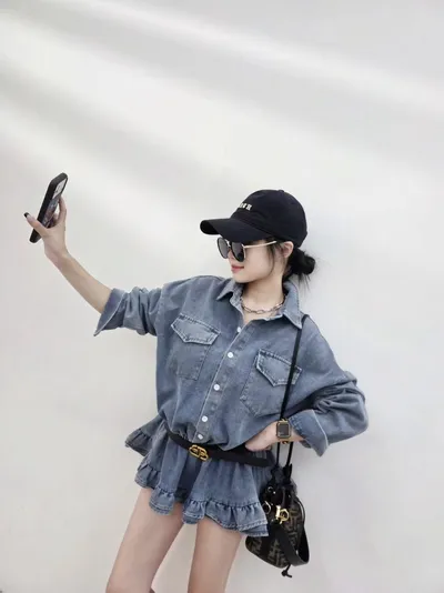 整件是偏柔軟的丹寧布,穿起來有型但不僵硬