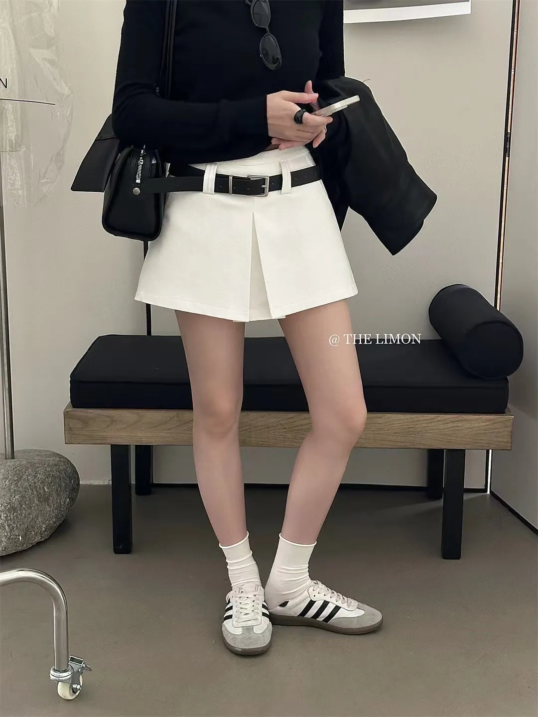 我們開團的是正版檸檬家 外面超多盜版圖片一樣 質感差非常多 請認明親民價 高品質正版商品✔️ 正面壓摺設計,視覺拉長比例,腿超~級~直✔️ 褲裙設計活動更自在,也更有造型感✔️ 自帶質感皮革腰帶,馬上多個造型亮點✔️整體有挺度,不會軟趴趴沒精神✔️ 有內裏,白色也不透,這點真的很加分!▫️白色:乾淨俐落的定番色,搭任何上衣都好看,超百搭!▫️黑色:顯瘦、實用、不用動腦搭配的首選,怎麼穿都合理尺寸 : 腰40/臀55/全長33 公分材質:西裝棉
