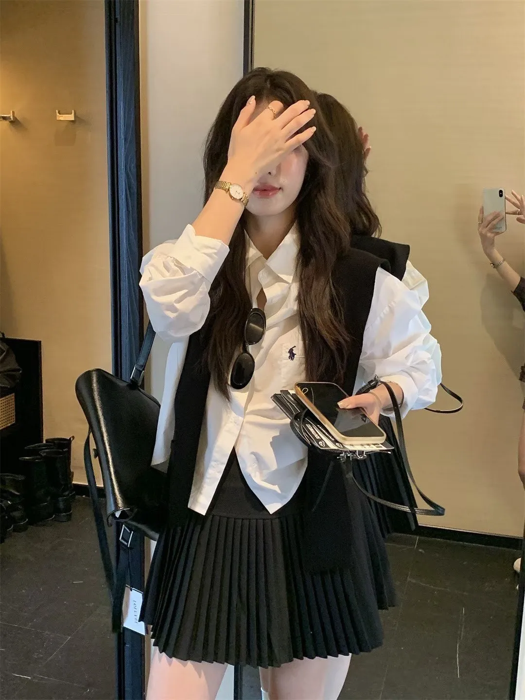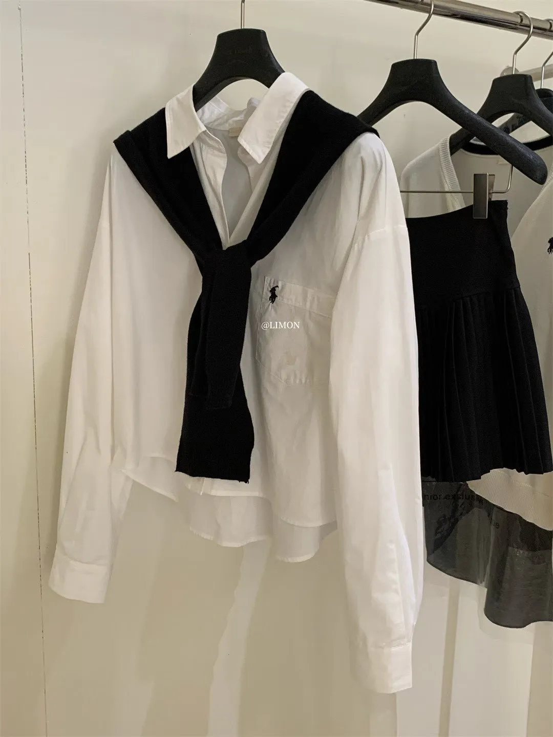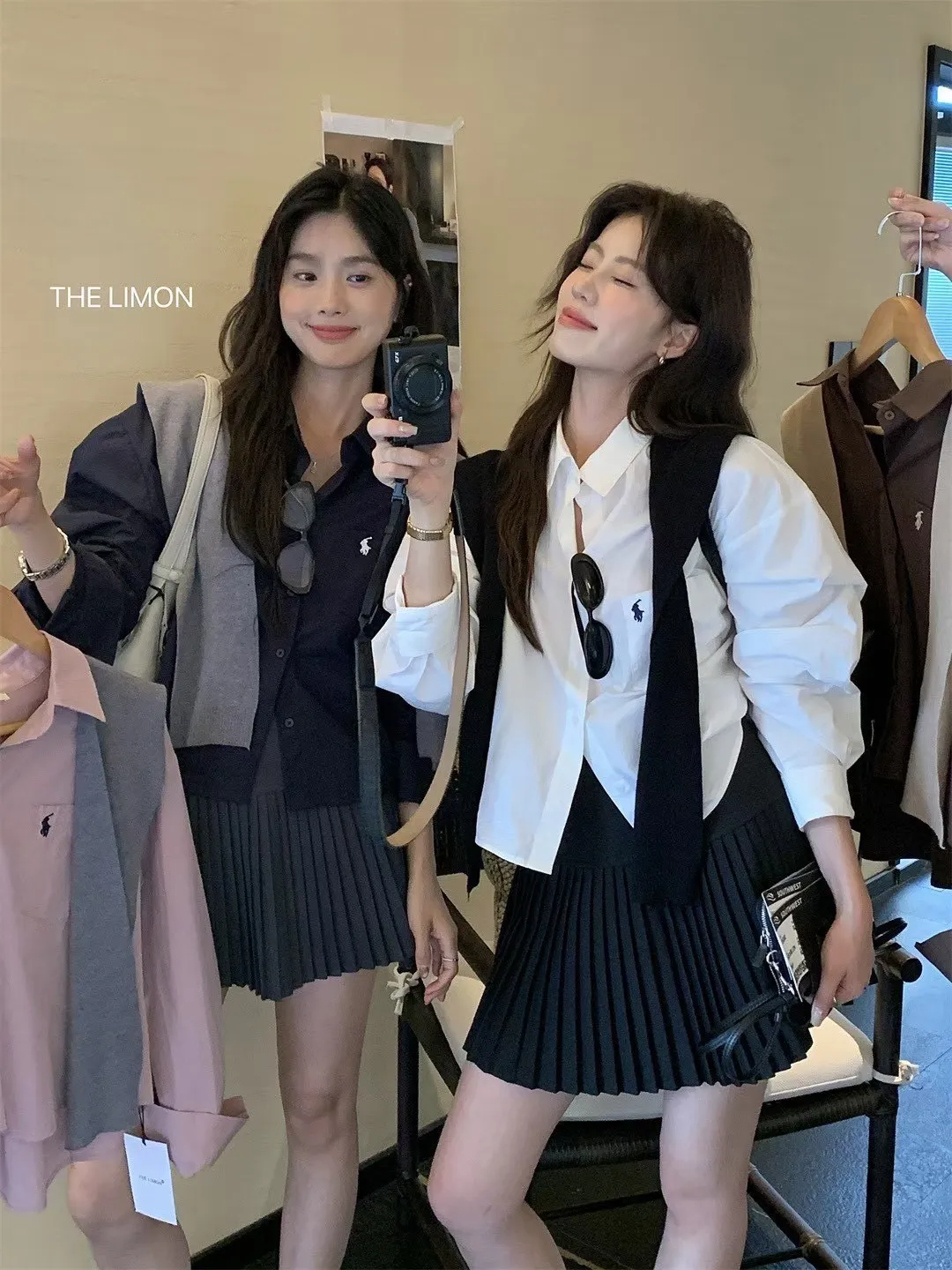 現貨完售不補/正版檸檬家 韓妞減齡刺繡襯衫+披肩套裝