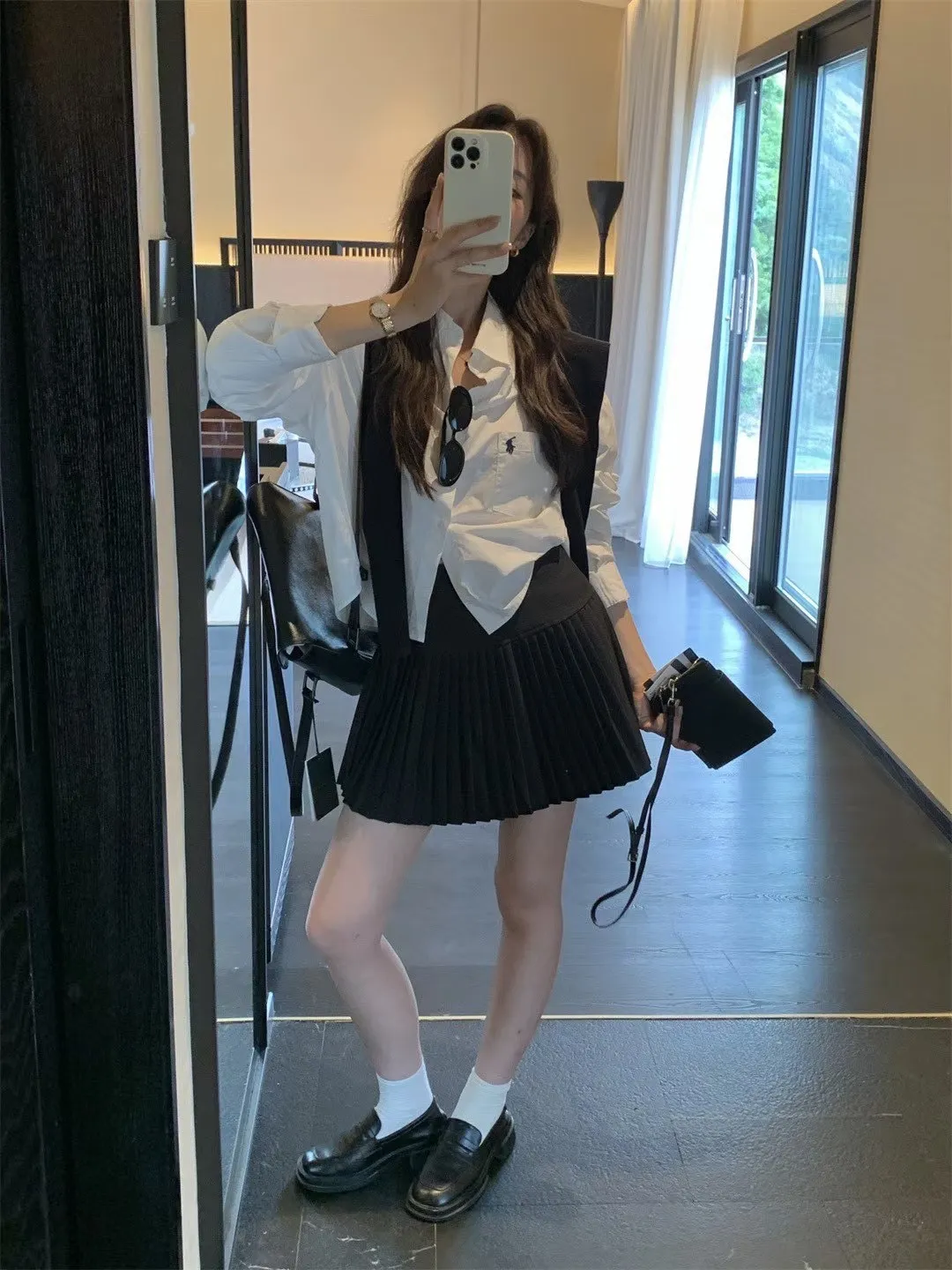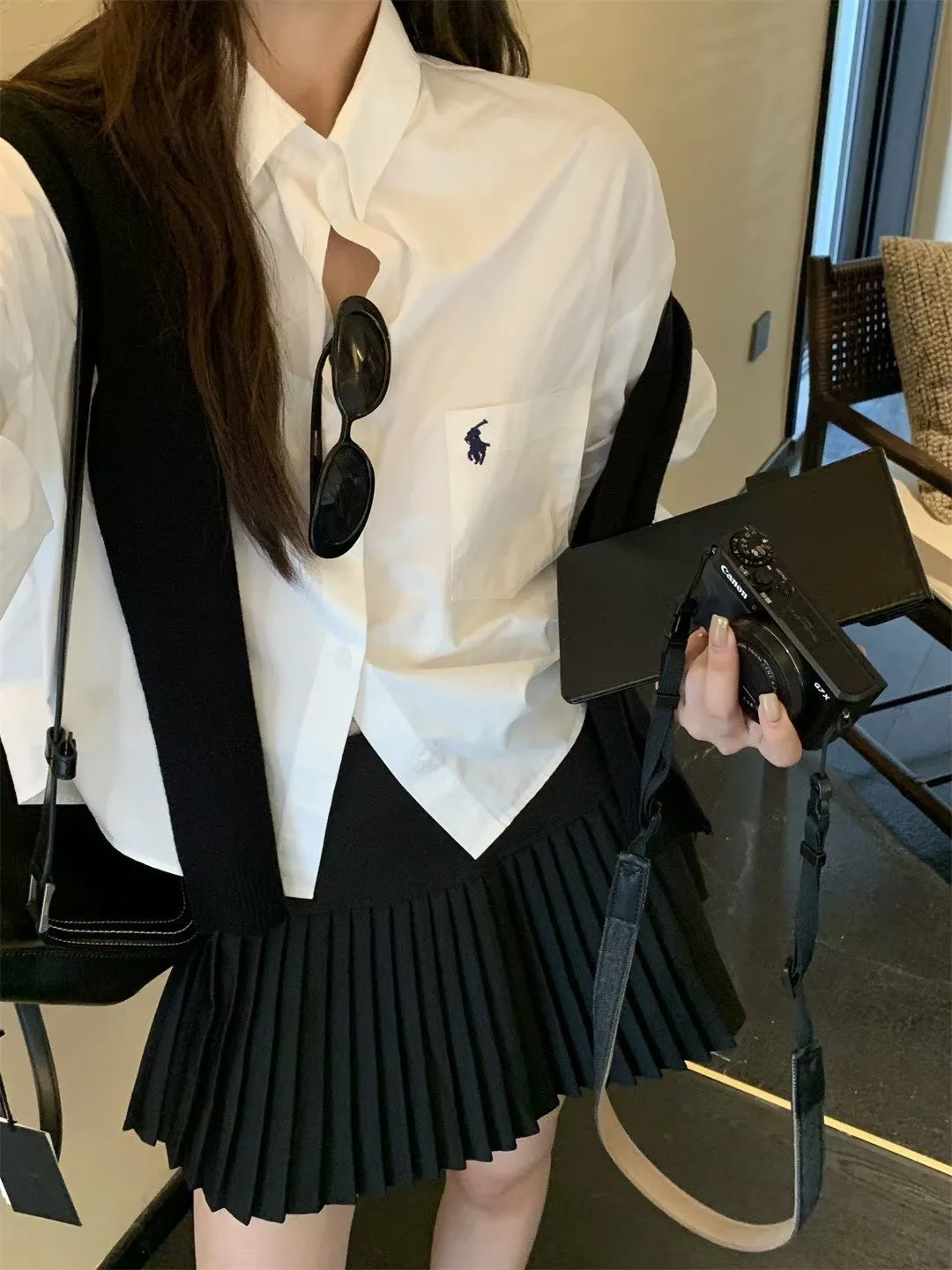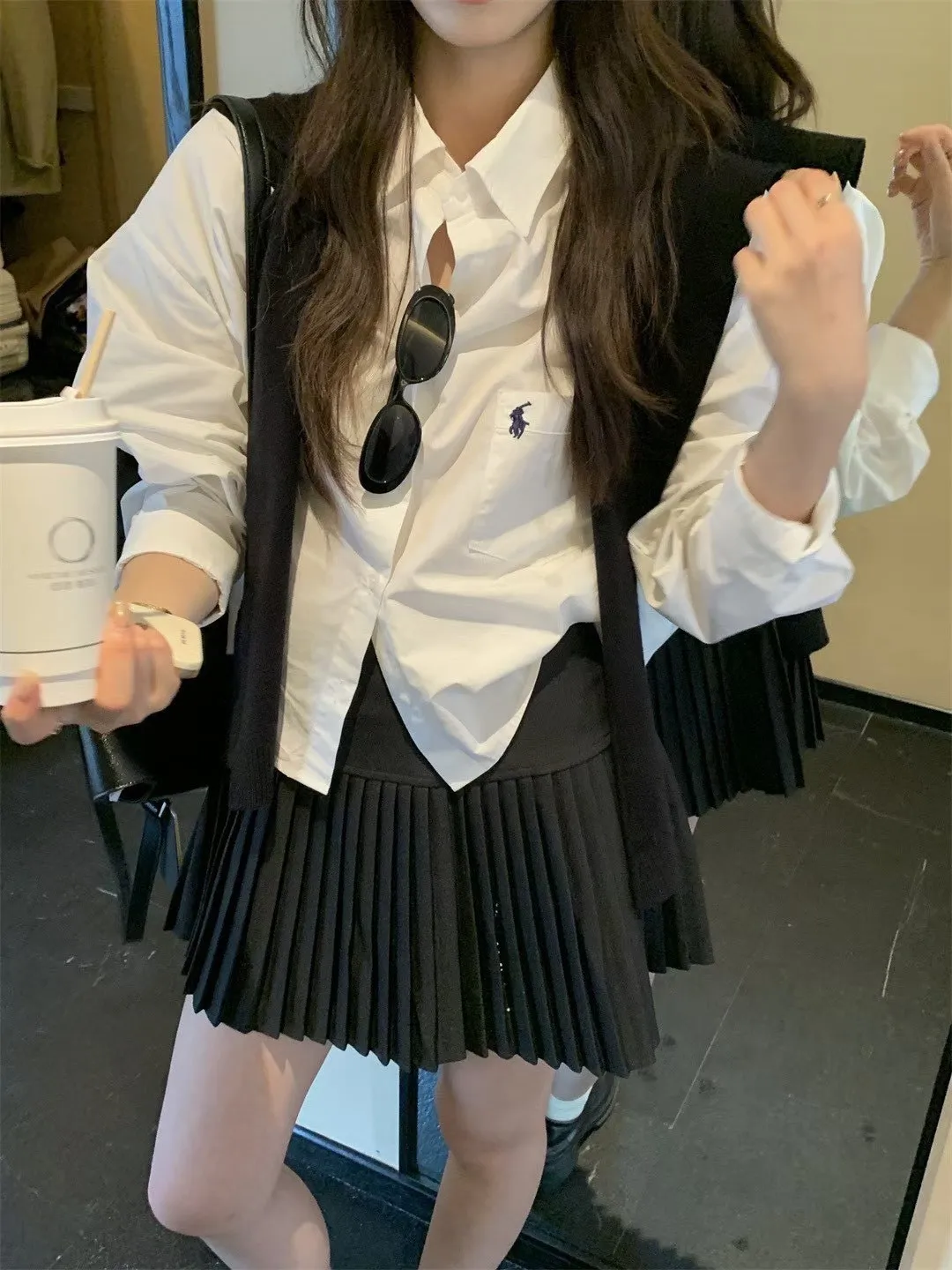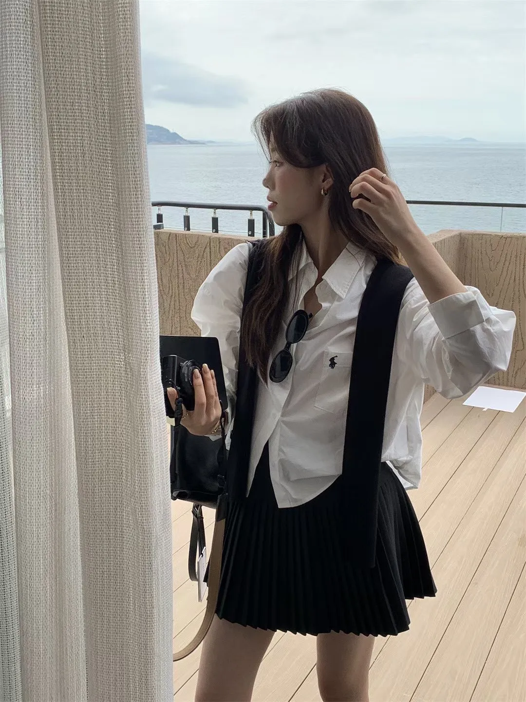 現貨完售不補/正版檸檬家 韓妞減齡刺繡襯衫+披肩套裝