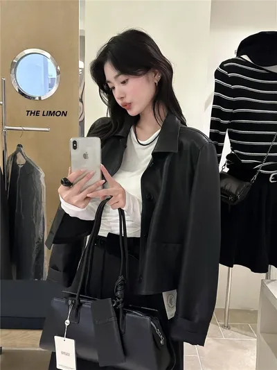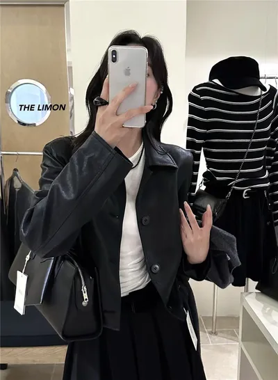 正版檸檬家 外面超多盜版圖片一樣 質感差非常多 請認明親民價 高品質正版商品 這件皮外套真的有點太好搭!簡約款沒有退流行的問題不是那種會讓你壓力很大的厚重款短版設計輕鬆好搭配皮質是偏霧面的,不會反光也不會悶熱有挺度,整體剪裁乾淨俐落,排釦設計,扣起來或打開穿都OK。下擺也不長不短,搭寬褲、牛仔褲、窄裙都能配,而且肩膀線條做得很順,不會讓整個人變壯或笨重黑色真的怎麼搭都不會出錯,氣場直接+100尺寸:胸56/全長51 公分 材質:合成皮革