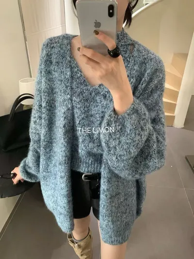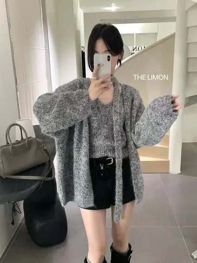 外罩式針織不顯壯,袖子有垂墜感