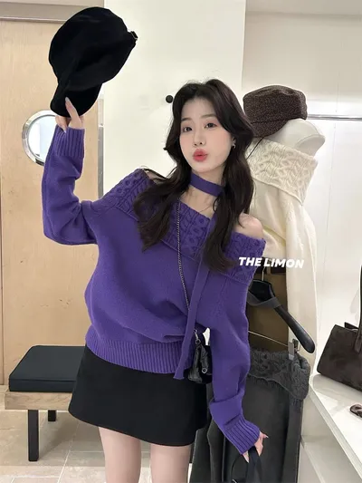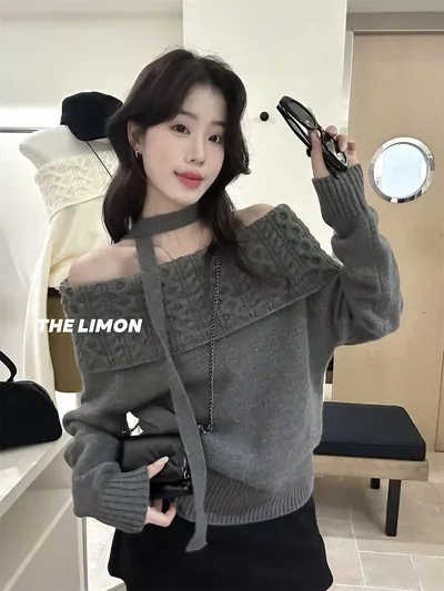 正版檸檬家 外面超多盜版圖片一樣 質感差非常多 請認明親民價 高品質正版商品 有點小性感、有點慵懶,還多一點氣質,是近期穿搭裡比較特別但又不難駕馭的單品搭件牛仔褲、長裙、靴子都很好看,同色飄帶,綁法自由,超加分一字肩設計剛剛好,不會過低,露鎖骨很有女人味麻花針織織紋立體設計 很美!北極絨針織,親膚不刺 不會厚重長度是可以自然蓋住腰線的,放出來 or 紮進去都可以▫️紫色:飽和的葡萄紫,冷冷的天氣裡很吸睛,但不高調▫️米杏:溫柔的奶杏色,配深色褲裙超有層次▫️芥末綠:帶點復古味道的低飽和綠,穿起來特別顯白▫️灰色:霧感灰穿起來文藝又耐看,很適合通勤風▫️黑色:必收色,露肩+麻花細節在黑色上格外明顯,帥又美 材質:針織