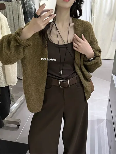 正版檸檬家 外面超多盜版圖片一樣 質感差非常多 請認明親民價 高品質正版商品 版型是微寬鬆的落肩設計,穿起來有點慵懶、有點可愛,拉鍊開了是隨性,拉上是整齊俐落,裡面搭T恤或薄毛衣都很好搭不會太長的長度,讓身形比例不會被吃掉,小個子也能駕馭▫️芥末綠 復古感滿滿的低飽和色,特別又不難搭▫️奶杏 柔柔奶感,很有溫度的基本色▫️橘色 元氣感十足,膚色立刻提亮一階▫️紫色 霧感紫,顯白又不會太甜▫️花灰 帶些紋理變化的灰色,低調但不無聊▫️咖啡 濃郁經典,很適合冷天氣的沉穩氛圍▫️黑色百搭耐看,是衣櫃必備安心色尺寸:胸58 /全長62 公分 材質:針織