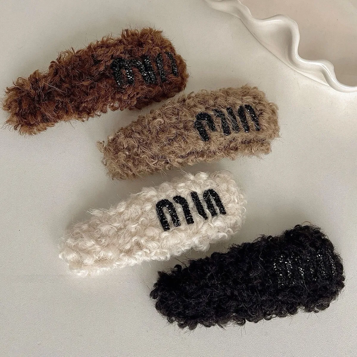 東大門爆款🔥碎鑽字母羊羔毛BB夾 (混色3入組)