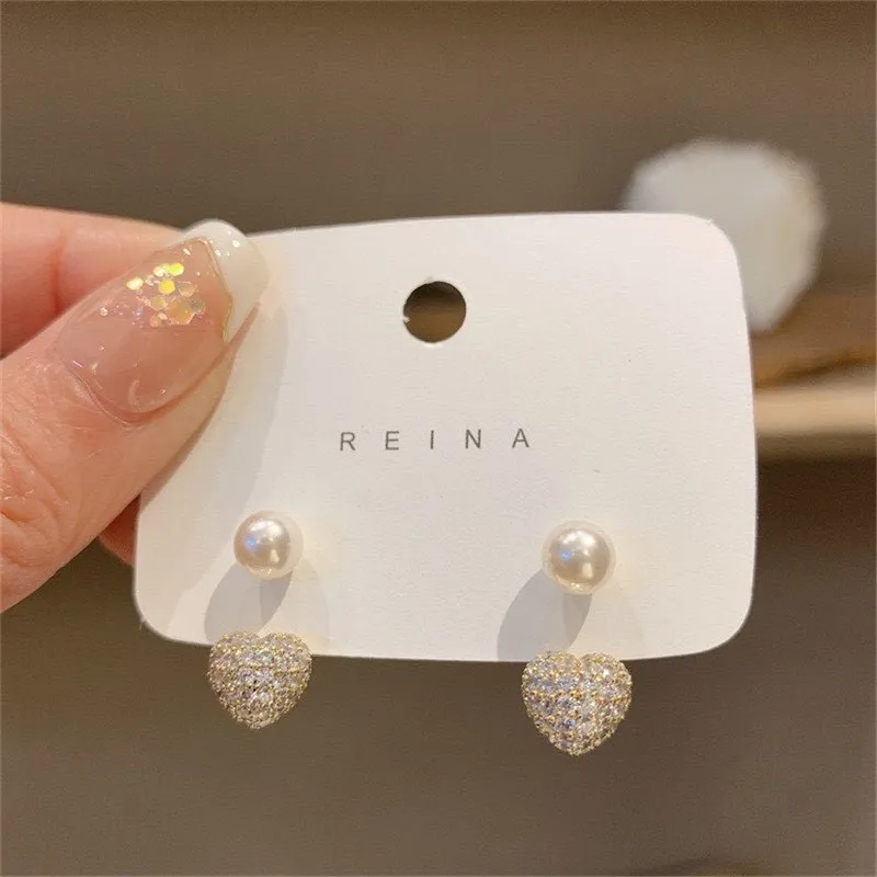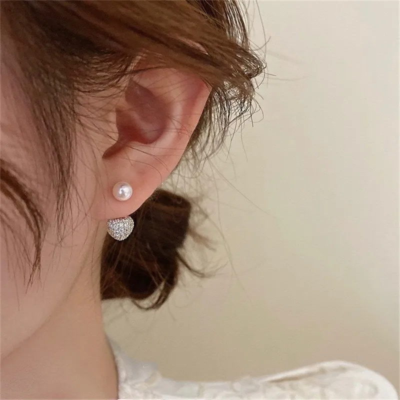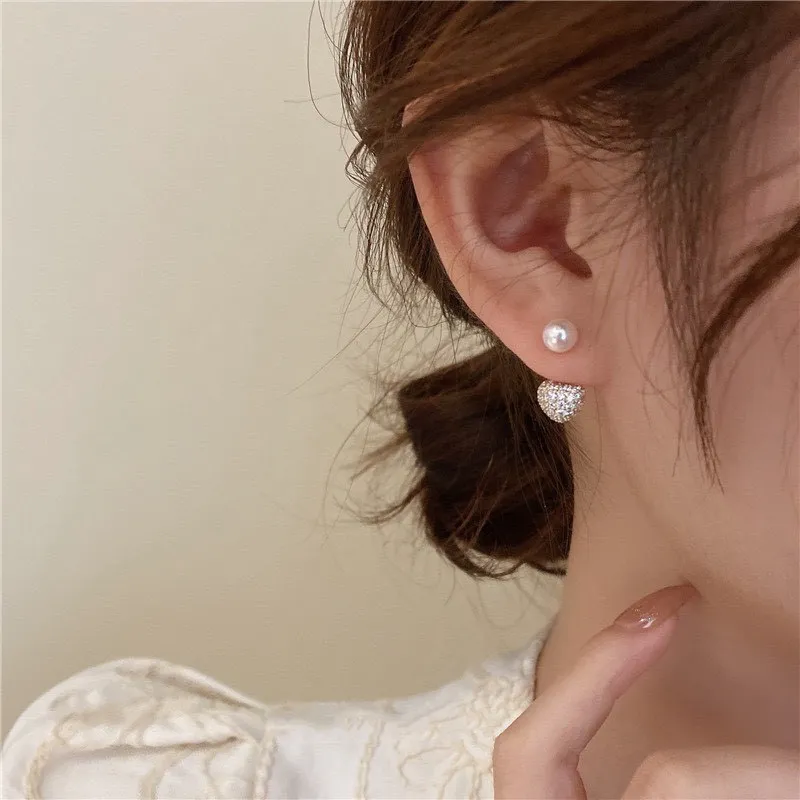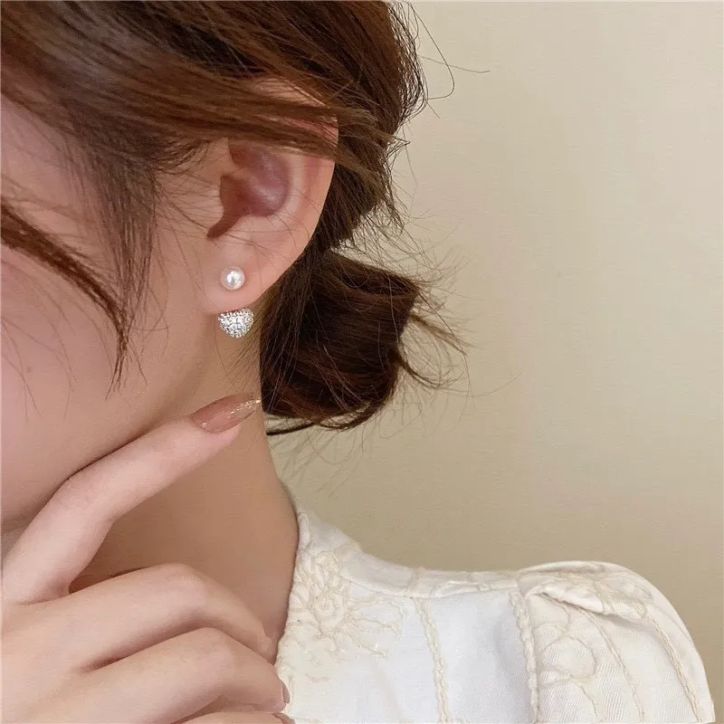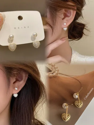 低調中帶著精緻光澤的一款~上半顆珍珠柔和氣質,下半愛心滿鑽設計微微閃爍,在陽光或燈光下都超吸睛✨整體造型精緻小巧,不挑臉型、不挑穿搭,日常、上班、約會都能戴出小女人感💕材質:925銀針+合金+人造珍珠+鑽飾