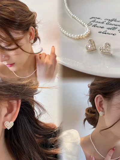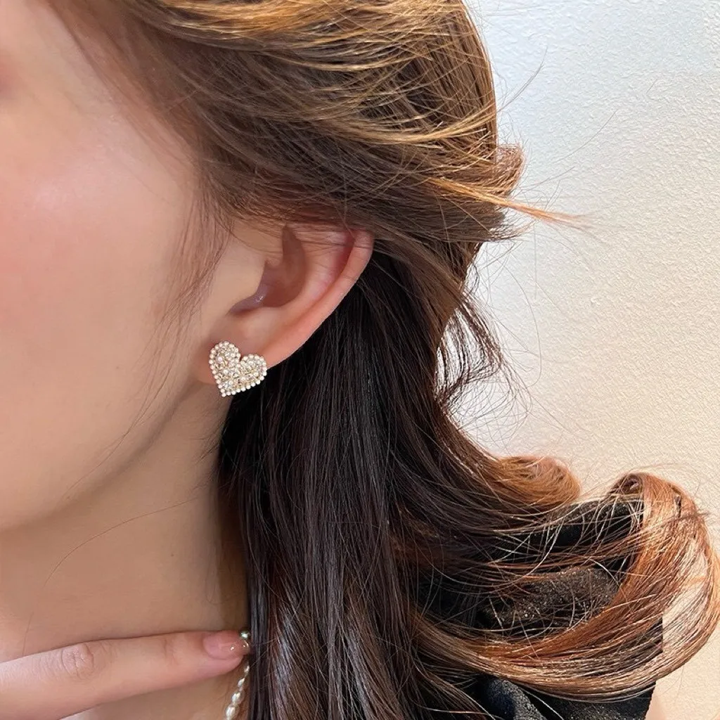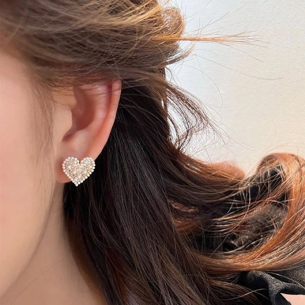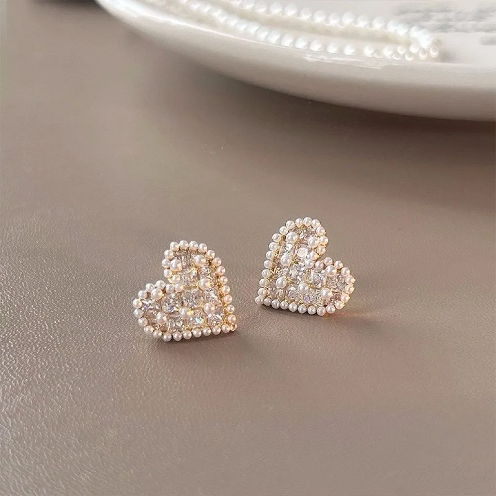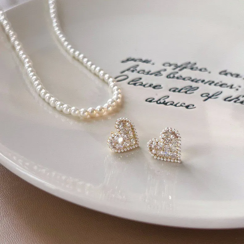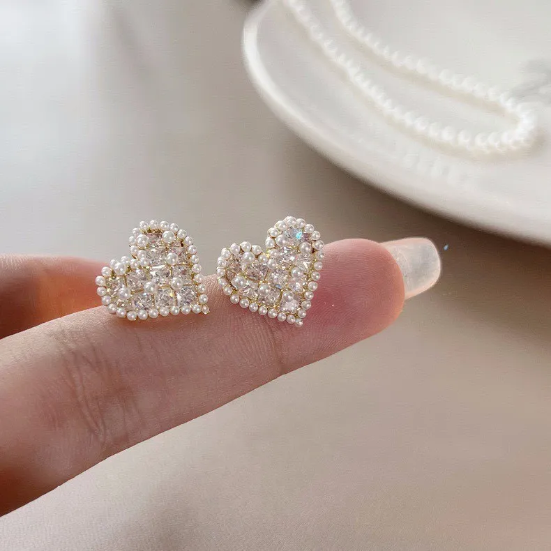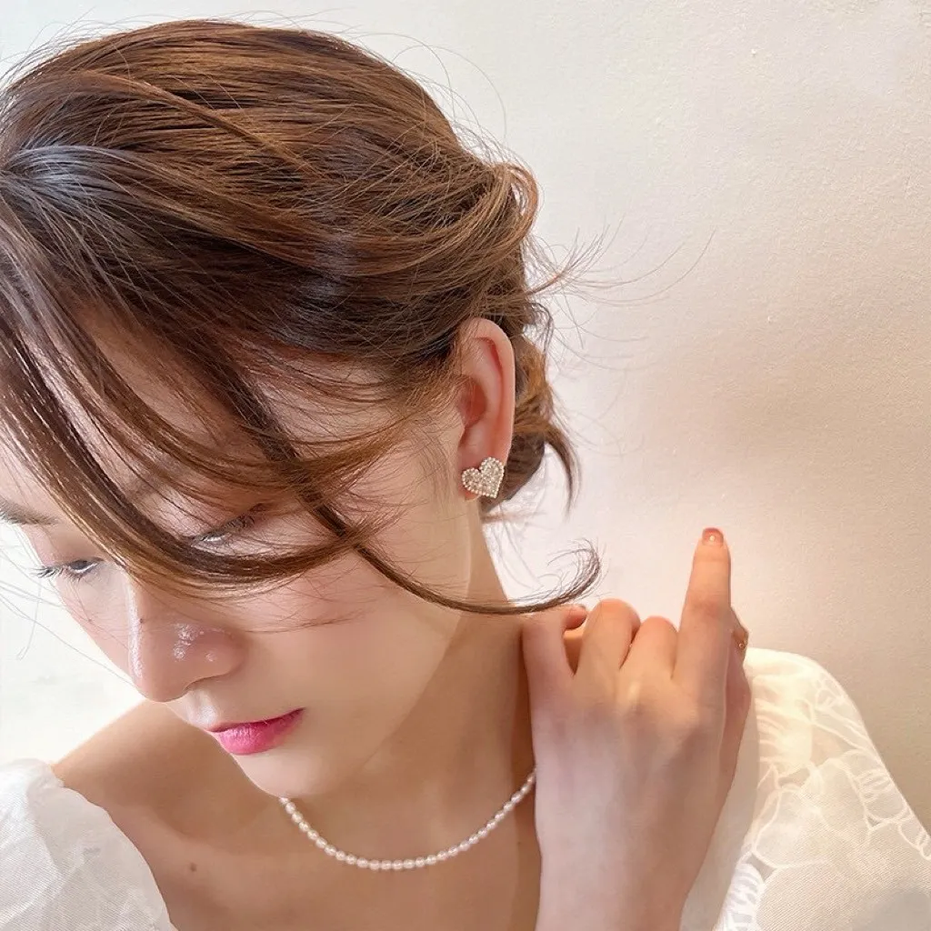 韓國製🤍925銀針 細閃珍珠愛心耳環