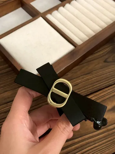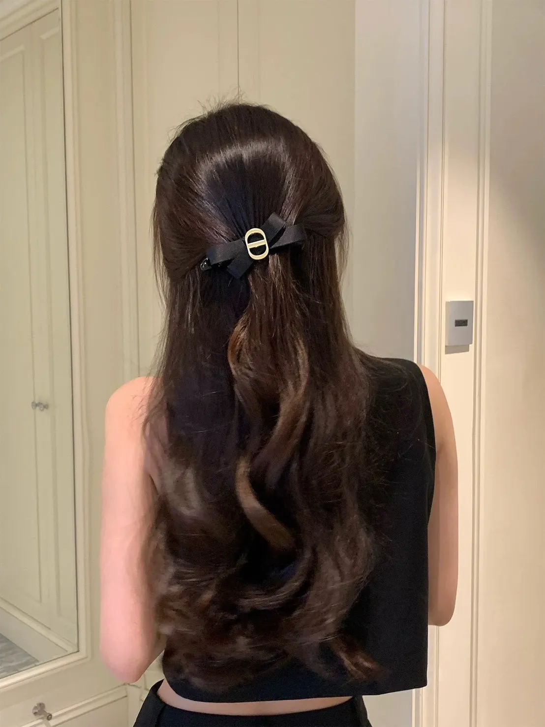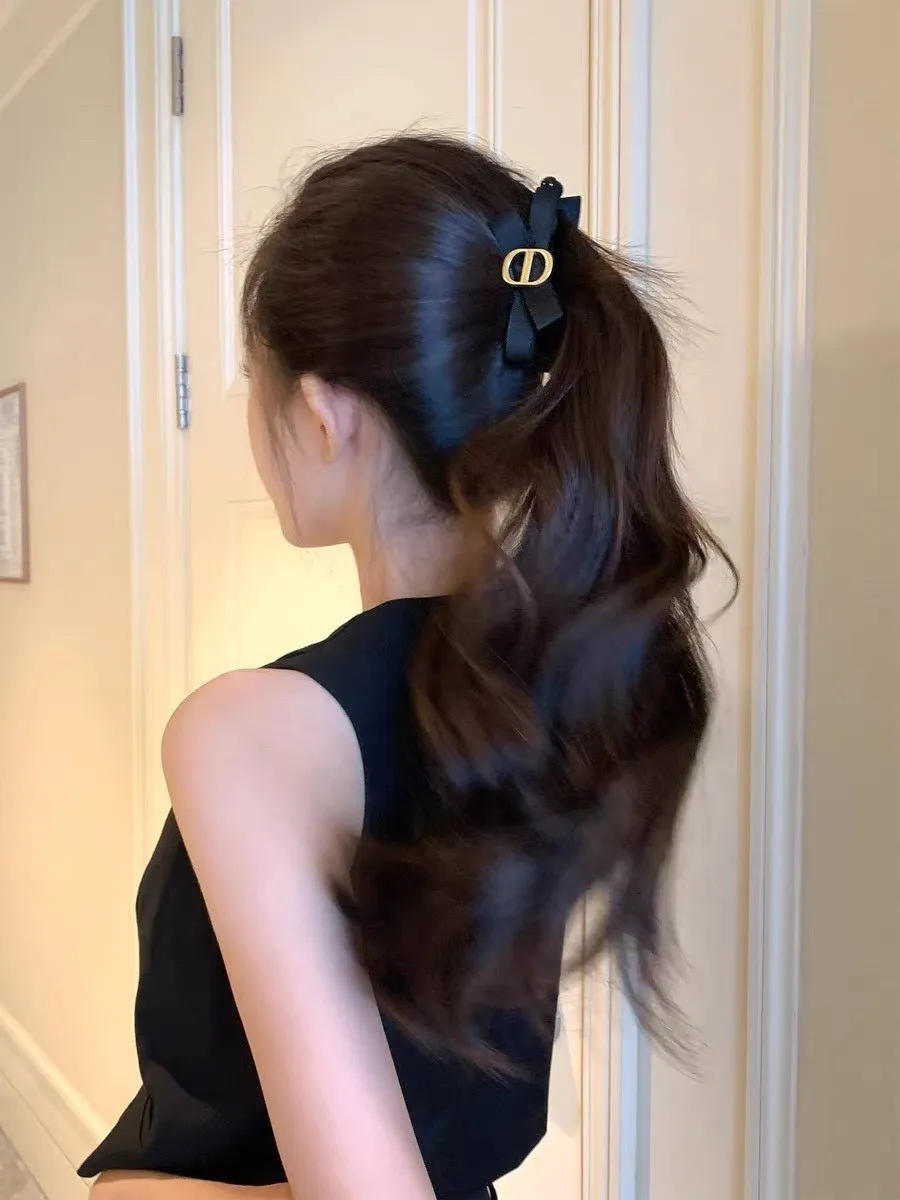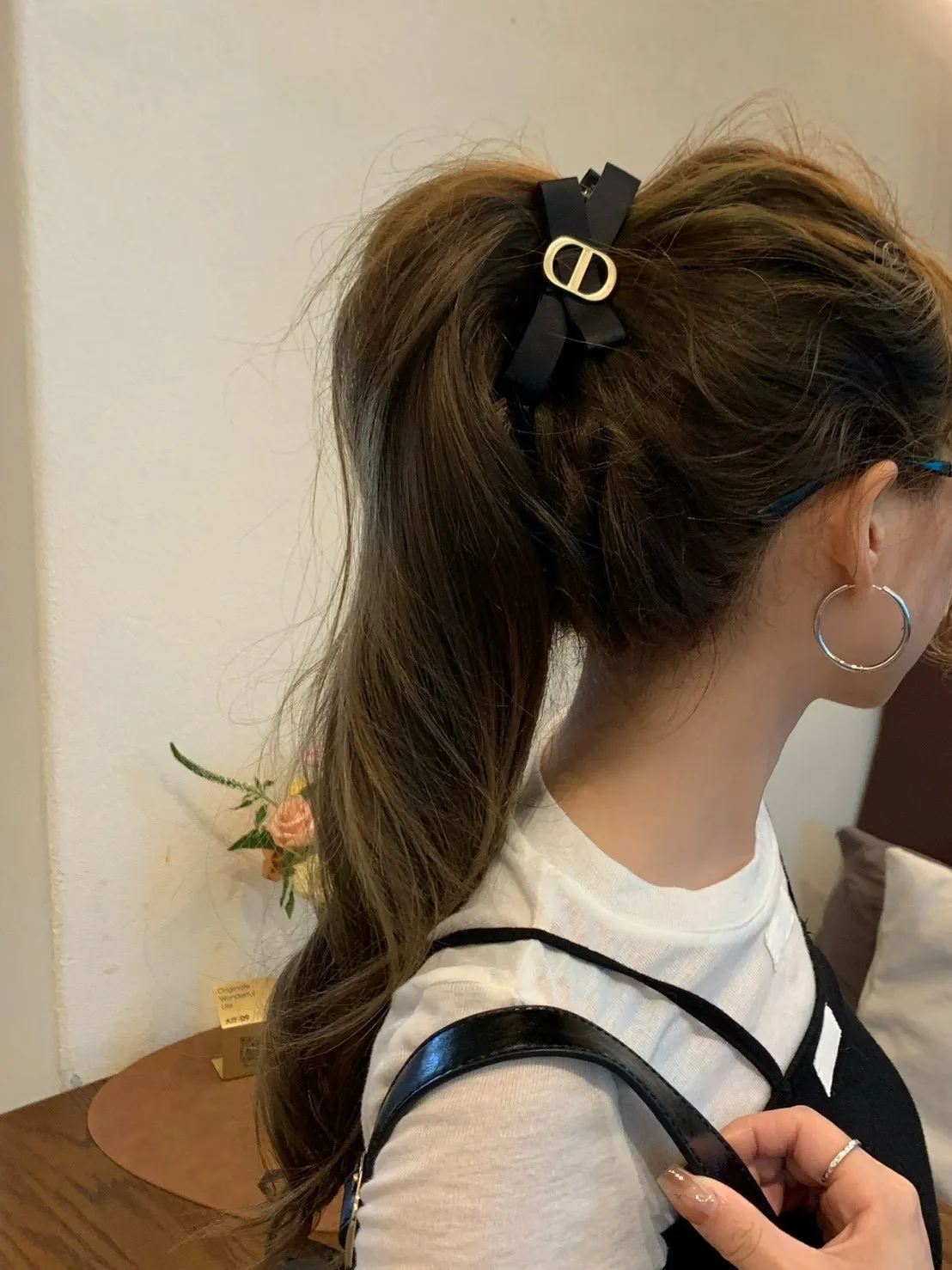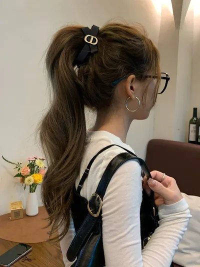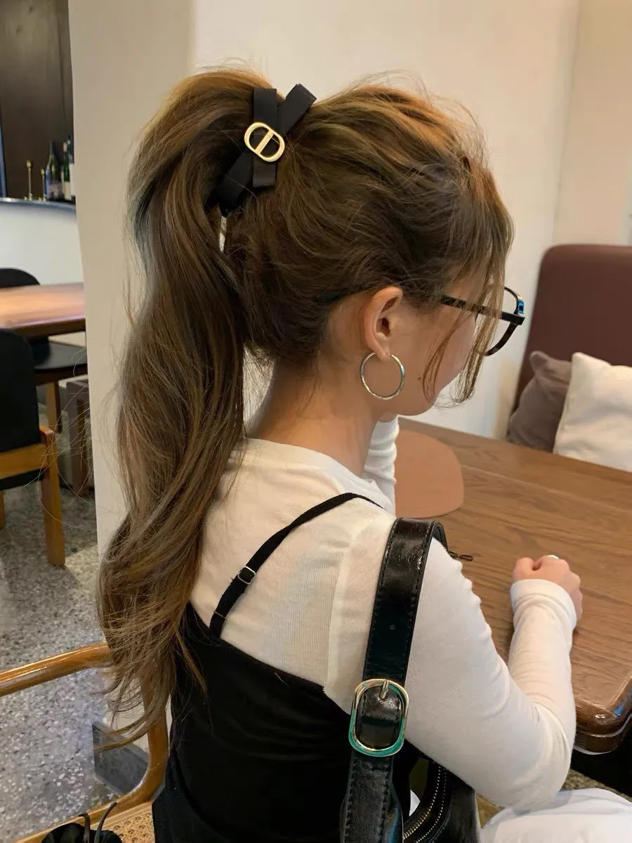 低調中的高級感 ✨ 緞帶層疊成立體蝴蝶結, 中間以金屬釦點綴,襯出俐落與氣質 無論綁高馬尾、低馬尾、或半束髮, 都能自然提升精緻度💫 ・尺寸 約 長9.5 × 寬3.5 cm ・材質 韓國布藝+合金+亞克力