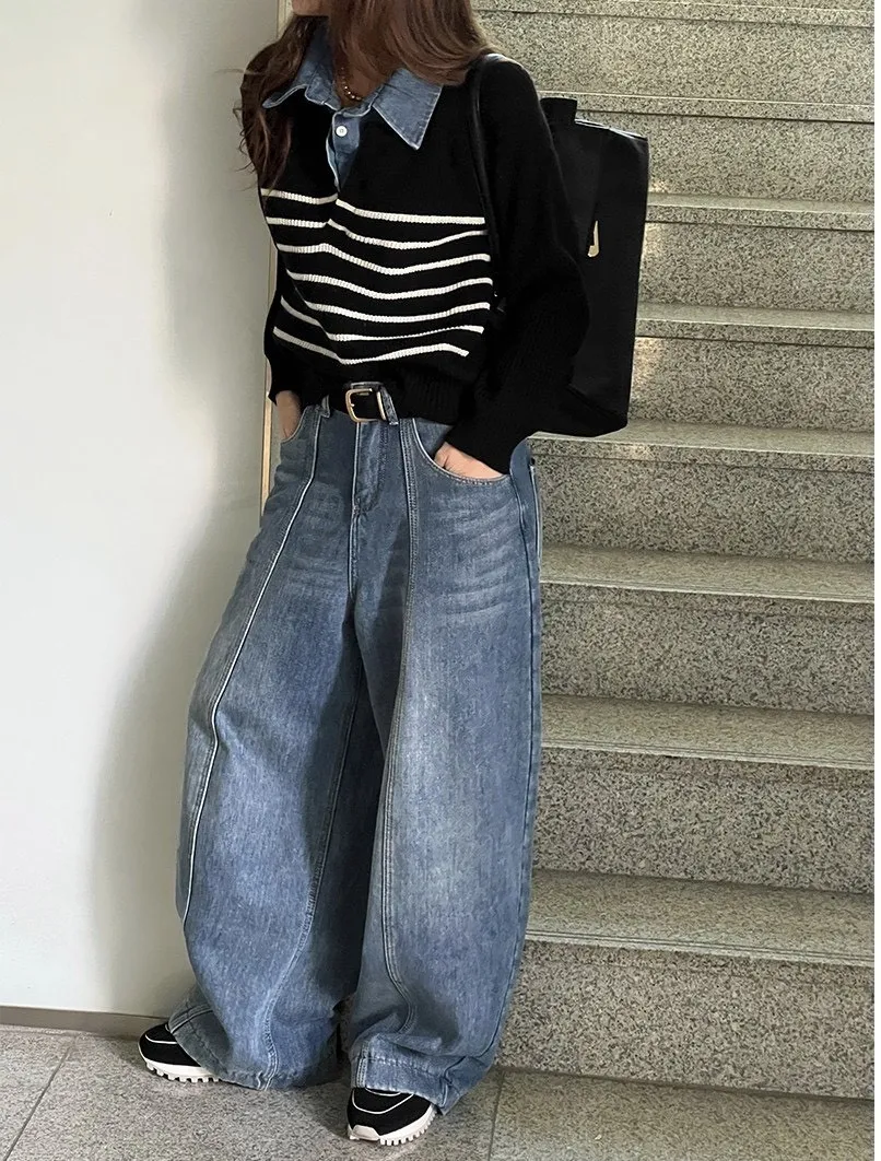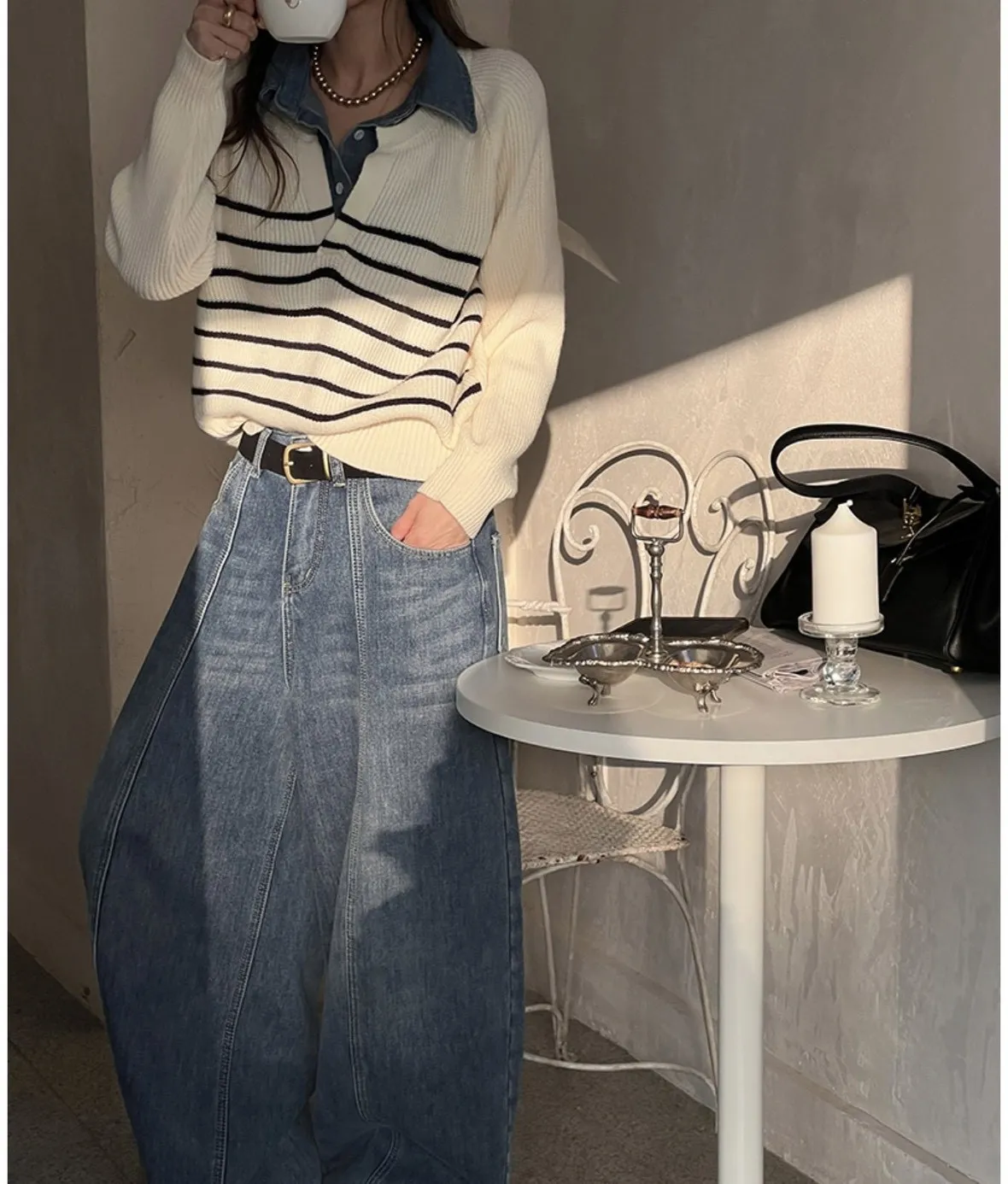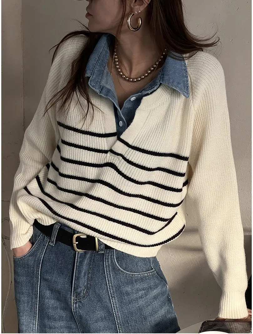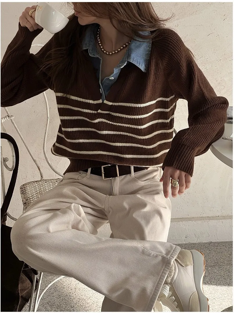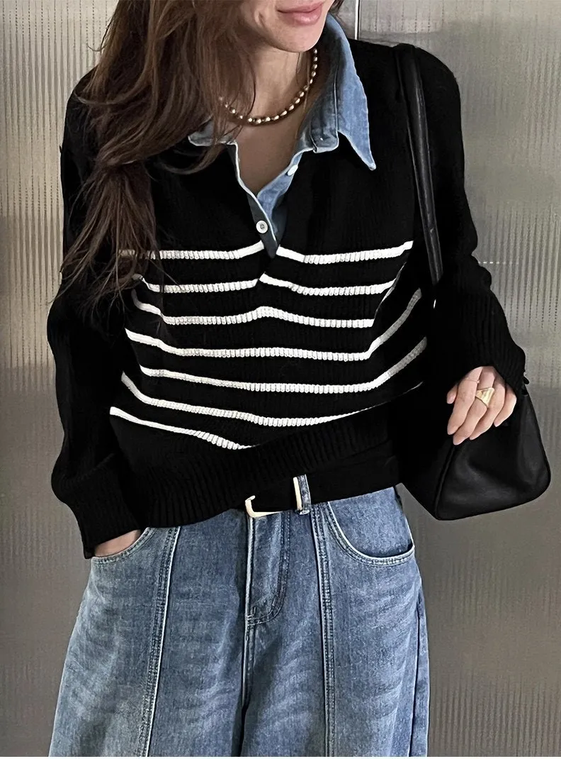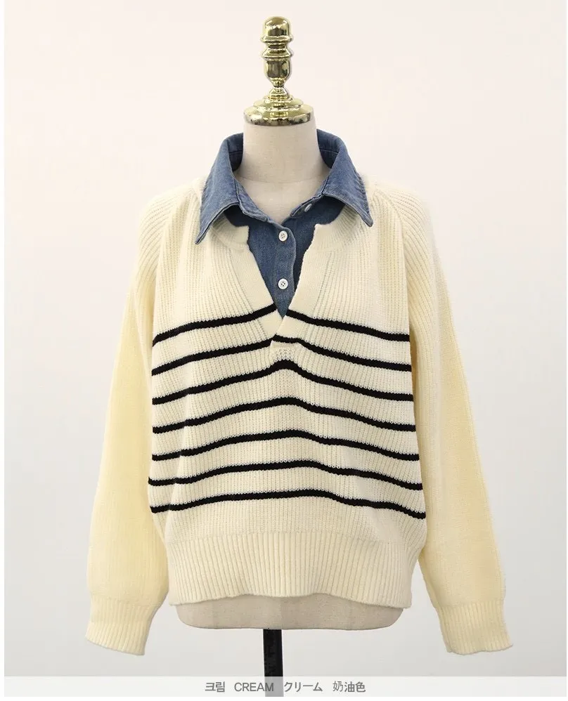 一秒穿出層次感! 冬天最怕搭配麻煩?這件直接幫你! 假兩件 設計毛衣 把層次與溫度一次穿上身 這件是會越穿越喜歡的那種 我自己是兩色咖/白都有留~ 最耐看的永遠是這種剛剛好的單品放到明年還是會拿出來穿 像襯衫又是毛衣、休閒卻很有質感怎麼穿都好看,是「冬天上班穿搭救星」!!! ✔️柔軟針織:溫柔又不挑膚色 ✔️條紋簡約耐看:日常穿也不會膩 ✔️牛仔領造型:層次感直接兩倍 尺寸胸寬54/ 全長63 公分