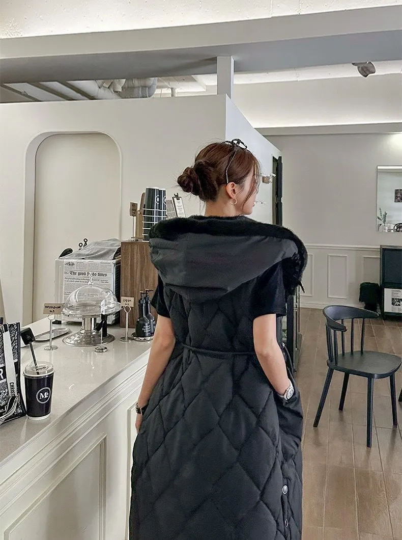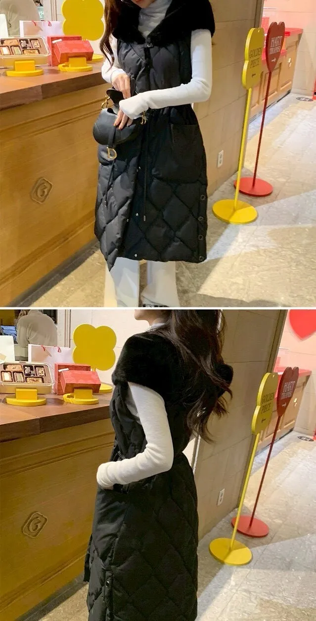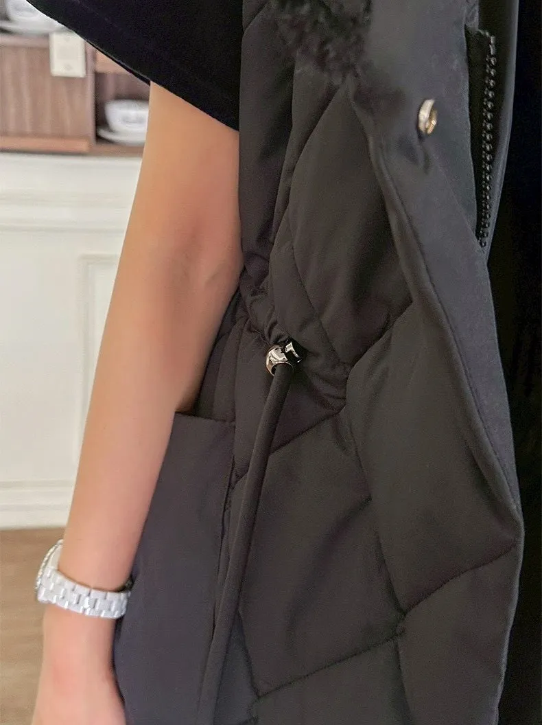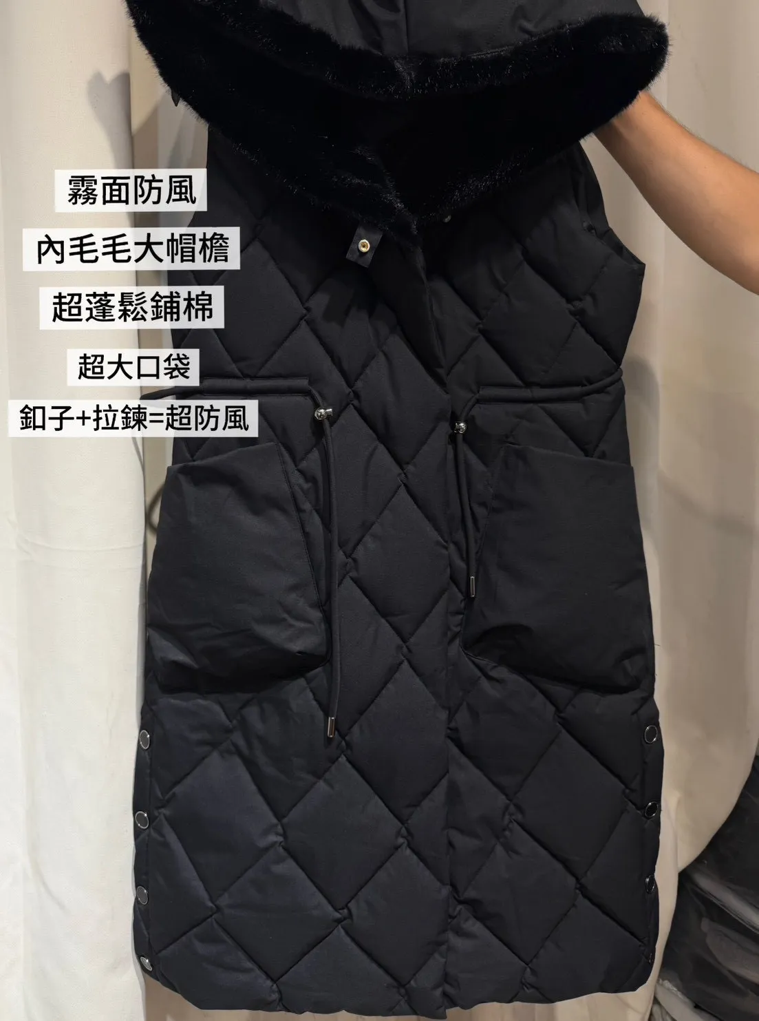 市面上難得見到的款式背心也能穿出高級感 那就是這件了跟以前我們常見的鋪棉類型背心不太ㄧ樣這款的長度做得很漂亮之外帽子的蓬柔內層大毛領也非常柔順有高級感 極簡大方設計!細節超全面有保暖很輕薄不會臃腫 這款菱格車線舖棉背心絕對是衣櫃裡的MVP!裡面真的隨便穿都好看 菱格車線設計簡約大方有設計!耐看又有質感! 不厚重,穿上就像披了件溫暖的雲朵,活動自如超舒適 版型不挑人!都能完美修飾身形 這件背心是最佳選擇!!! 大口袋+鈕釦+抽繩細節,出門手套、口罩、鑰匙塞一下剛好,散步、通勤、下樓買咖啡不用再帶包尺寸:肩43、胸53、臀58、長105cm