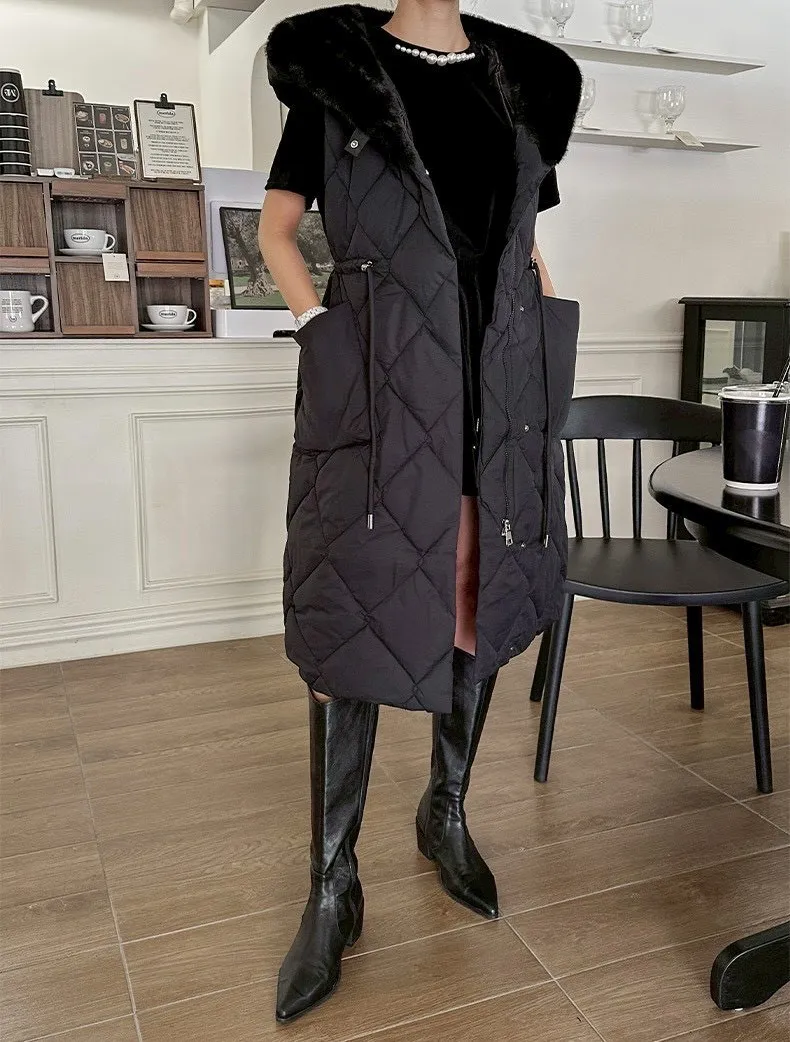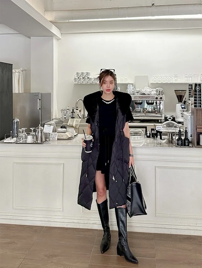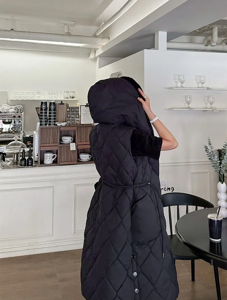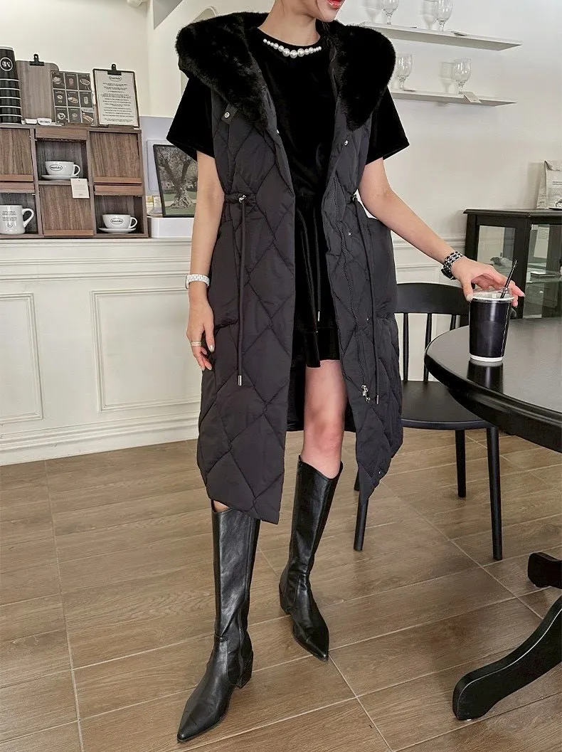 市面上難得見到的款式背心也能穿出高級感 那就是這件了跟以前我們常見的鋪棉類型背心不太ㄧ樣這款的長度做得很漂亮之外帽子的蓬柔內層大毛領也非常柔順有高級感 極簡大方設計!細節超全面有保暖很輕薄不會臃腫 這款菱格車線舖棉背心絕對是衣櫃裡的MVP!裡面真的隨便穿都好看 菱格車線設計簡約大方有設計!耐看又有質感! 不厚重,穿上就像披了件溫暖的雲朵,活動自如超舒適 版型不挑人!都能完美修飾身形 這件背心是最佳選擇!!! 大口袋+鈕釦+抽繩細節,出門手套、口罩、鑰匙塞一下剛好,散步、通勤、下樓買咖啡不用再帶包尺寸:肩43、胸53、臀58、長105cm