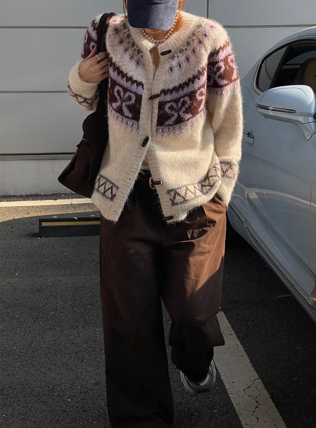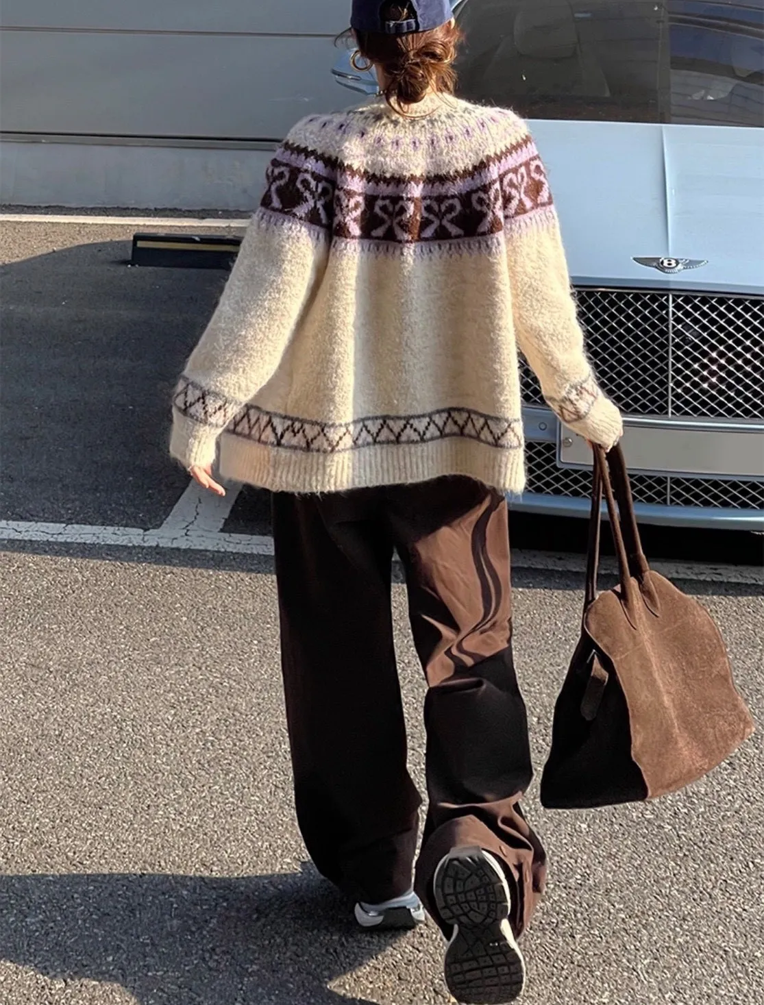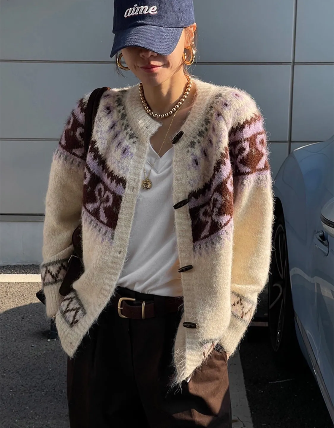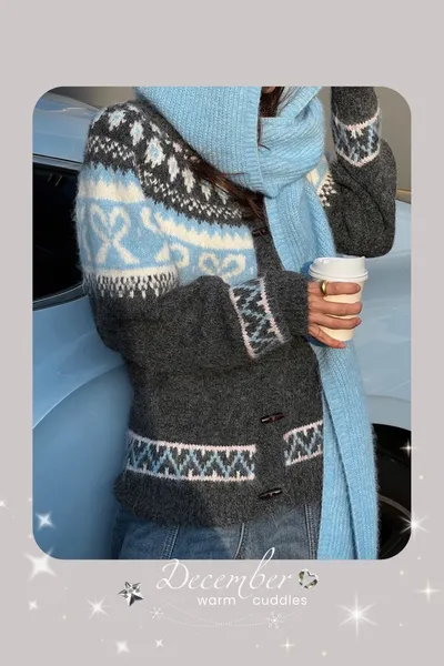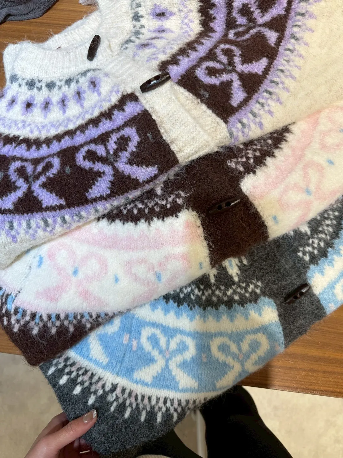 整件充滿復古氣息,隨便一披就有韓系女孩的冬季氛圍感 版型是寬鬆落肩設計,穿起來不挑身形又顯瘦,👉冬季想穿得有層次、有記憶點,直接選它民族風蝴蝶結編織真的很顯質感柔軟混毛面料保暖不刺膚,單穿或當外套都很有造型感 厚實針織花紋布料,保暖有份量 可開扣設計,造型與實穿兼具 寬鬆落肩剪裁,修飾肩線不挑人 復古花紋細節,冬季穿搭亮點 尺寸:胸55、長58cm