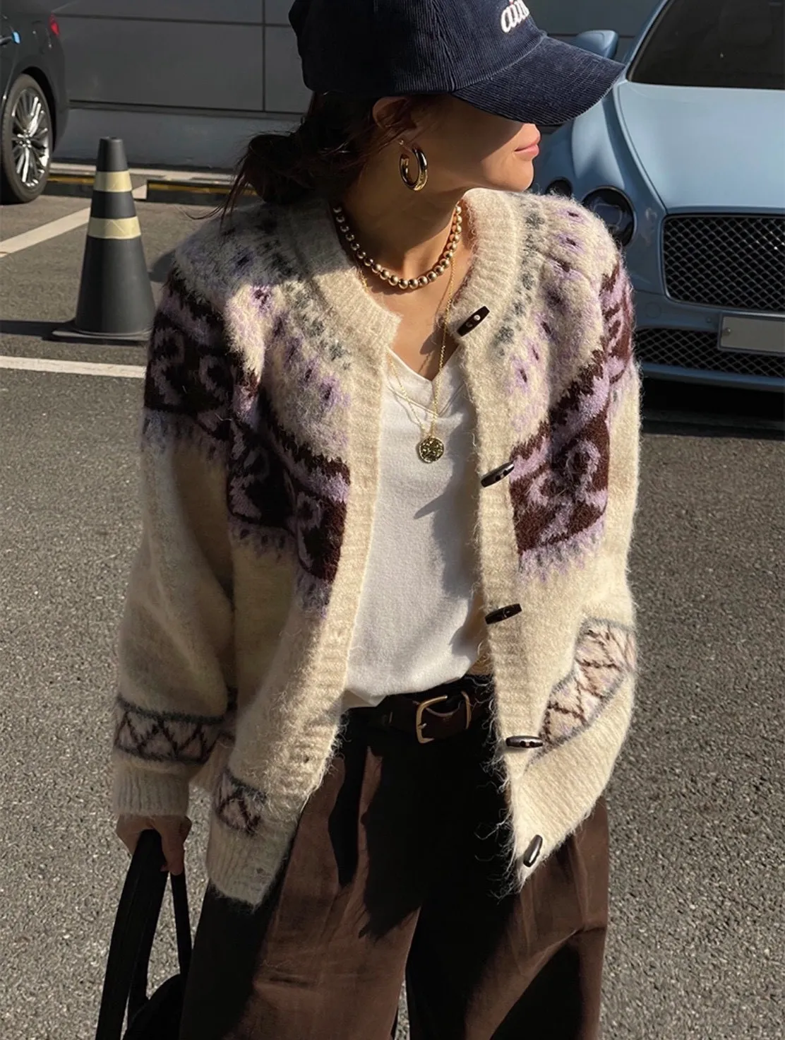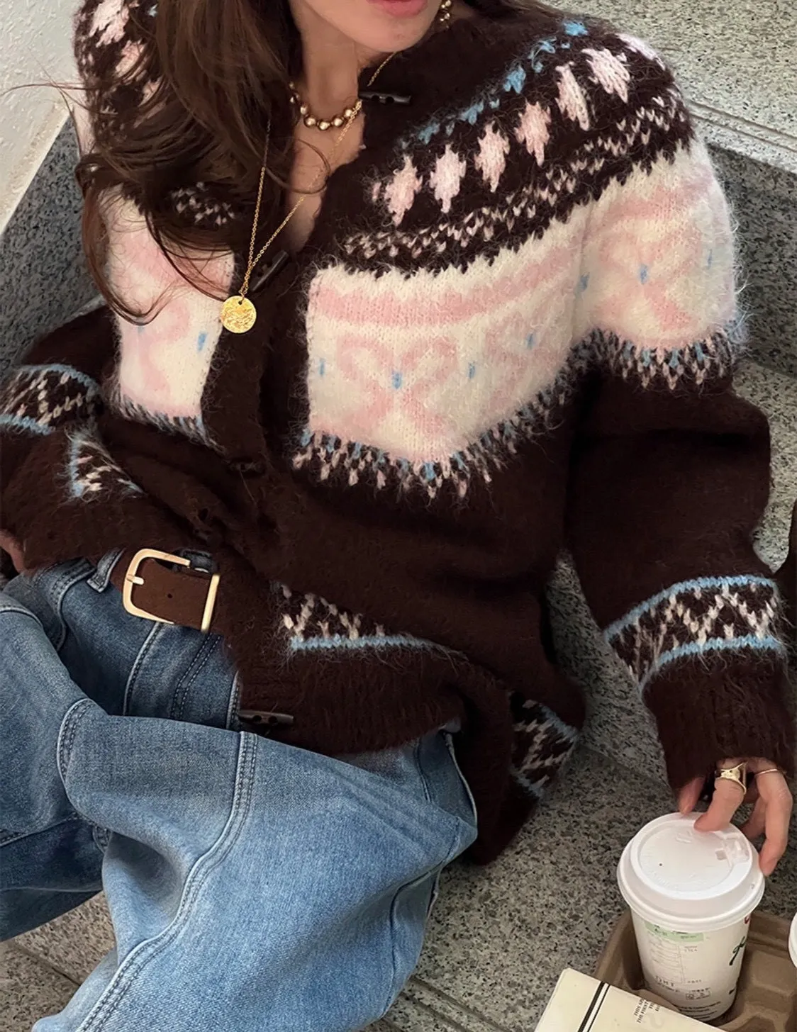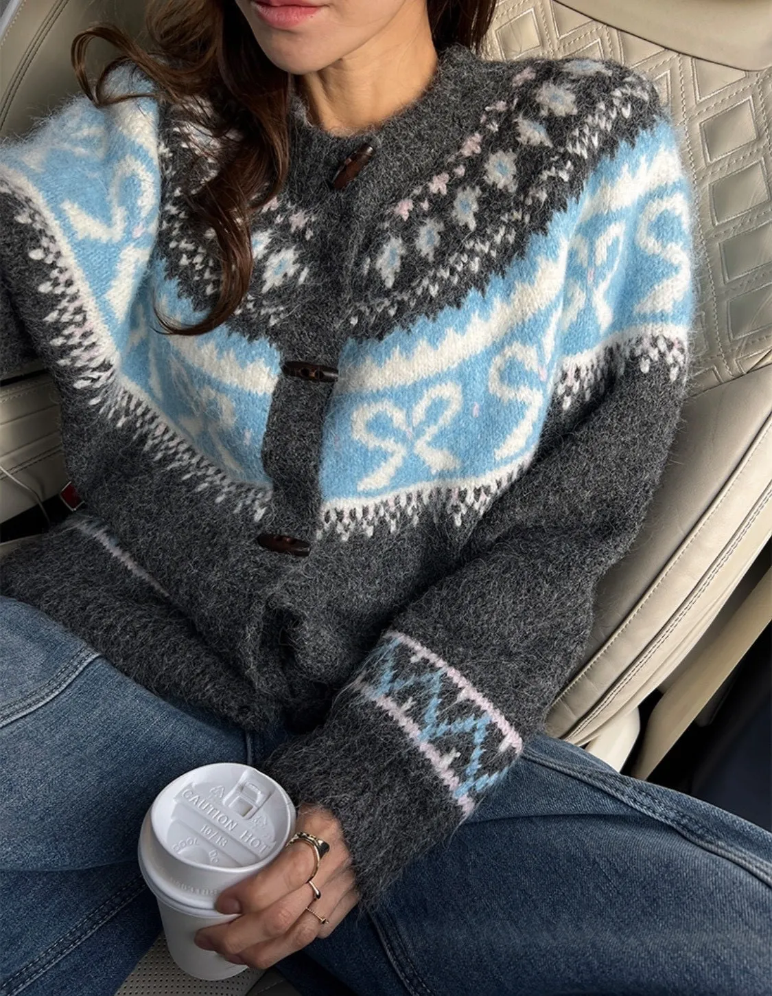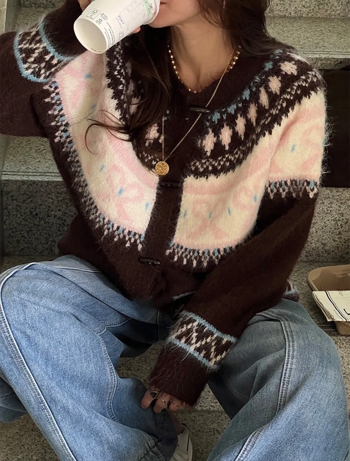 整件充滿復古氣息,隨便一披就有韓系女孩的冬季氛圍感 版型是寬鬆落肩設計,穿起來不挑身形又顯瘦,👉冬季想穿得有層次、有記憶點,直接選它民族風蝴蝶結編織真的很顯質感柔軟混毛面料保暖不刺膚,單穿或當外套都很有造型感 厚實針織花紋布料,保暖有份量 可開扣設計,造型與實穿兼具 寬鬆落肩剪裁,修飾肩線不挑人 復古花紋細節,冬季穿搭亮點 尺寸:胸55、長58cm