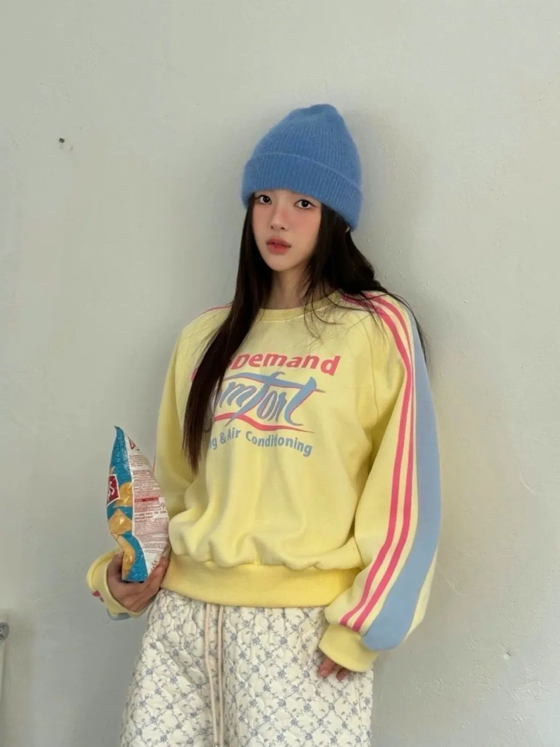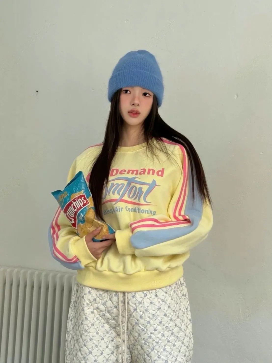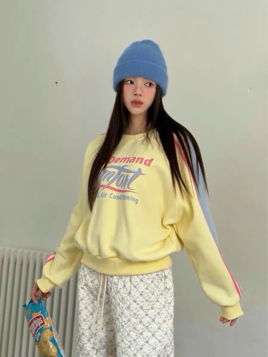 字母撞色的細節設計也太吸睛!韓國知名店家出品這款歐膩說賣到翻掉市場上要找到這麼可愛的配色真的不容易 oversize版型寬鬆很舒服厚磅棉質非常舒服又有質感 直接配內搭褲或緊身褲就能出門 修身又不用擔心顯胖,輕鬆穿出隨性休閒風~秋冬不想穿得太暗調 這款請一定要帶回家!!!換換色系增添好心情💛尺寸:胸70、長60cm