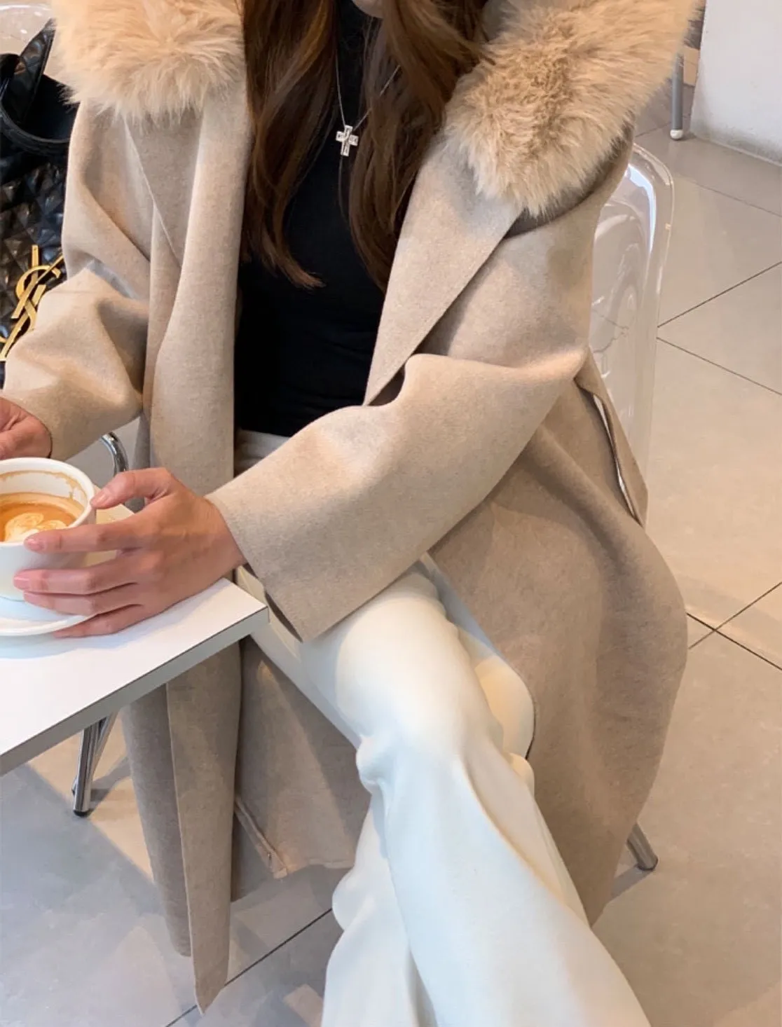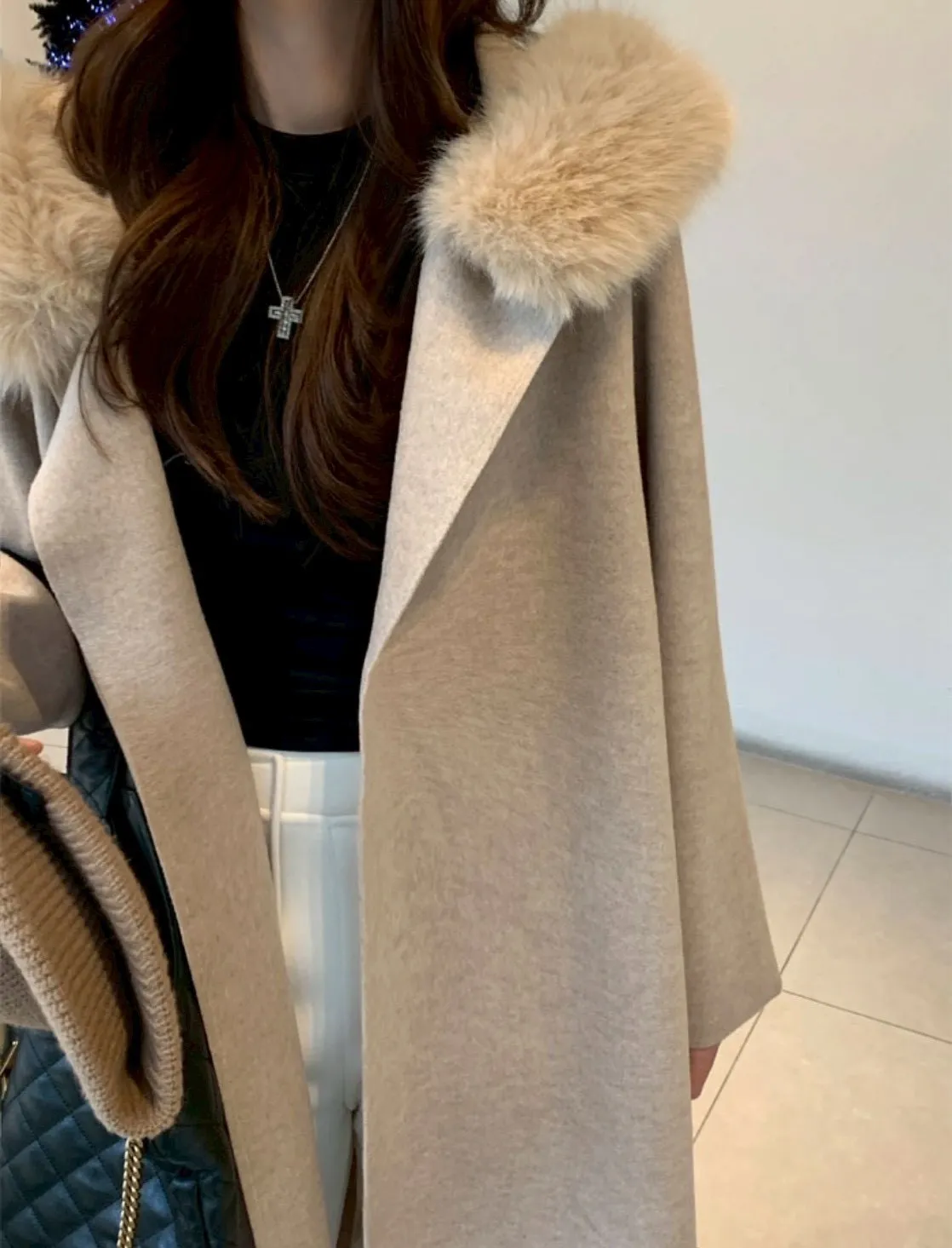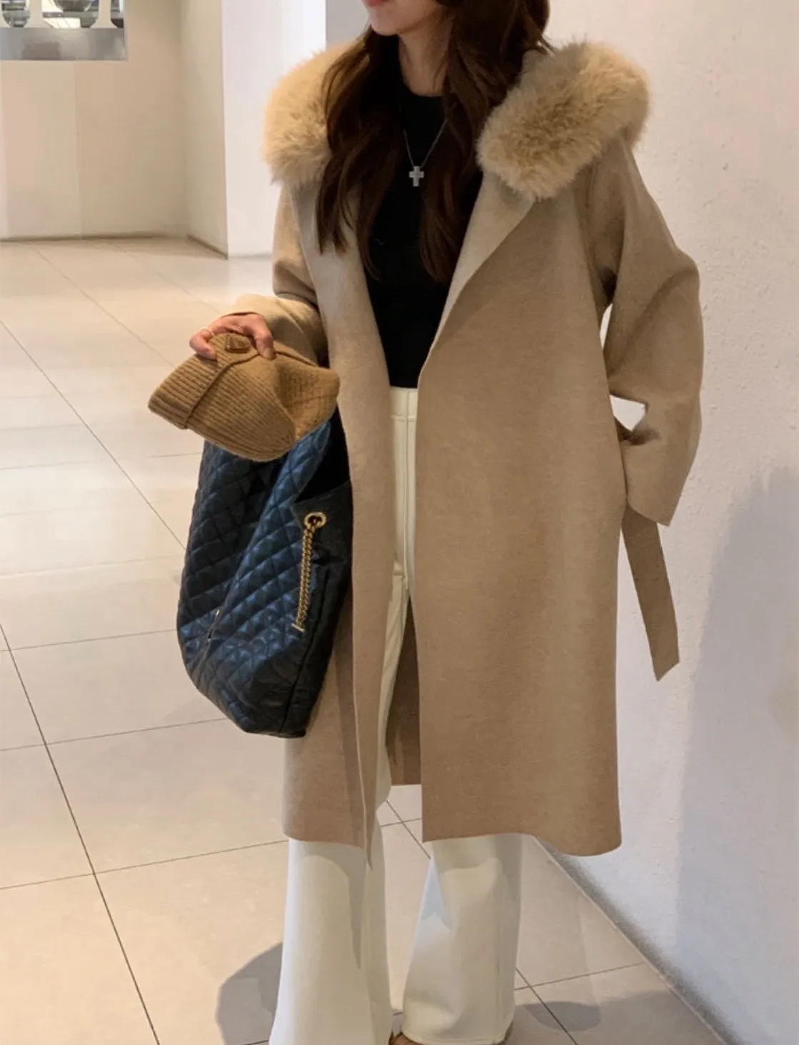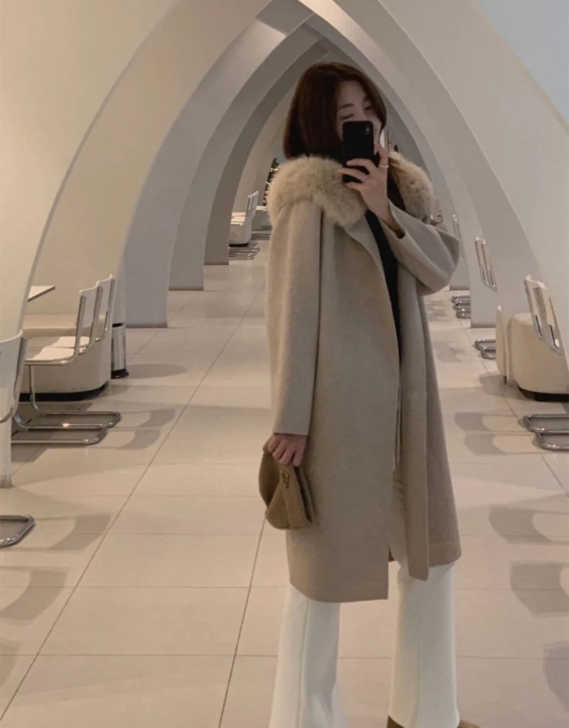 秋冬必備的單品!不用修圖也高級 # 我就是氣場✨肩線流暢、線條俐落、版型不挑身形讓你穿出保暖與時尚兼具的高級感開襟設計一穿上立刻有被包覆的安心感! 它的拼接毛毛帽子造型,更是設計的一大亮點! 冬天最怕的是風嗖嗖地吹, 有帽子讓你不用另外戴帽子就能防風保暖 ✨ 四個顏色都能穿出完全不同的氣質• Black 壓場級的冷淡名媛• Gray 低調奢雅的都會感• Beige 溫柔又貴氣的日常百搭• Ivory奶油般的乾淨氣場,巨顯氣質✨ 暖、挺、耐看不是厚重的負擔,而是一件有「存在感」的外套 細膩的絨面觸感,摸起來就很舒服 視覺上更是充滿了時髦 📸 隨便套一條牛仔窄褲再加一雙靴子 就是最愛的簡約時髦LOOK! 版型長版的剪裁非常修飾身形 不管你是小隻女還是高挑女生,都能穿出一種高級又俐落的感覺 簡約輪廓柔和,怎麼搭都不容易出錯! 不只適合日常穿搭,稍微正式一點的場合也完全Hold得住~ 搭配任何內搭單品都毫無壓力,隨便披上都能瞬間變身街拍女主角! 有口袋/一體成型沒內裏/毛領可拆尺寸:開禁版型,肩45、胸55、長105cm