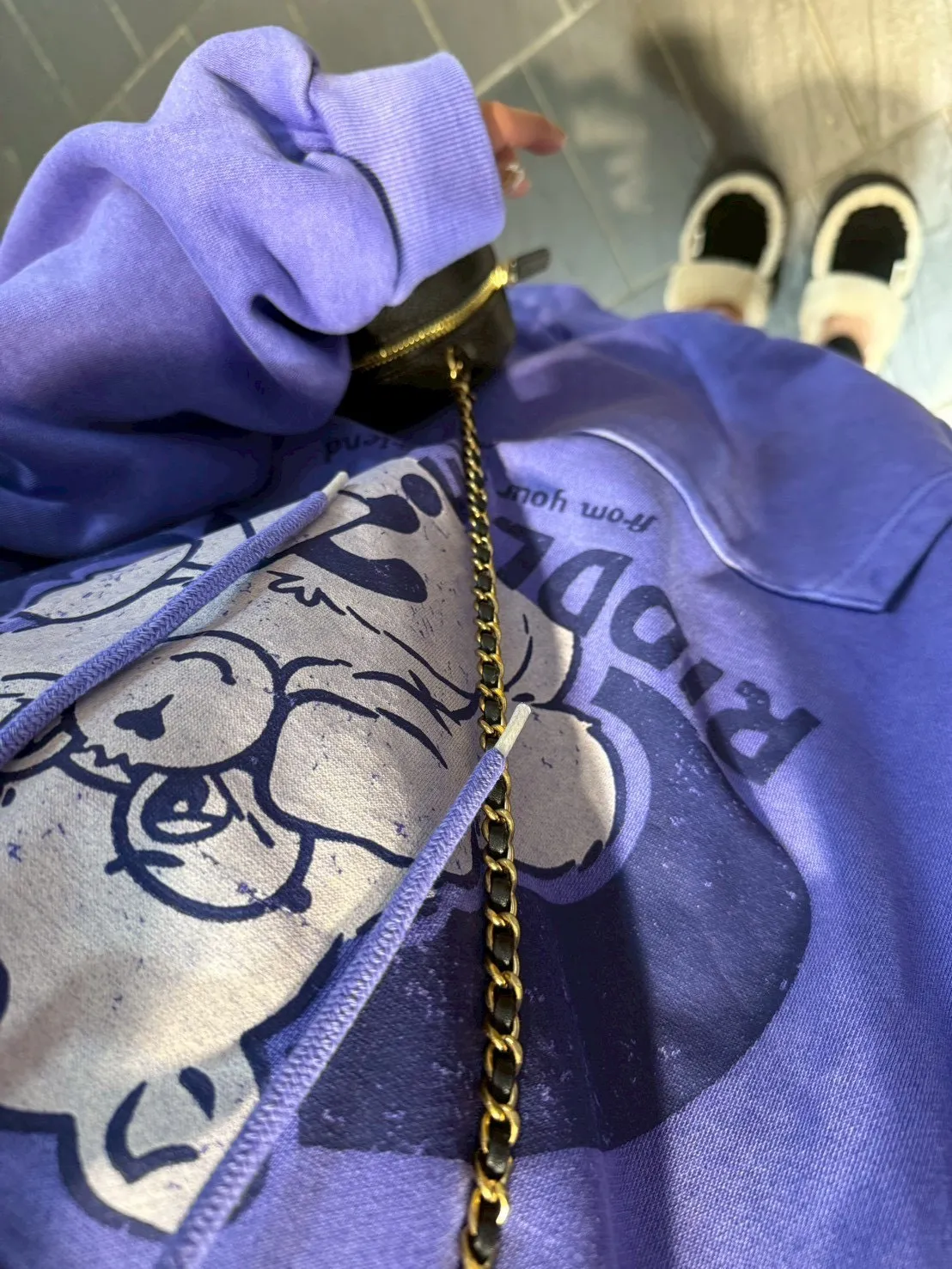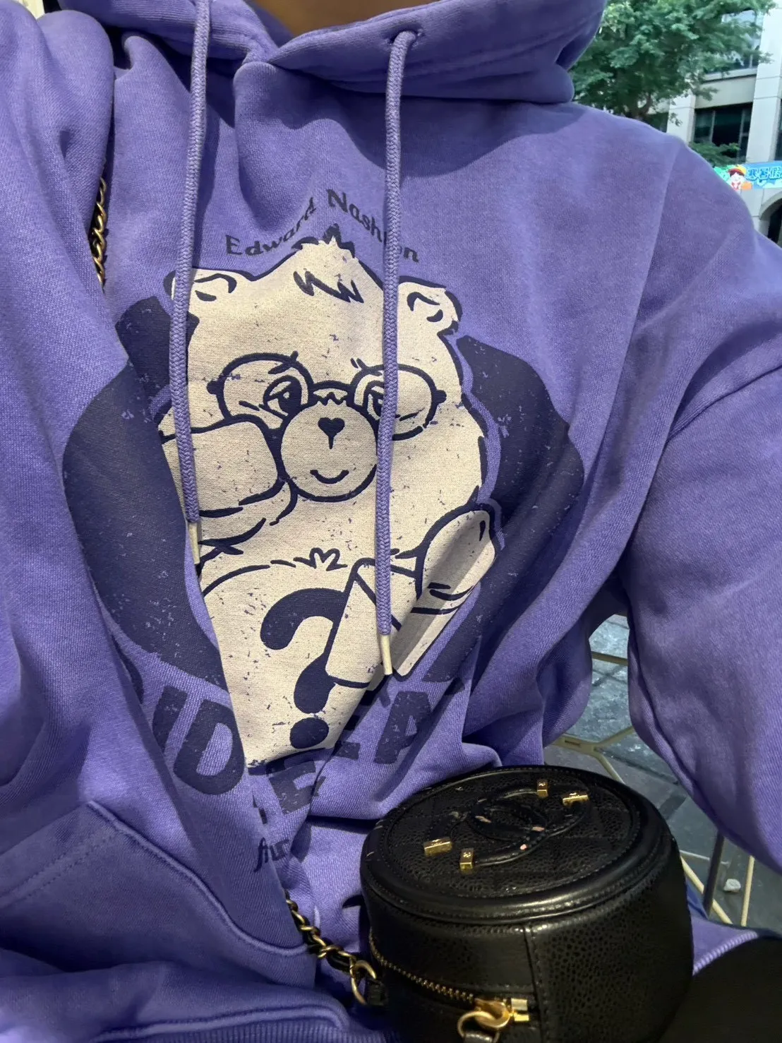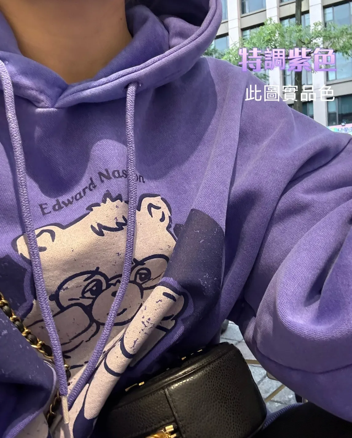 男女可穿特殊水洗的舊感色調眼鏡小熊靦腆地掛在胸前完全超級可愛又耐看!不是那種刻意賣萌的寬鬆長版設計,完全是各種身形的救星!完全沒有穿搭障礙無腦穿就好時髦又舒服! 字母撞色的細節設計也太吸睛!質感立體的絨絨感比單純印花的質感更有特色~這件紫色真的太漂亮 大推薦! 柔軟親膚棉質 穿起來很挺!有厚度 單穿也可以保暖! 直接配內搭褲或緊身褲就能出門 修身又不用擔心顯胖,輕鬆穿出隨性休閒風~ 直接當長版上衣配靴子/球鞋也是一種超有型的穿法! 尺寸: 肩70、胸70、長74cm