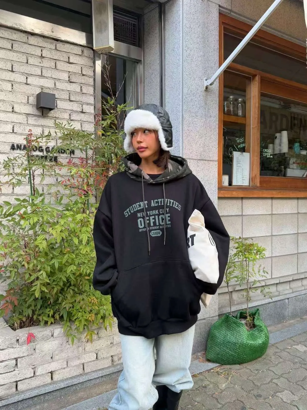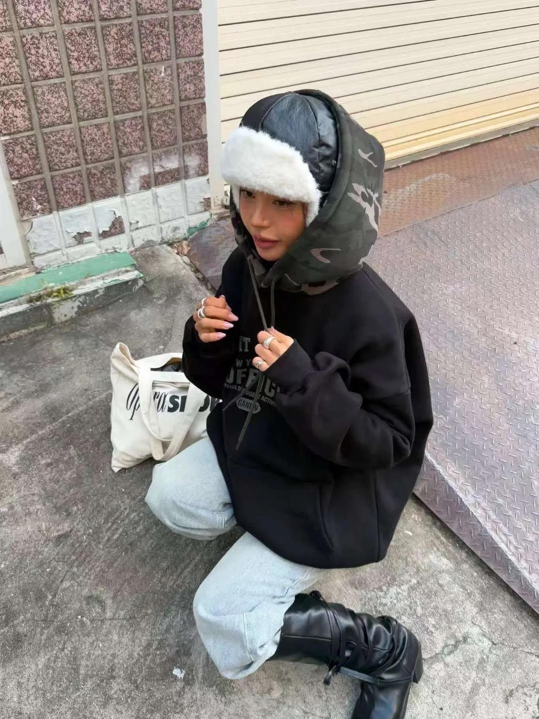 喜歡帥氣感多一點的 這款完全是你的菜! 第一眼就被迷彩帽吸引🤩迷彩拼接+舒服刷毛保暖+大口袋機能一件搞定出門穿搭!寬鬆長版設計完全沒有穿搭障礙無腦穿就好時髦又舒服! 字母撞色的細節設計也太吸睛!質感立體的絨絨感比單純印花的質感更有特色~這件紫色真的太漂亮 大推薦! 柔軟親膚棉質 穿起來很挺!有厚度 單穿也可以保暖! 直接配內搭褲或緊身褲就能出門 修身又不用擔心顯胖,輕鬆穿出隨性休閒風~ 直接當長版上衣配靴子/球鞋也是一種超有型的穿法! 尺寸: 肩68、胸74、長74cm