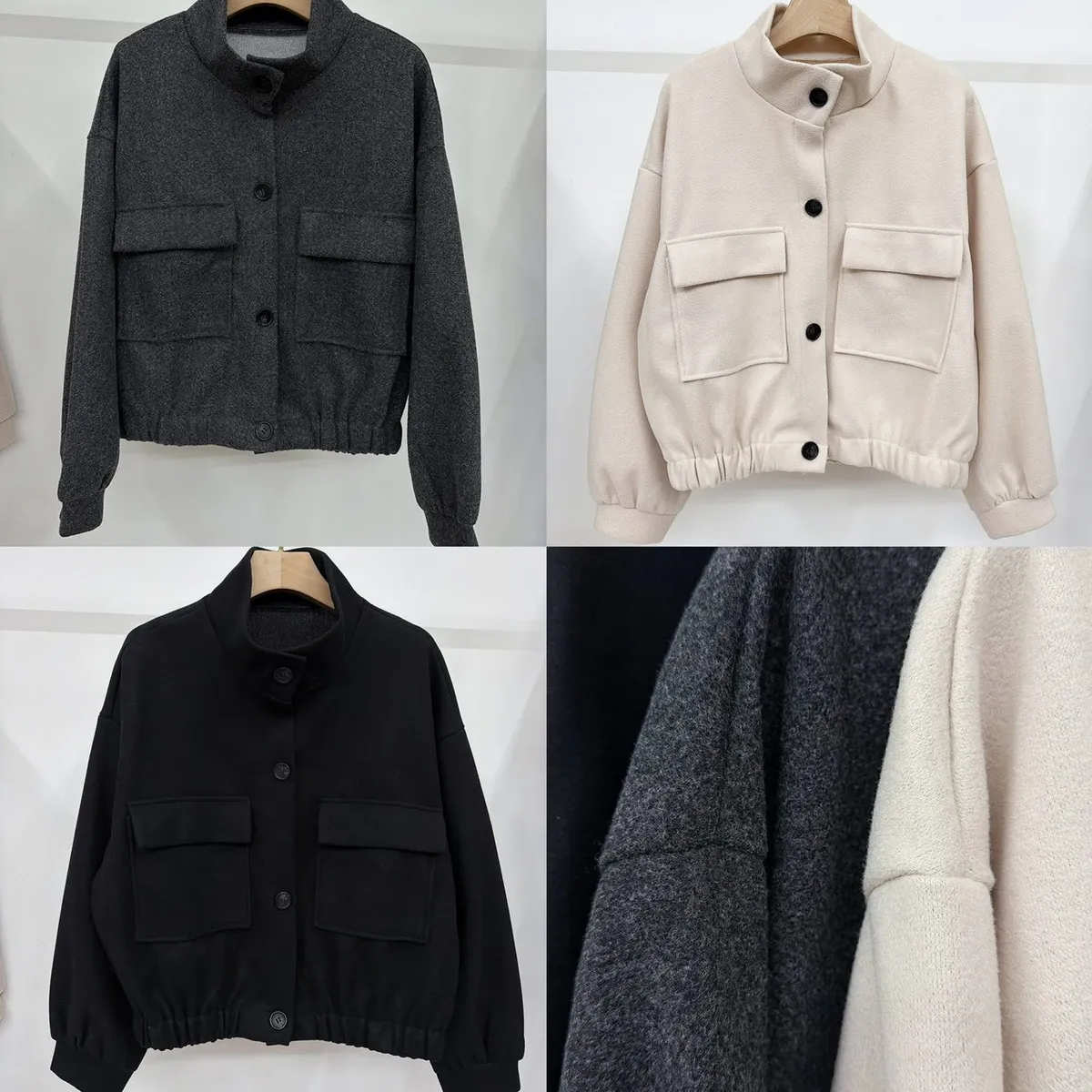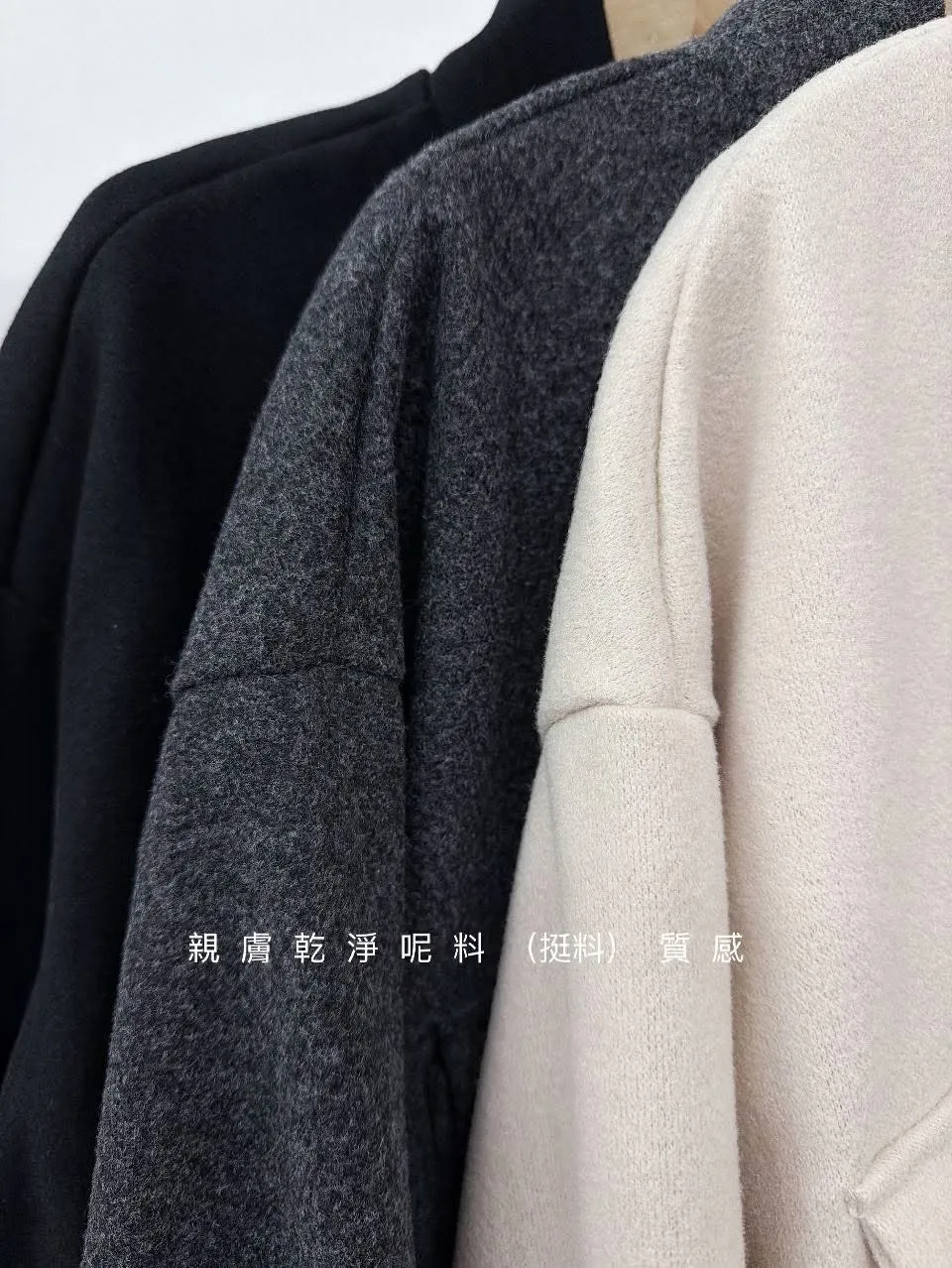 可以單穿當上衣 ’ 也可以當外套 親膚細緻呢料柔軟不刺癢 細緻呢料 手感柔軟滑順 #穿也不刺不癢 布面紮實卻不厚重 保暖度剛剛好 、穿起來有型、不顯臃腫 簡約的低調設計感 超輕感材質保暖卻不厚重穿上活動自如超舒適 版型不挑人!不管你是高挑、嬌小還是微肉感都能完美修飾身形 肩寬55 ‘ 胸圍56 ’ 長度55公分
