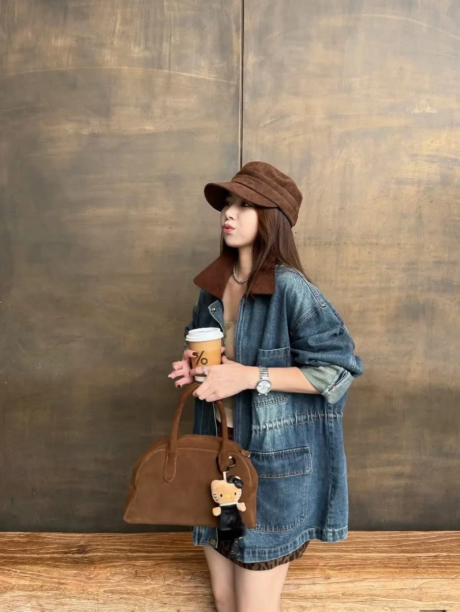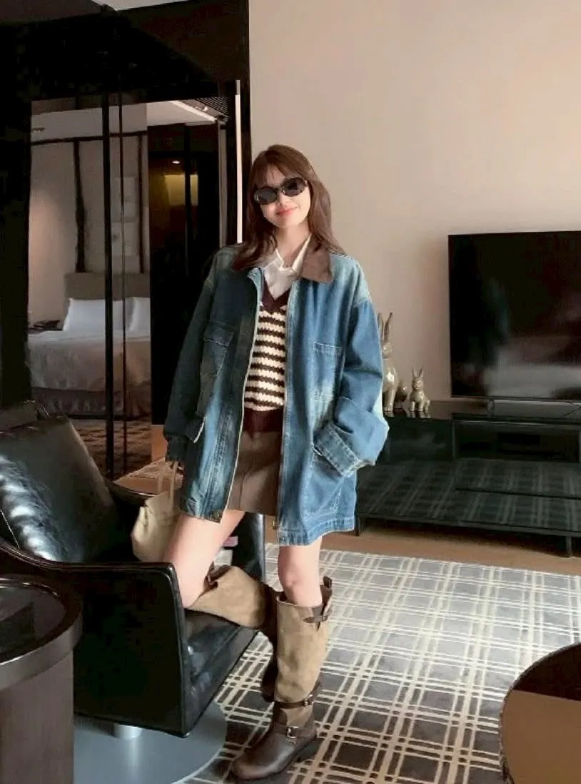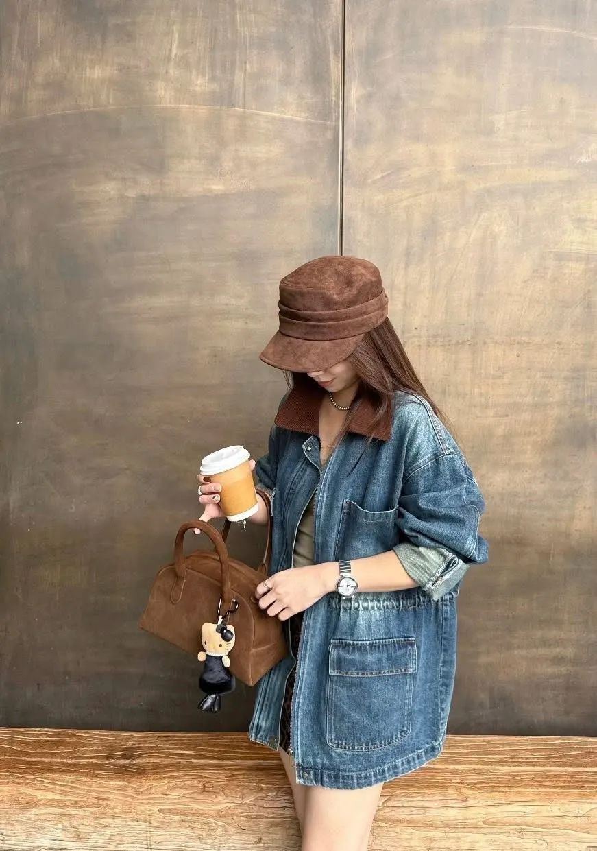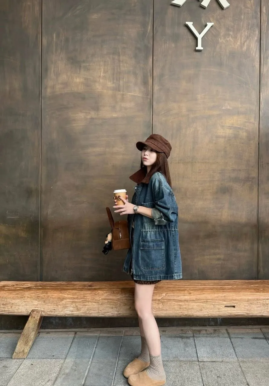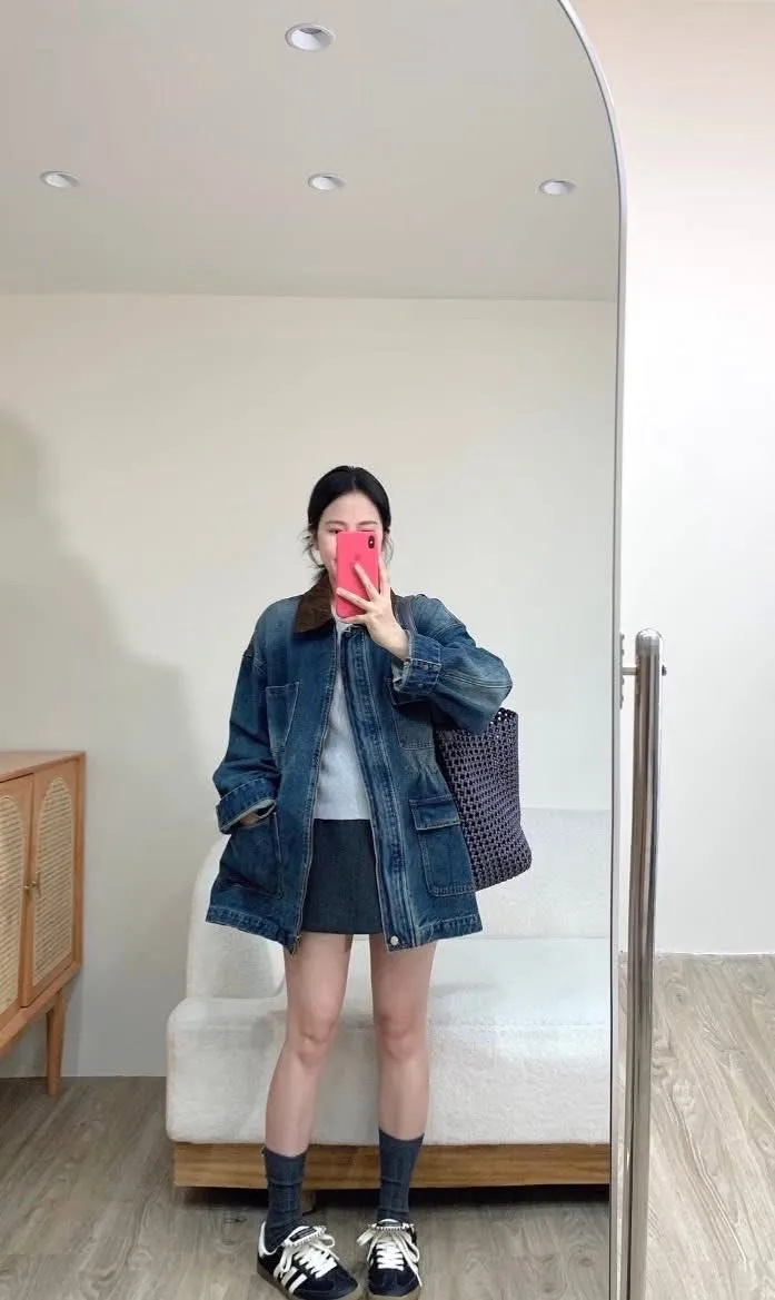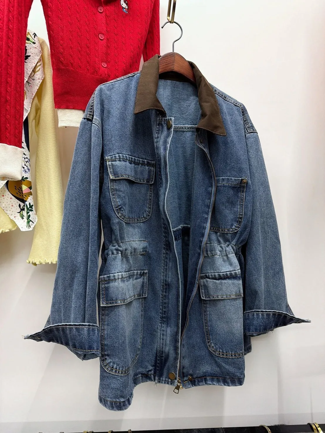 用料扎實的高磅數丹寧面料 搭配反差配色領 #穿上就有歐美時髦感 寬鬆立體的版型不挑身形 拉鍊+下擺扣釦的設計讓外套更挺、更有型 腰部做了可調節抽繩 不用刻意束腰也能自然拉出比例 四個立體口袋增添工裝細節 也非常實用,日常外出一件就能搞定 顏色是耐看的復古藍丹寧 搭白 Tee、針織、洋裝都能秒變韓系休閒 肩寬52 ‘ 胸圍69 ‘ 全長72公分