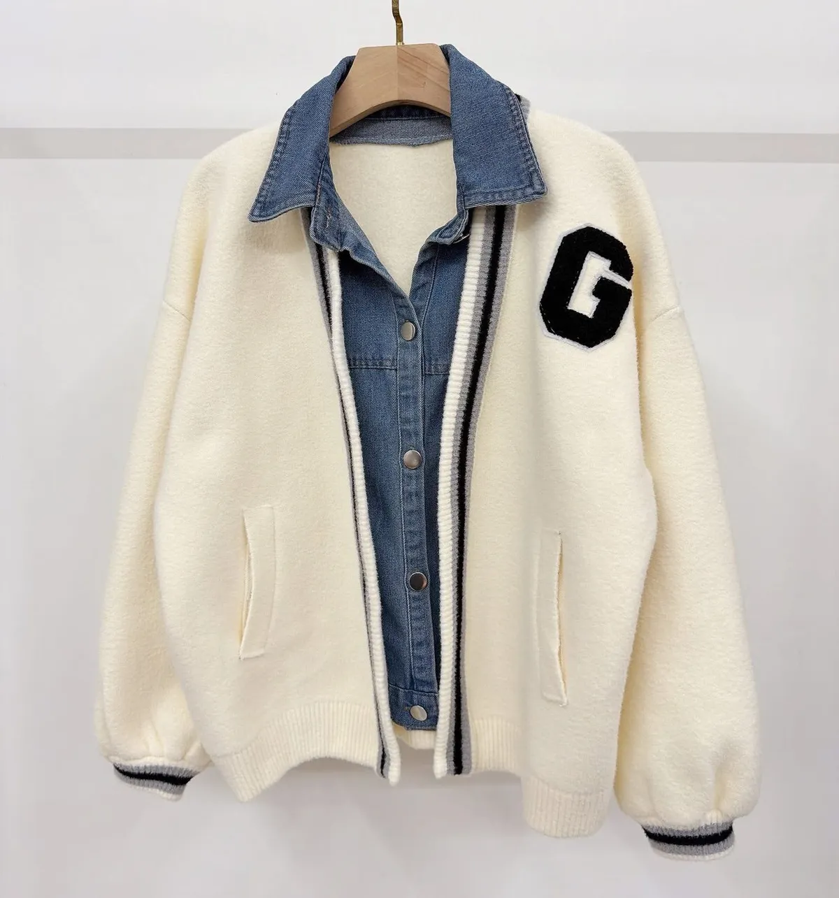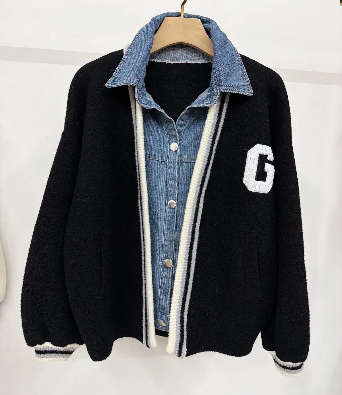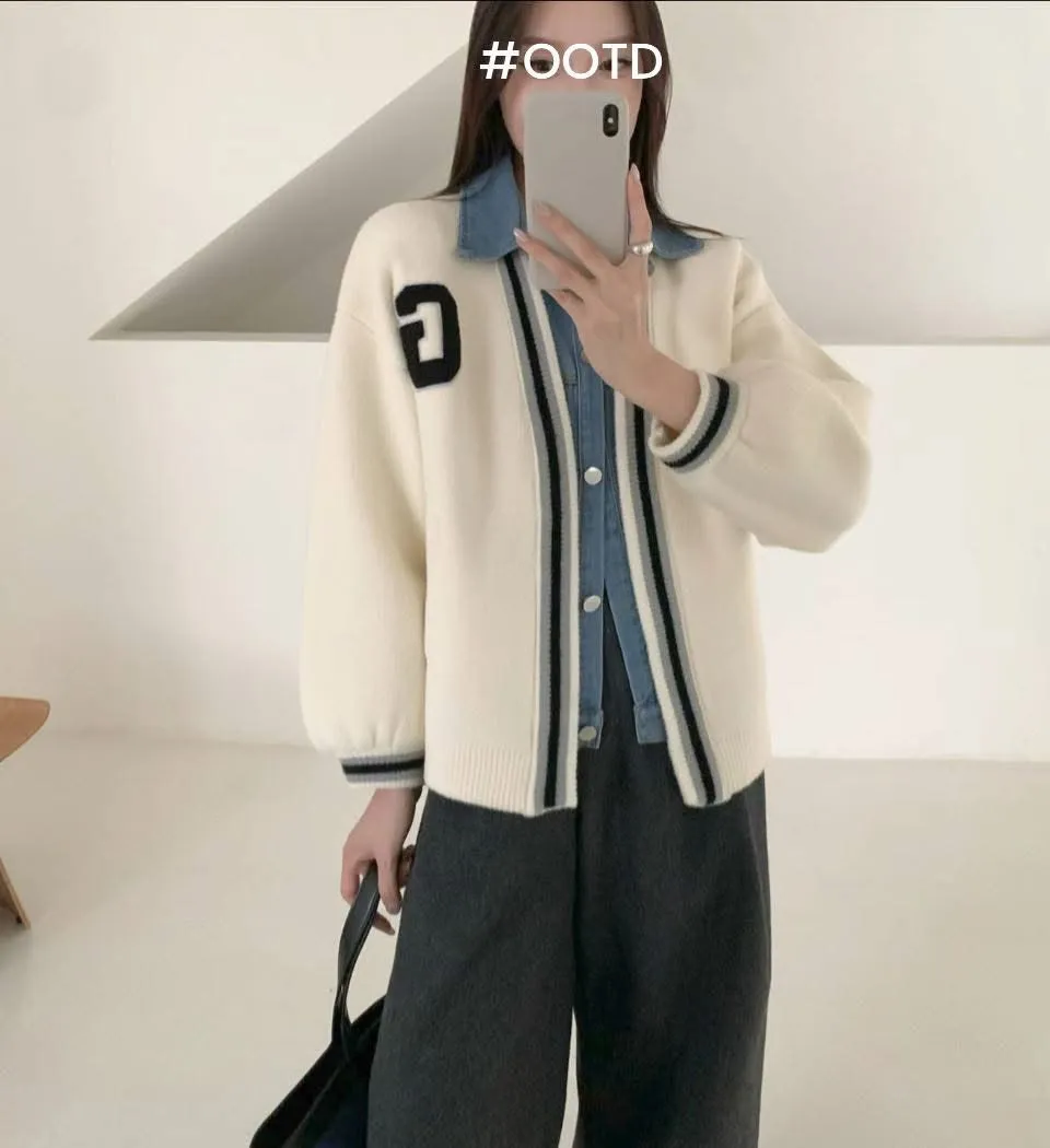 超 大 推 の 版 型 ‘ 超 美 的 質 感 捏 厚實暖度感的羊絨針織 #穿上就能感受到份量感與軟糯觸感 ( #外層是高磅羊絨針織 ) 內搭以丹寧假兩件設計點綴 #讓整體更顯層次 • 厚磅羊絨針織: 保暖度佳 #布面柔糯細緻不刺養 很親膚 • 假兩件(牛仔)丹寧領口: 瞬間完成層次穿搭 #超級百搭實穿 • G 字毛呢貼布章: 增添學院感&簡約時髦 肩寬61 ‘ 胸圍60 ’ 全長60公分