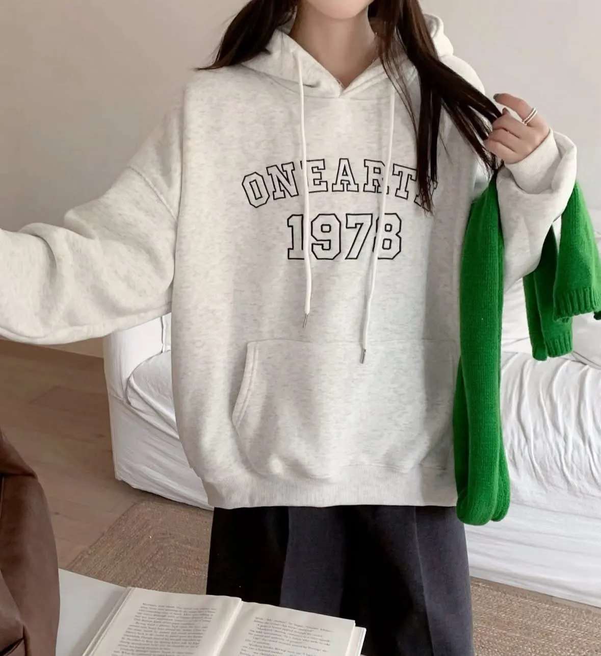 溫暖寶寶絨毛就是要穿起來超舒服字母撞色的細節設計也太吸睛!質感立體的電繡設計比單純印花的質感更有特色~ 長度超貼心!蓋屁股的版型 oversize版型寬鬆很舒服 直接配內搭褲或緊身褲就能出門 修身又不用擔心顯胖,輕鬆穿出隨性休閒風~ 直接當長版上衣配靴子/球鞋也是一種超有型的穿法! 尺寸: 肩寬72 ‘ 胸圍70 ’ 全長66公分