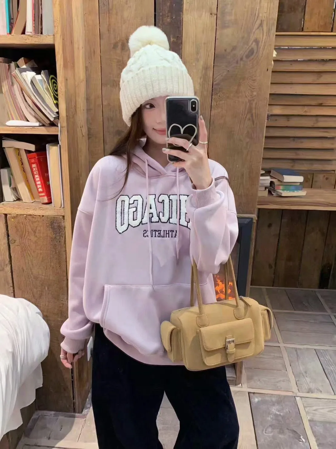 每一個顏色都好溫柔完全超級可愛又耐看!不是那種刻意賣萌的寬鬆長版設計,完全是各種身形的救星!完全沒有穿搭障礙無腦穿就好時髦又舒服!😍 內溫暖寶寶絨 不用疊穿太多件就很暖 字母撞色的細節設計也太吸睛!質感立體的絨絨感比單純印花的質感更有特色~ 柔軟親膚棉質 穿起來很挺!有厚度 單穿也可以保暖! 直接配內搭褲或緊身褲就能出門 修身又不用擔心顯胖,輕鬆穿出隨性休閒風~ 直接當長版上衣配靴子/球鞋也是一種超有型的穿法! 尺寸: 肩寬71 ‘ 胸圍68 ’ 全長62 公分